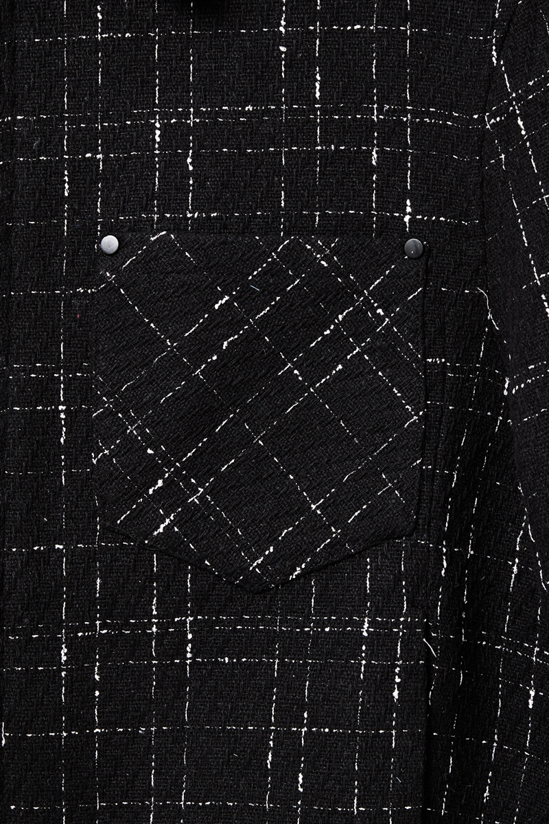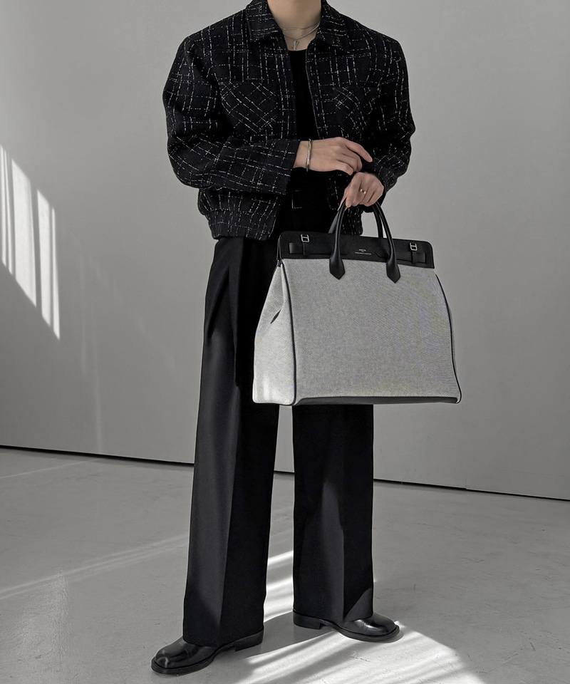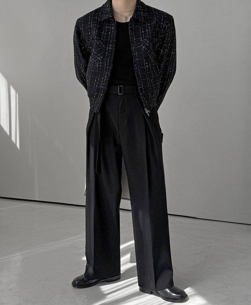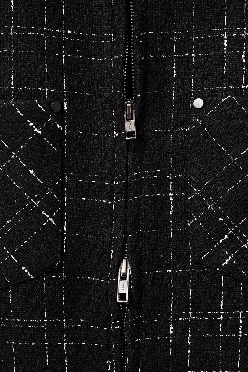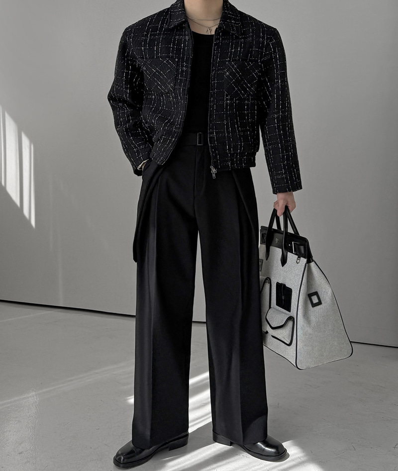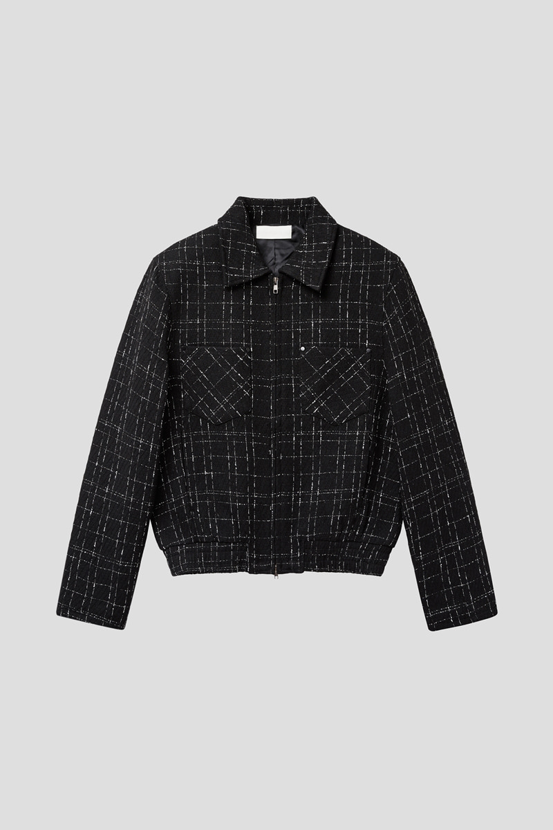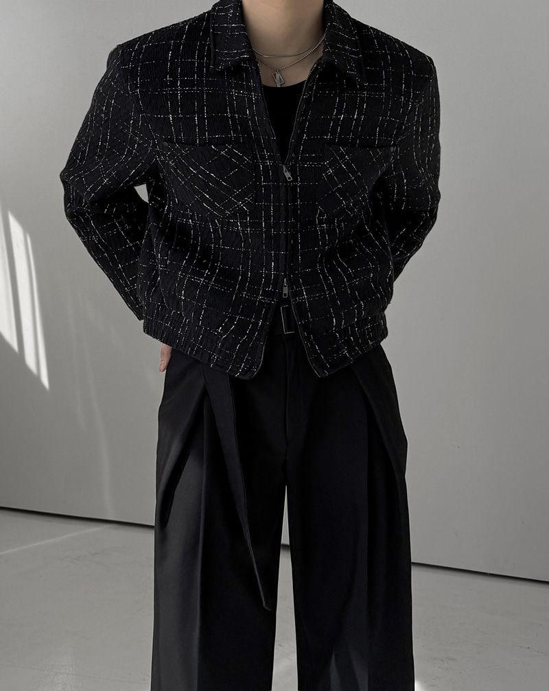 奢華格紋織線粗呢雙口袋短版夾克外套 黑色 1229