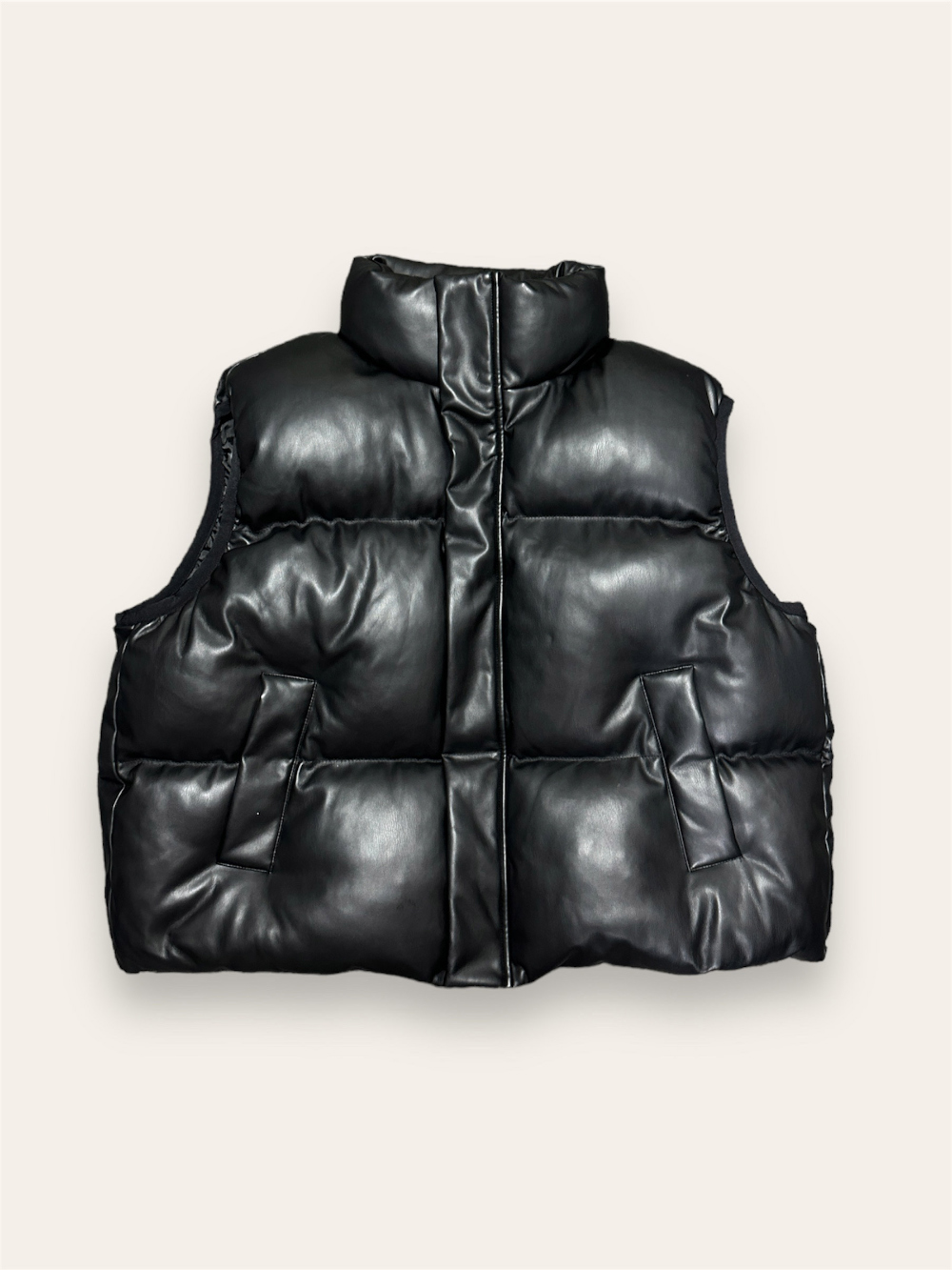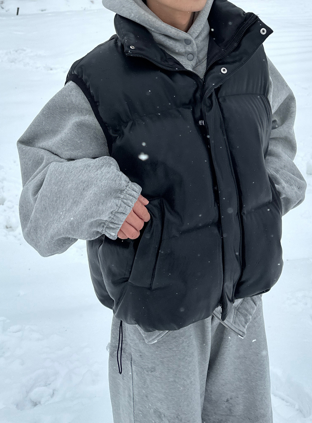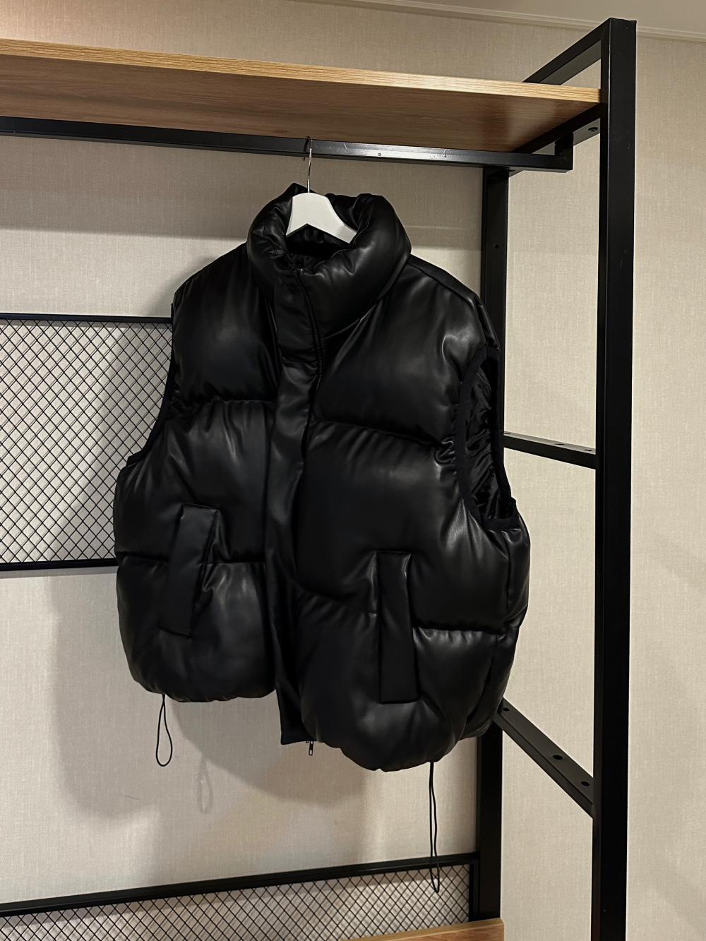 霧面皮革高領按扣拉鍊襯墊背心 2色 1222
