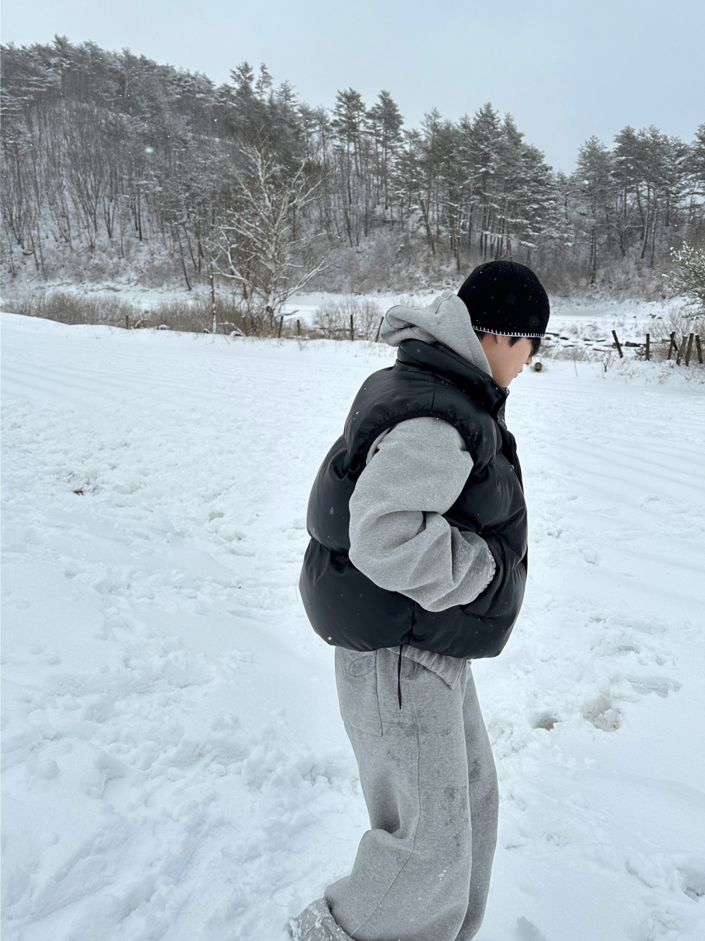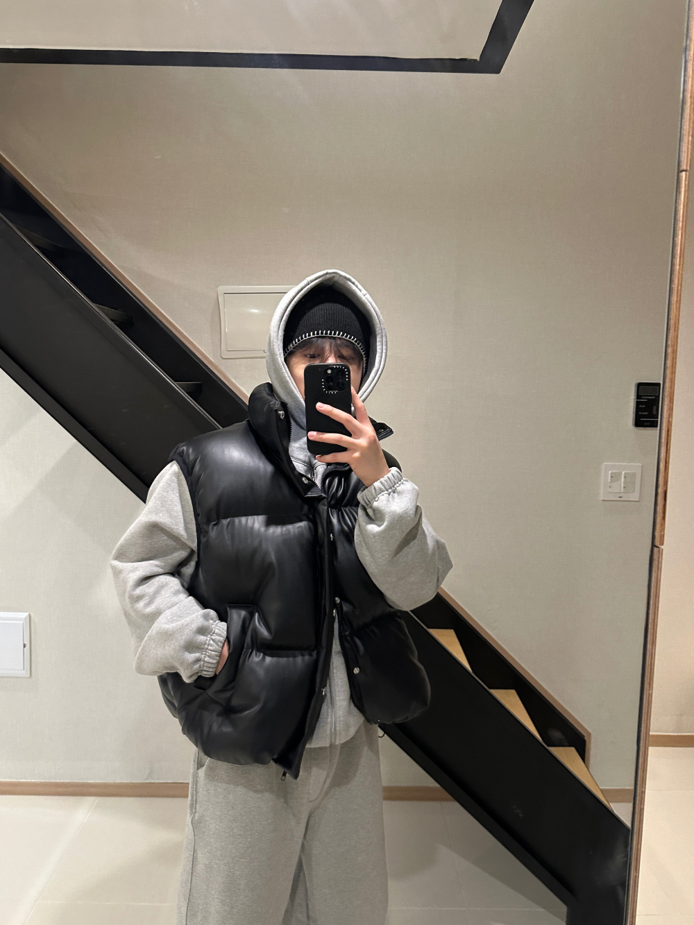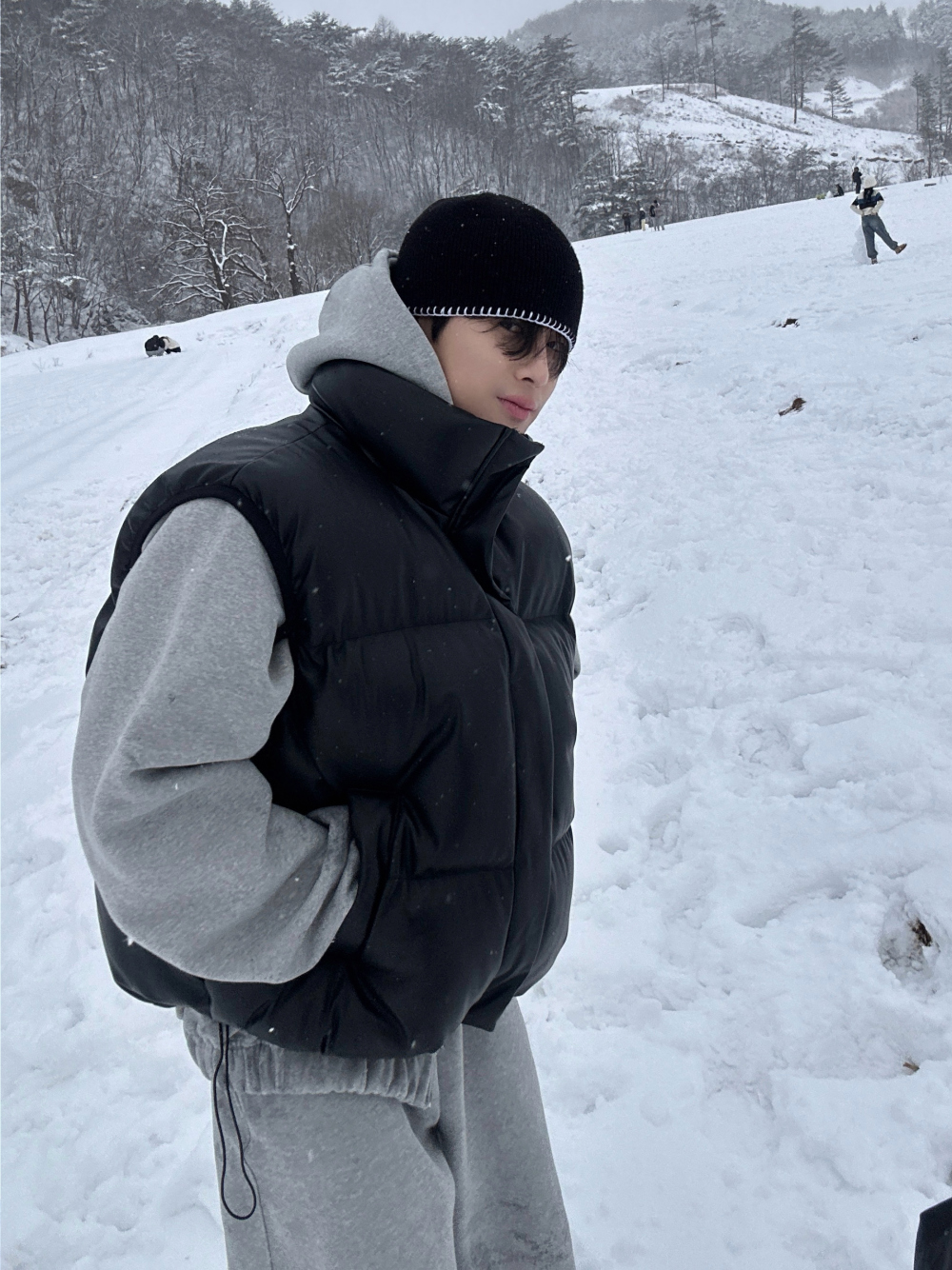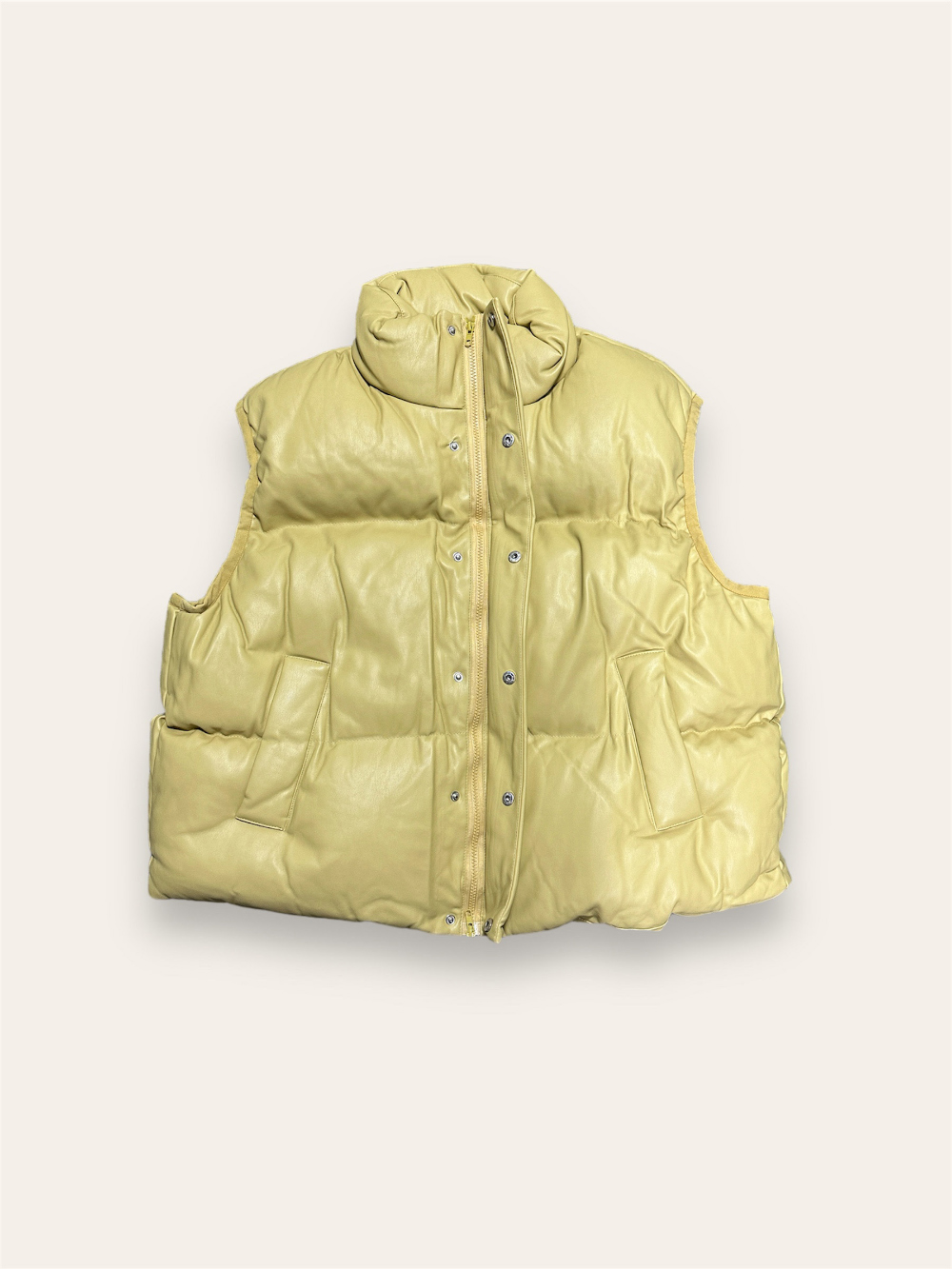 霧面皮革高領按扣拉鍊襯墊背心 2色 1222