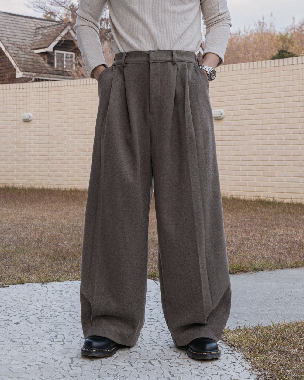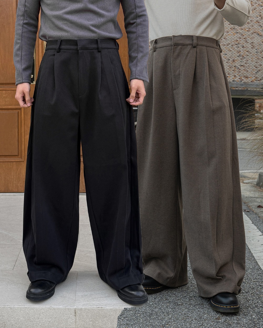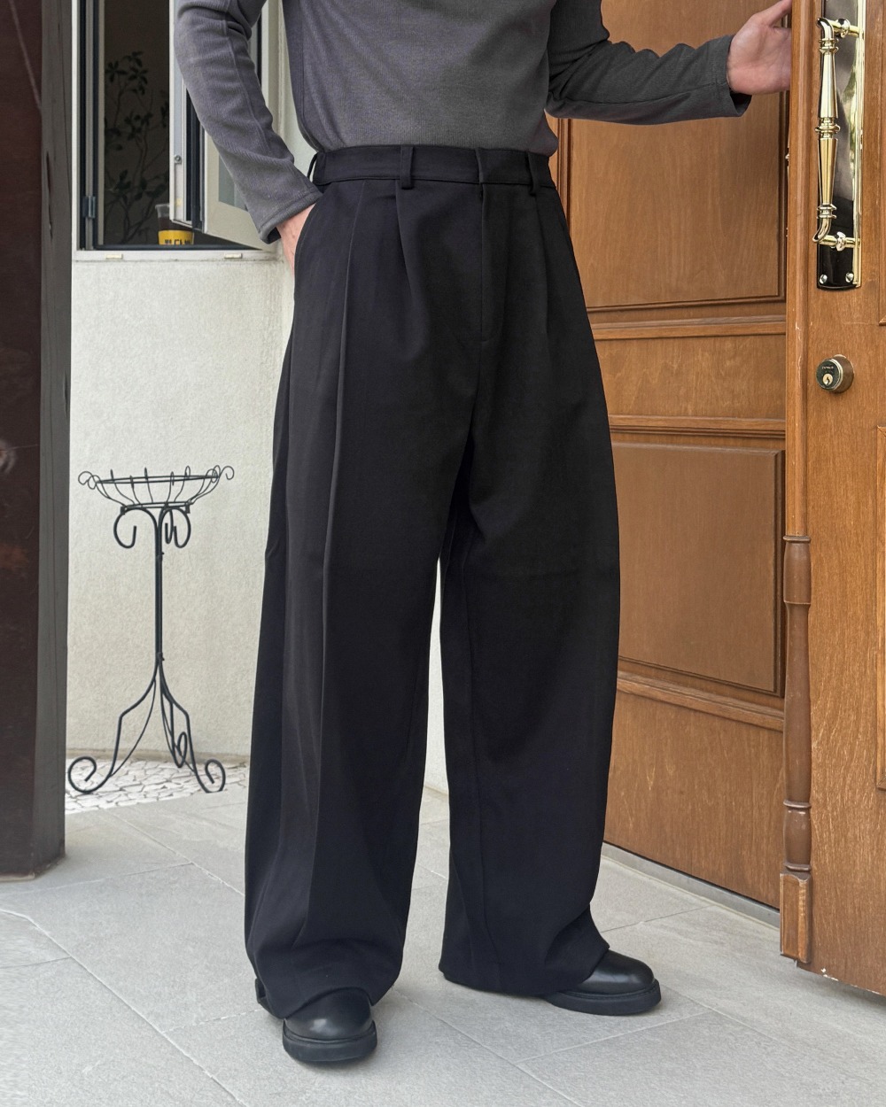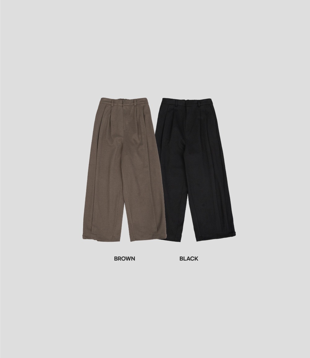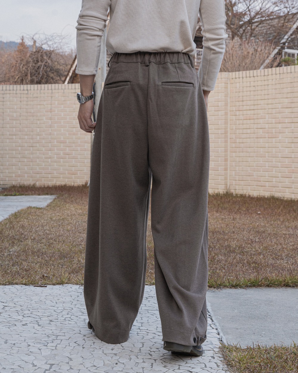 日常奢華羊毛雙摺線後鬆緊休閒寬褲 2色 1215