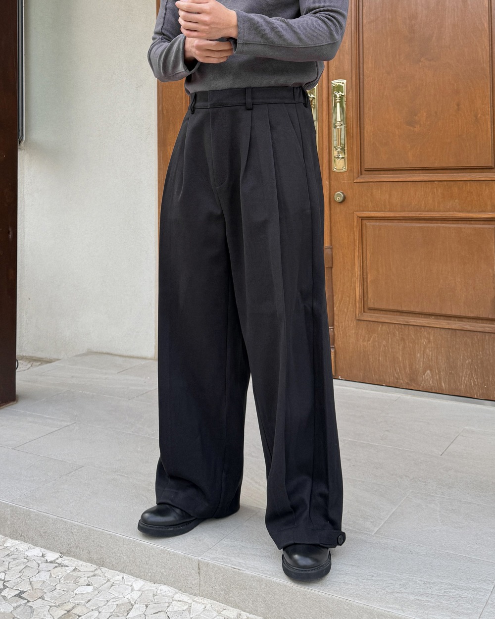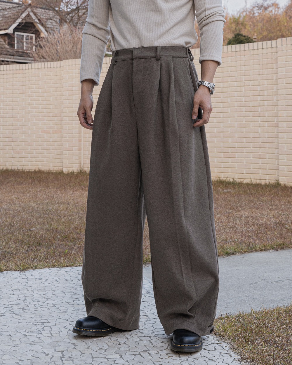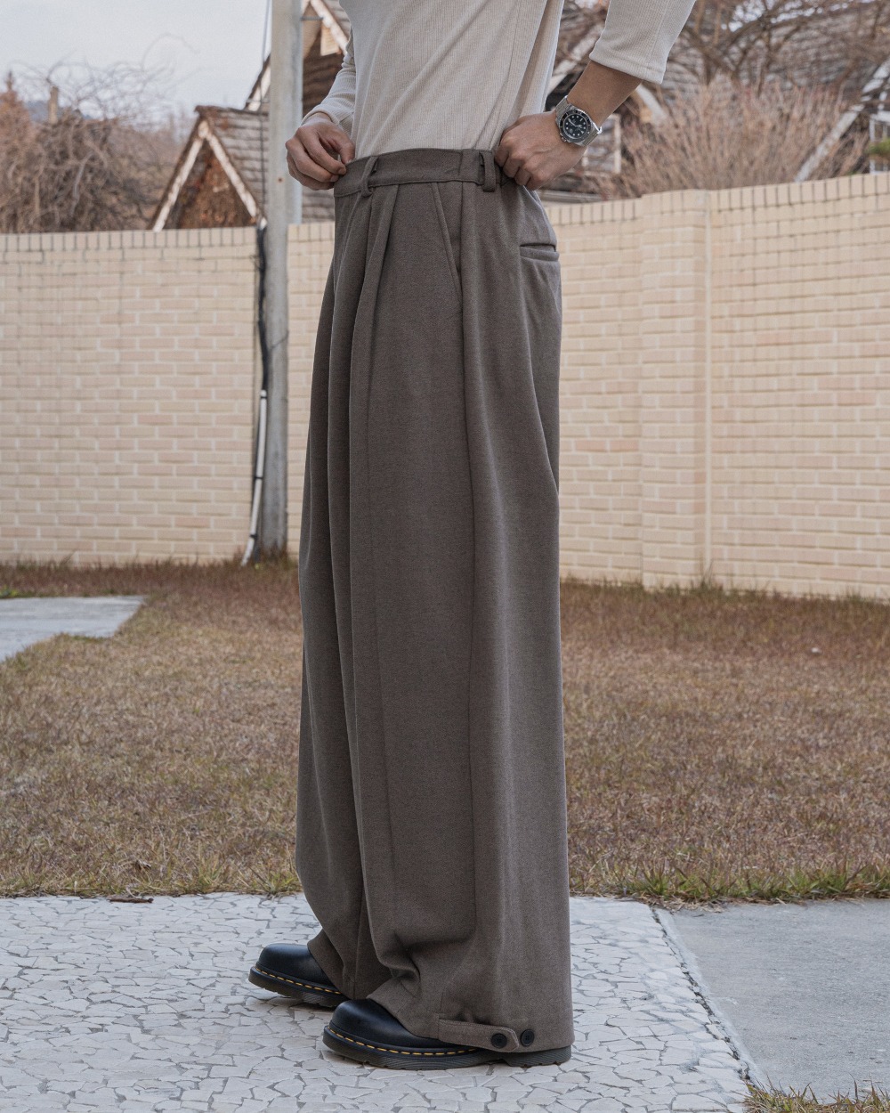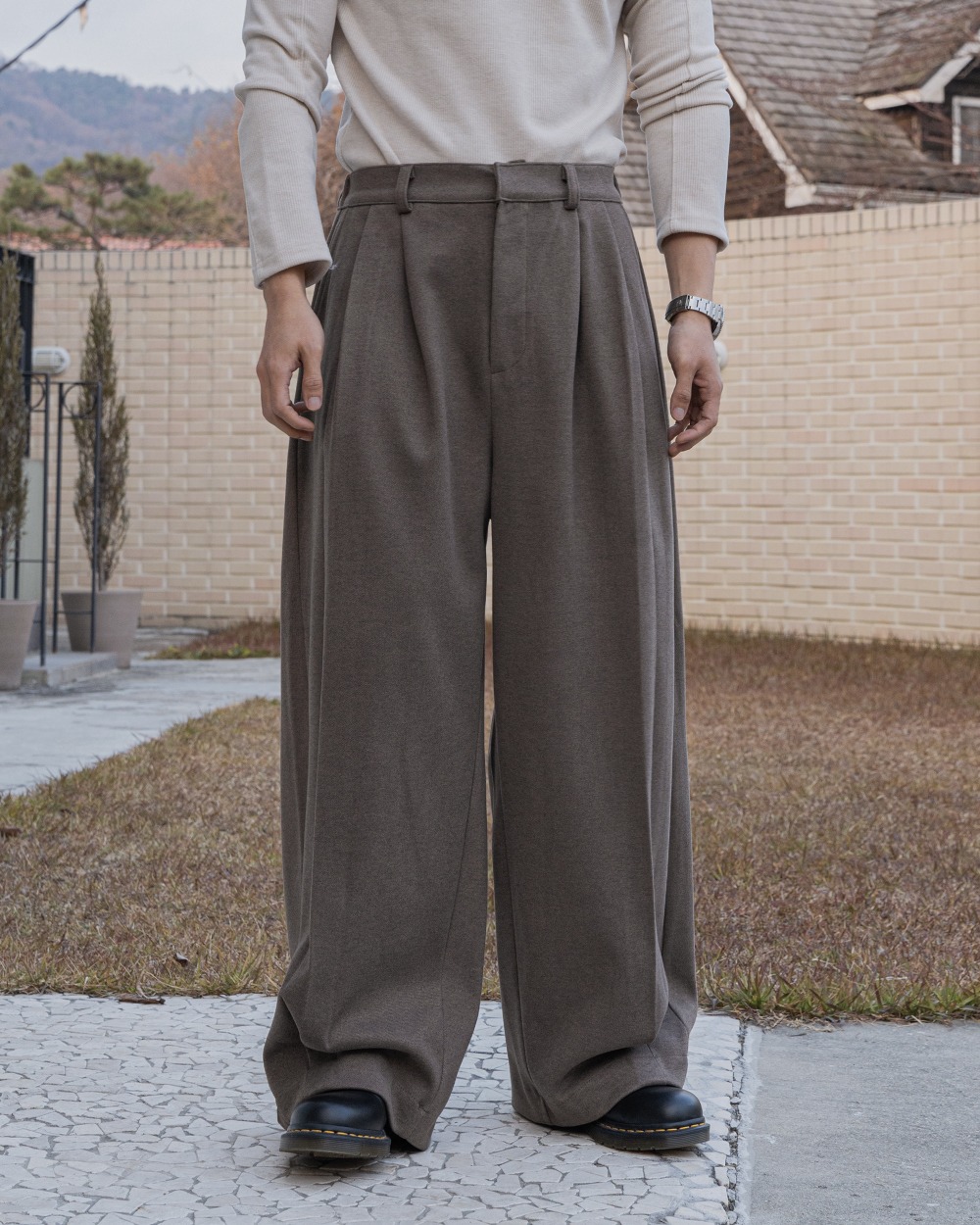 日常奢華羊毛雙摺線後鬆緊休閒寬褲 2色 1215