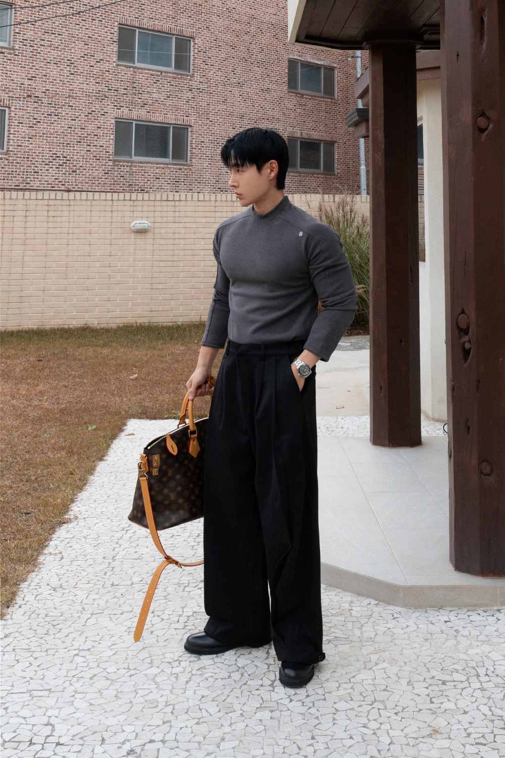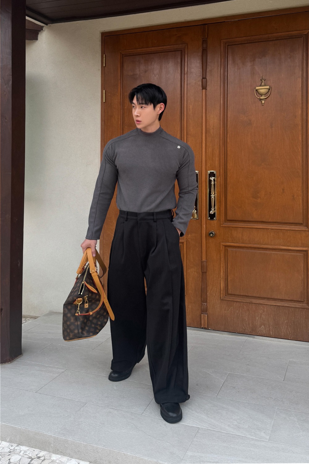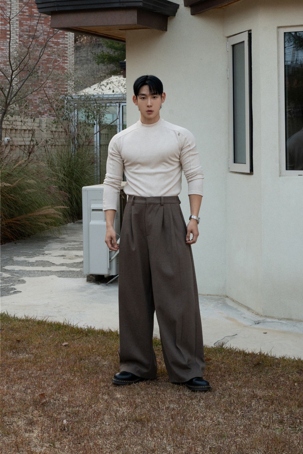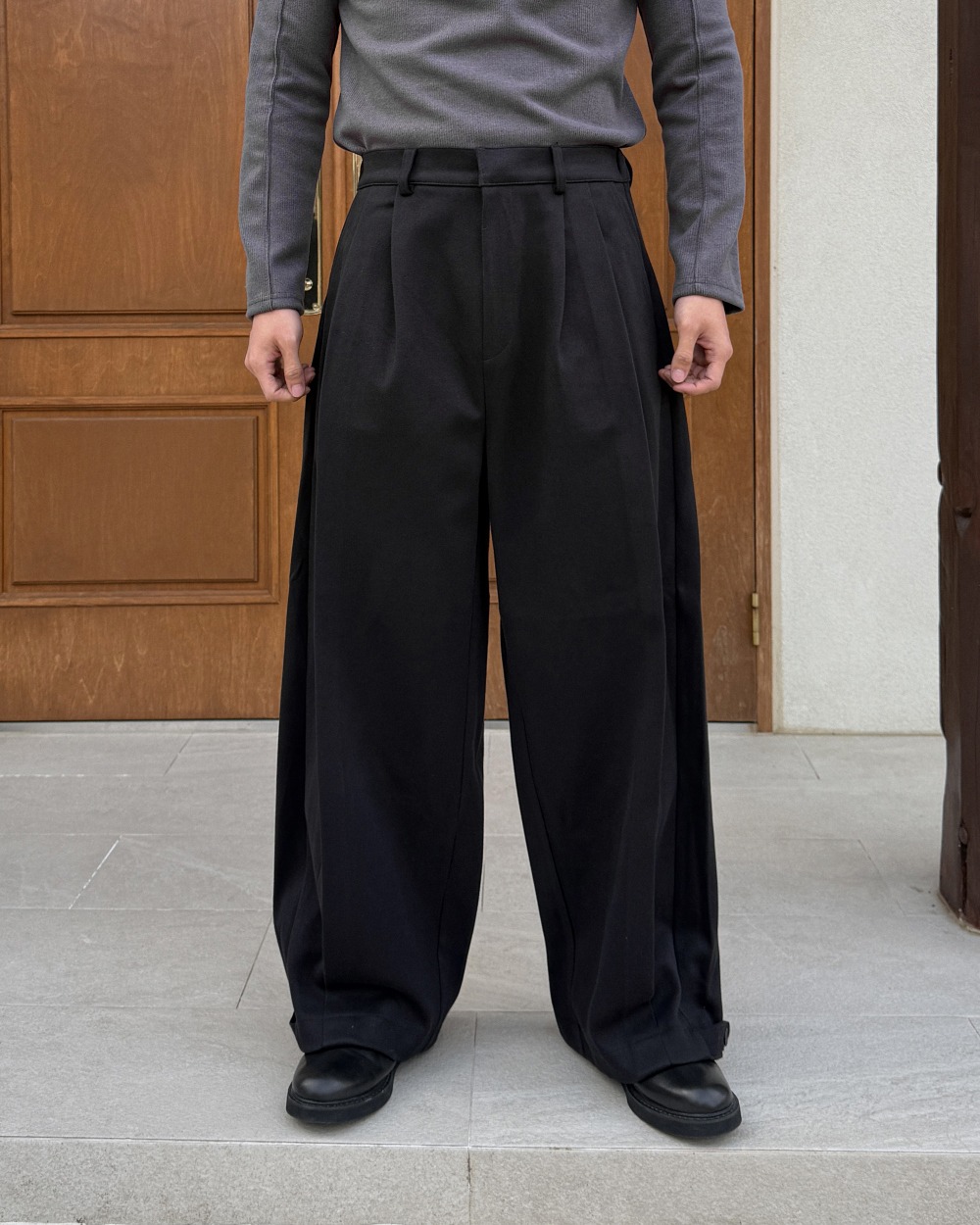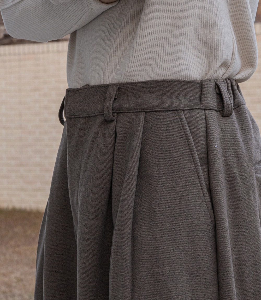 日常奢華羊毛雙摺線後鬆緊休閒寬褲 2色 1215
