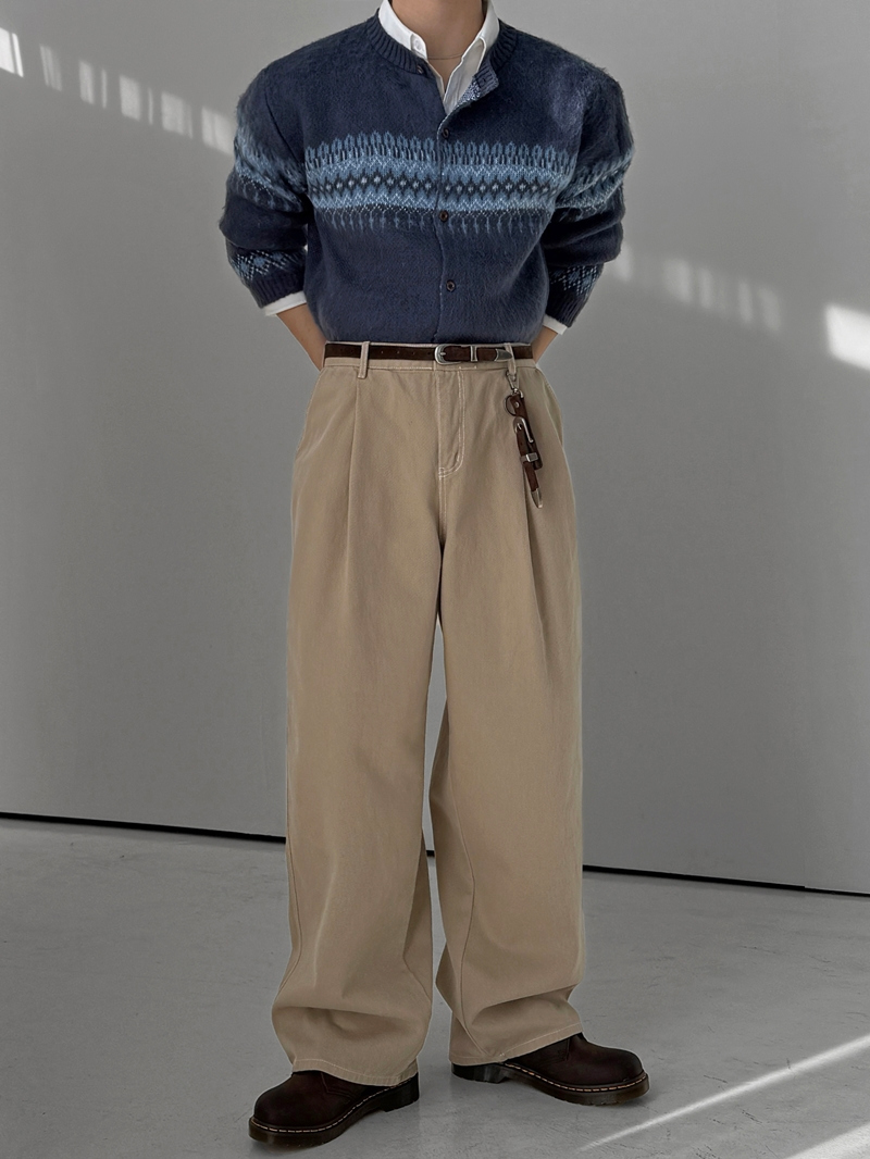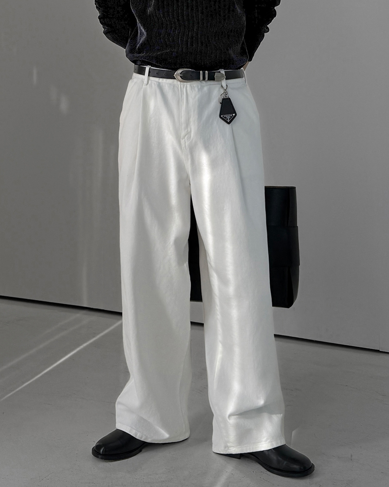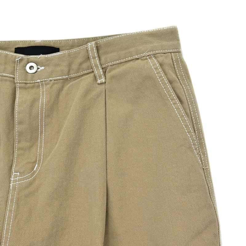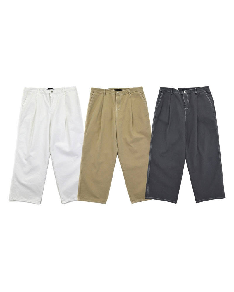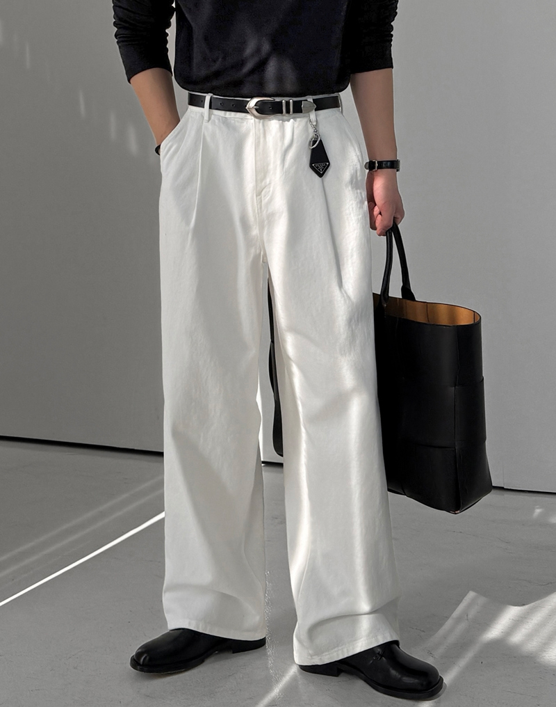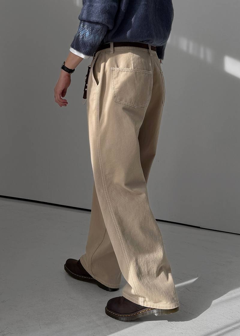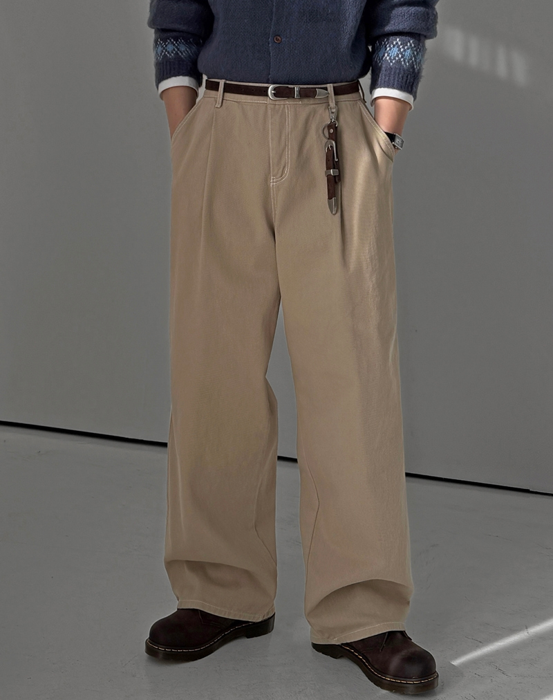 日常水洗純棉單摺半寬直筒休閒褲 3色 1222