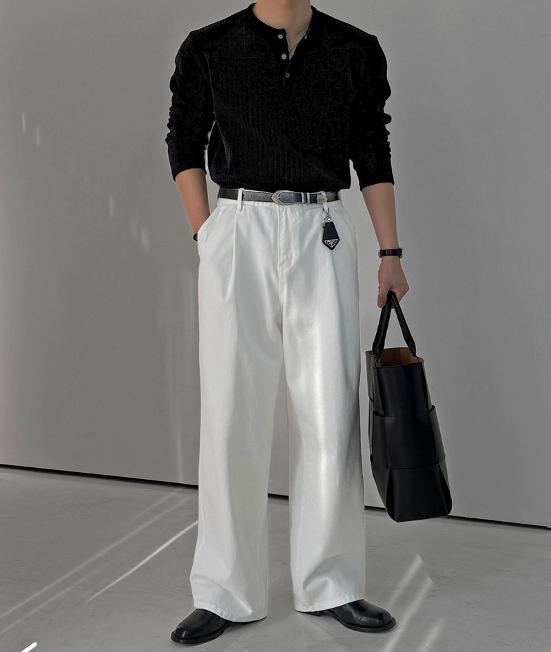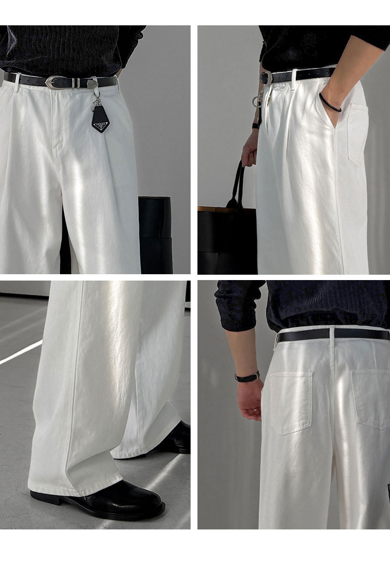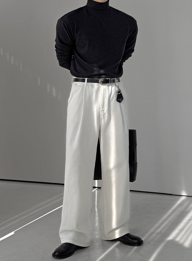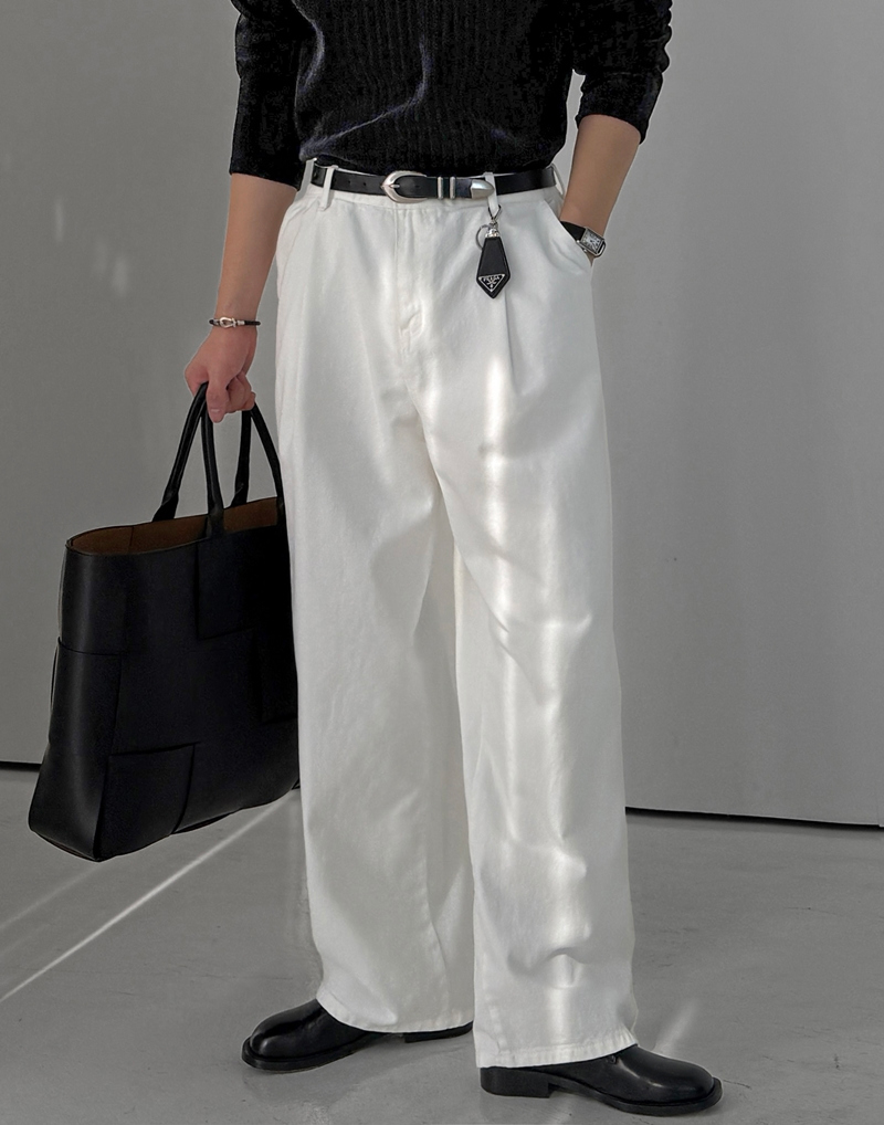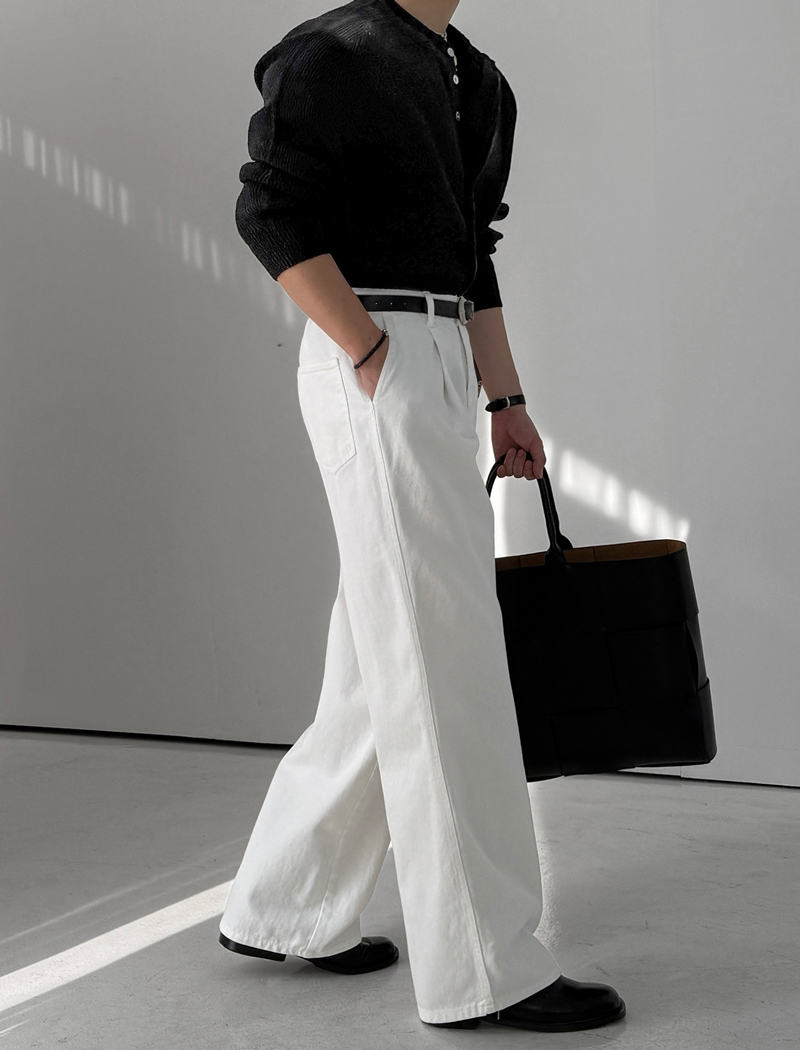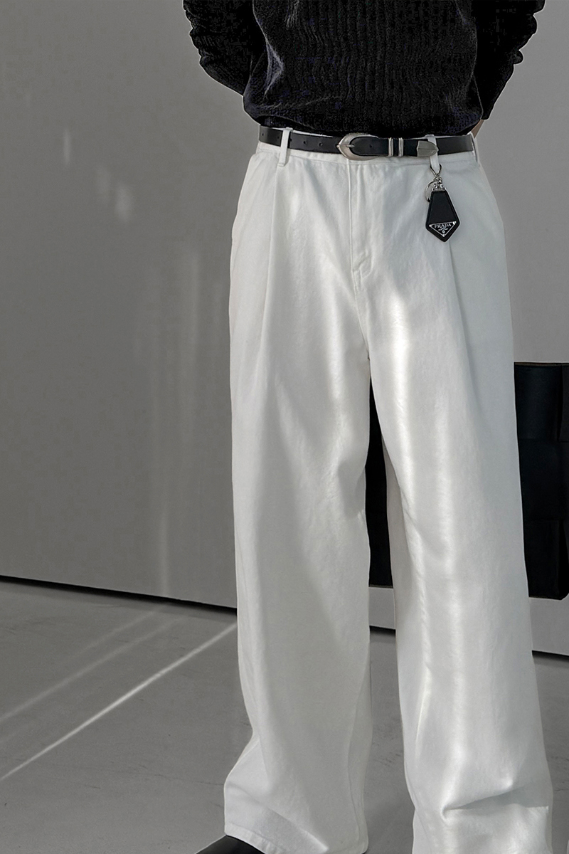 日常水洗純棉單摺半寬直筒休閒褲 3色 1222