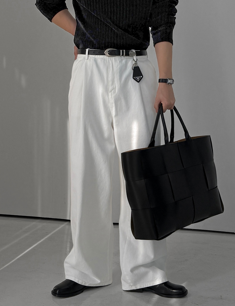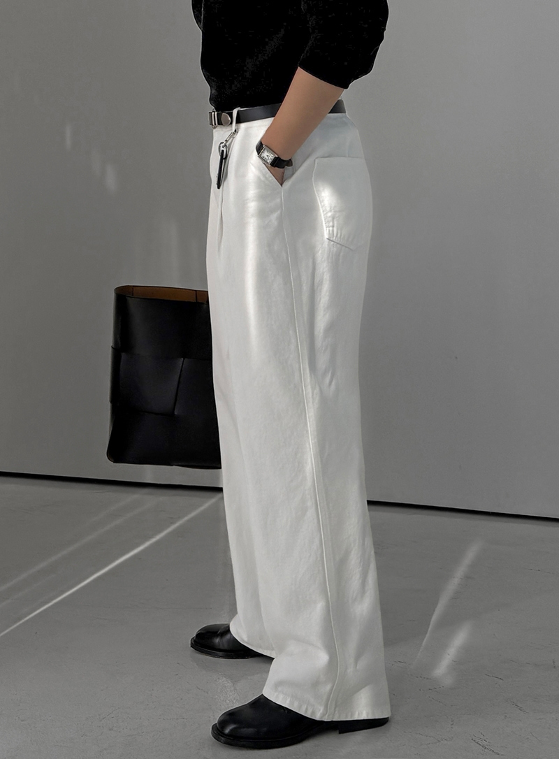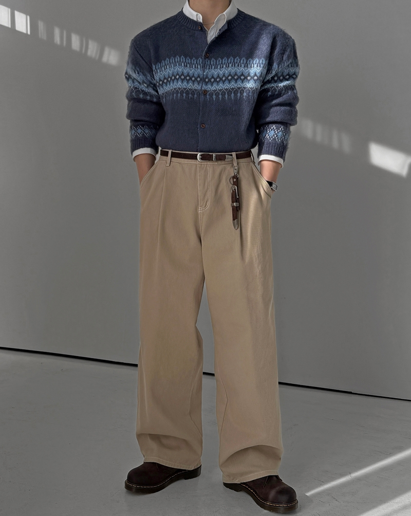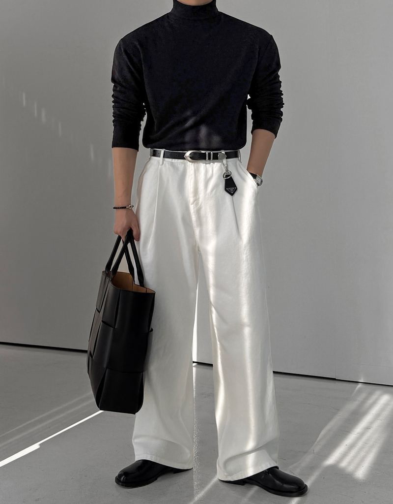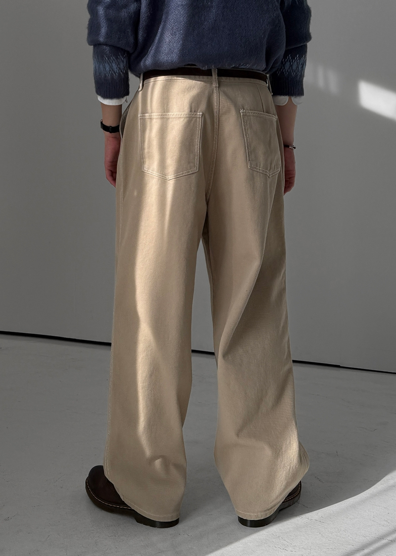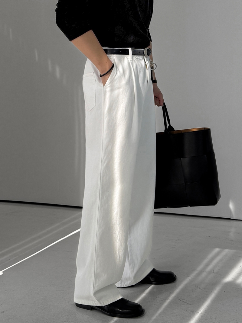 日常水洗純棉單摺半寬直筒休閒褲 3色 1222