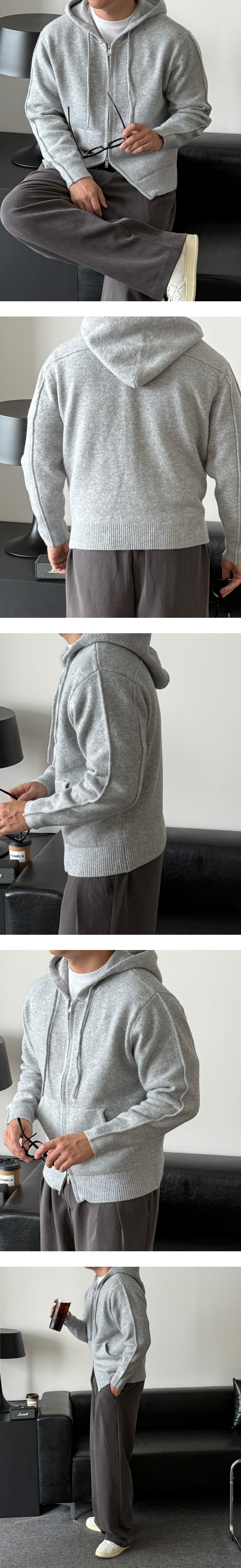 舒適針織袖側滾邊連帽拉鍊外套 5色 1124