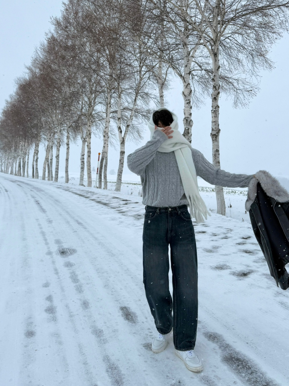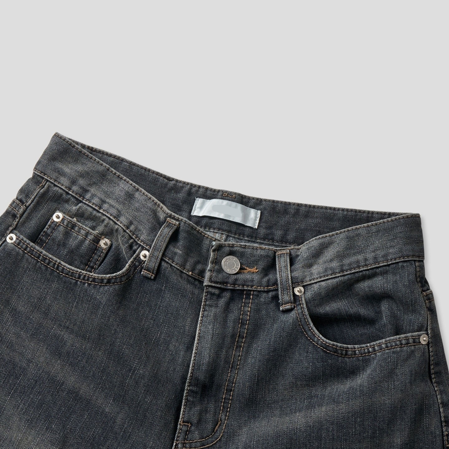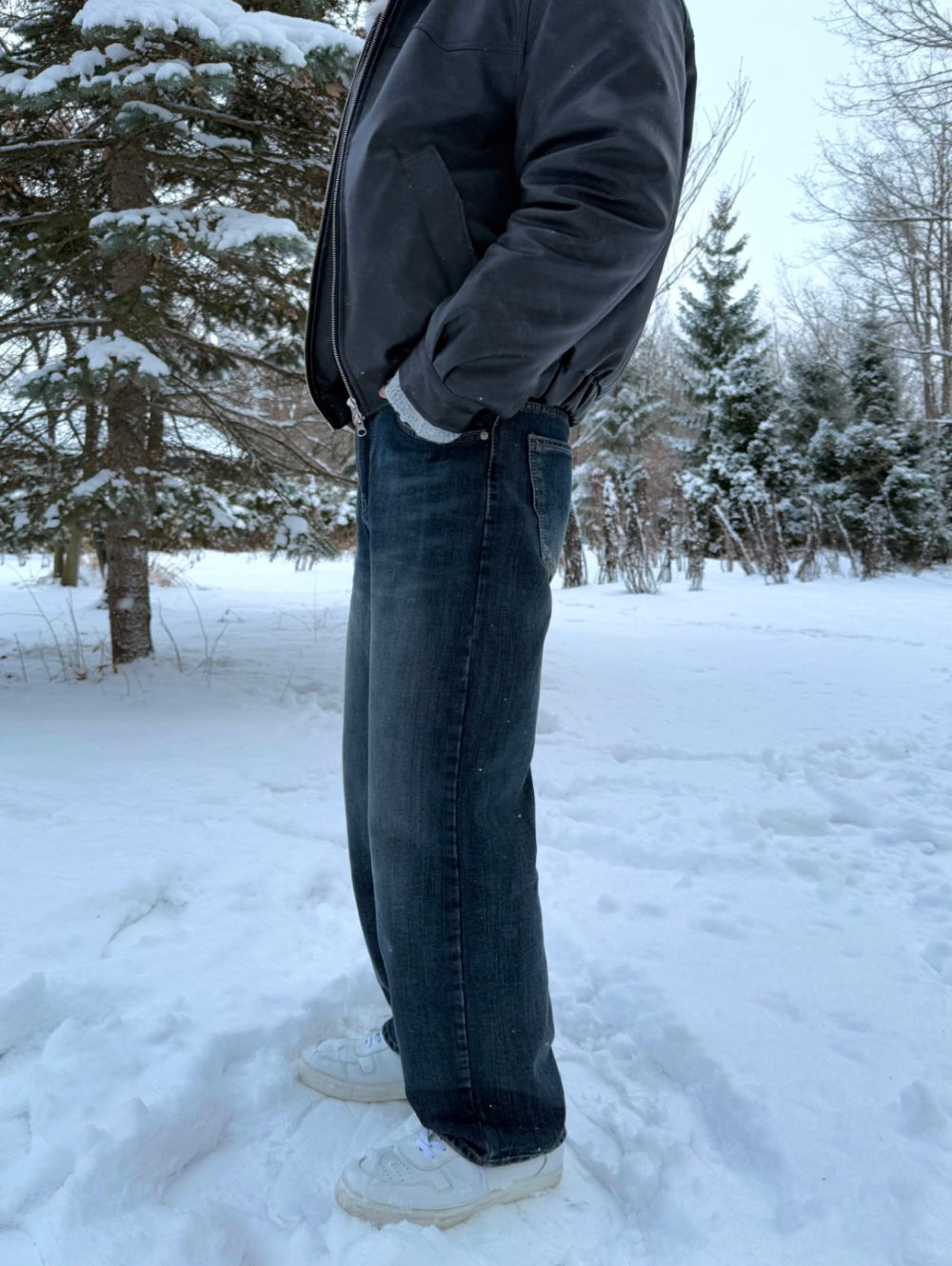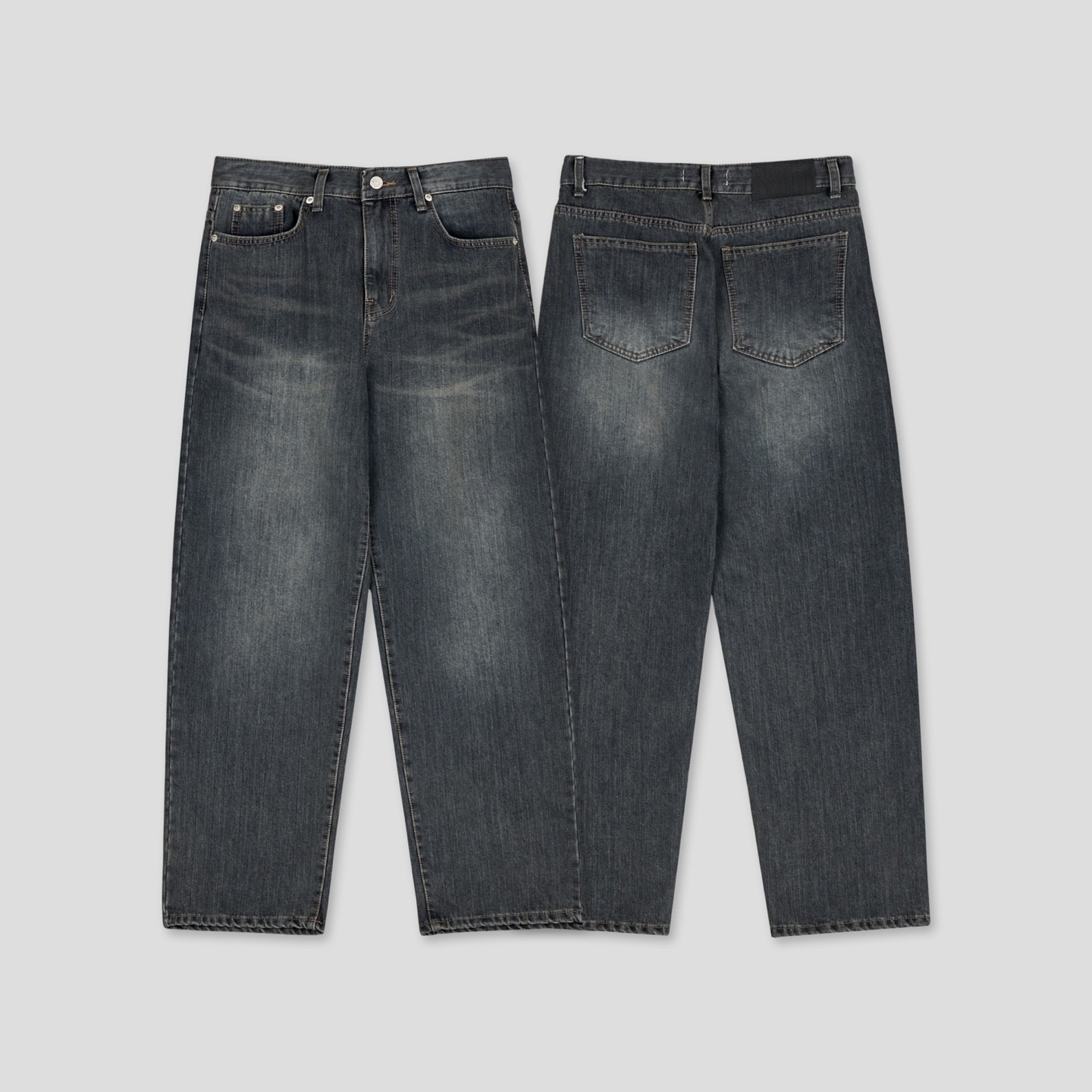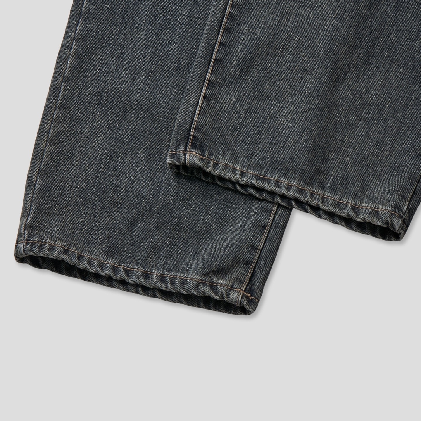 奢華經典刷色內抓絨半寬直筒牛仔長褲 深藍 1110