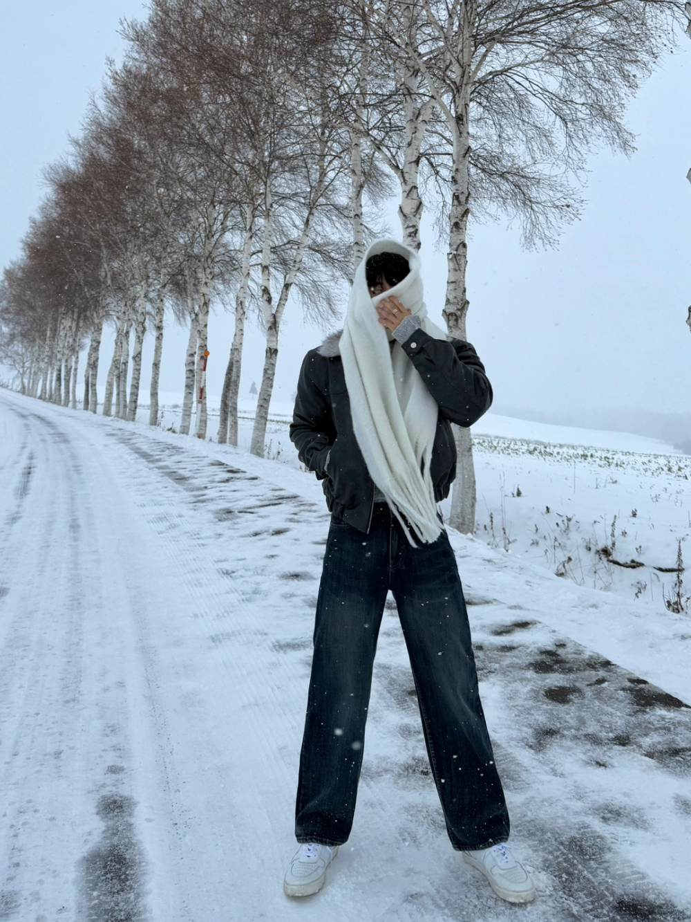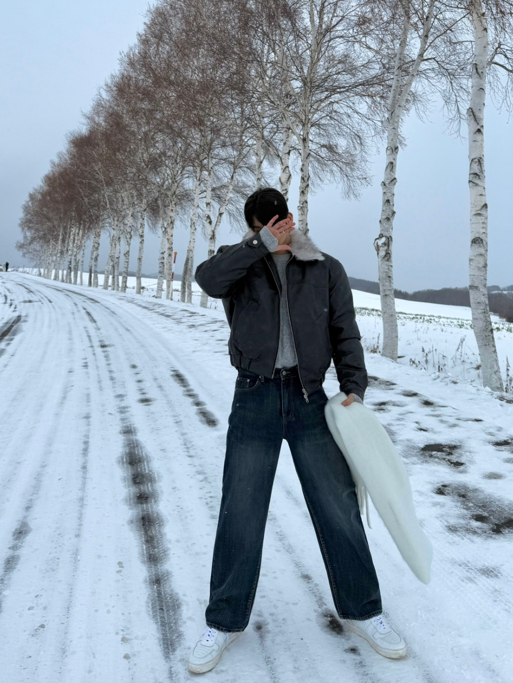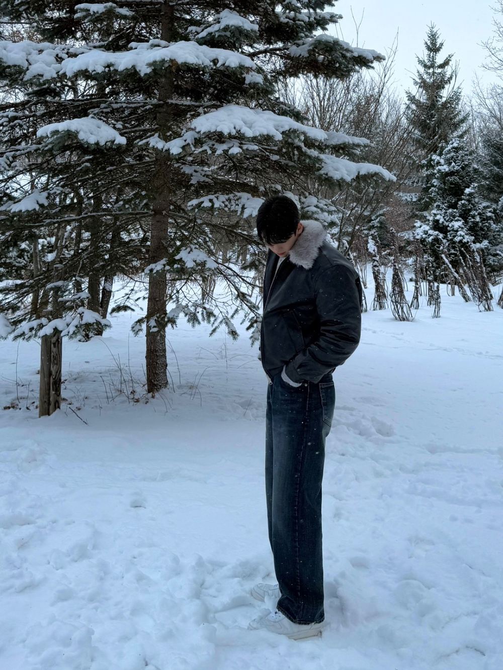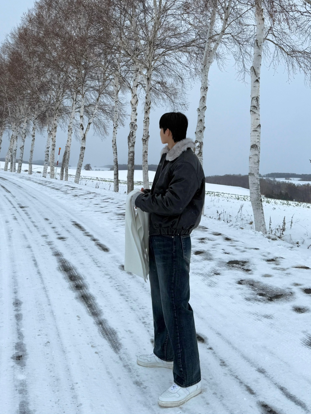 奢華經典刷色內抓絨半寬直筒牛仔長褲 深藍 1110