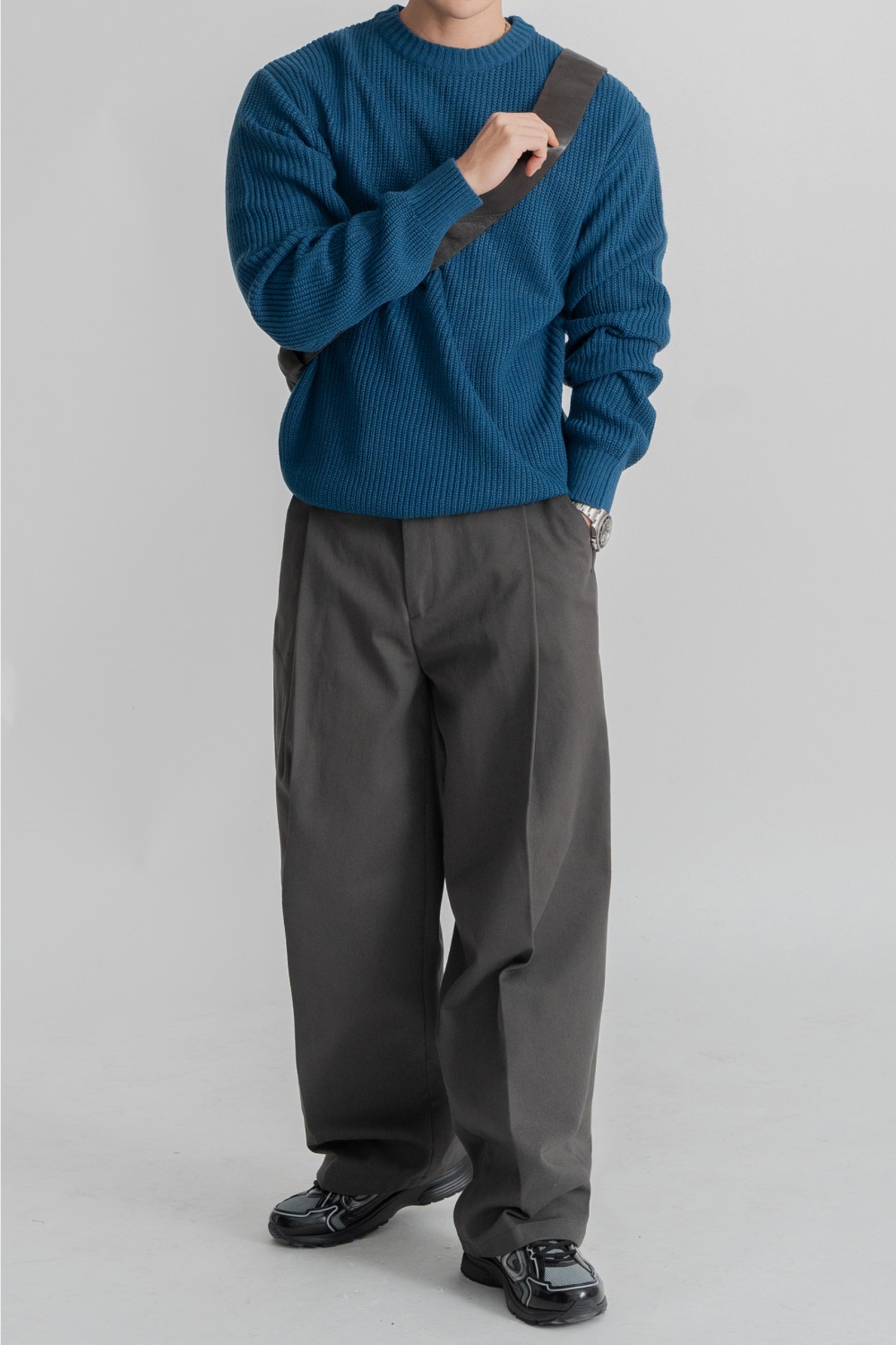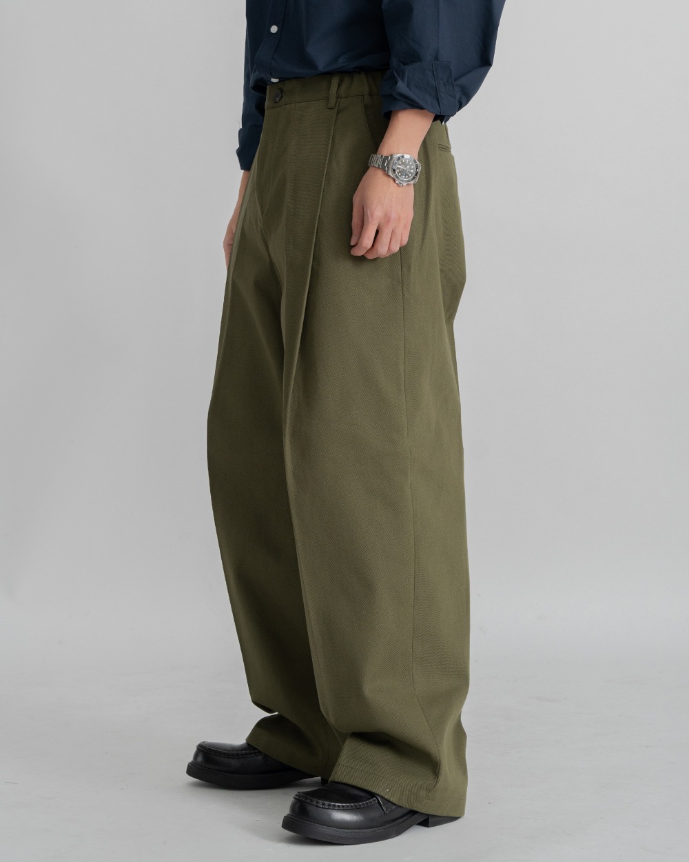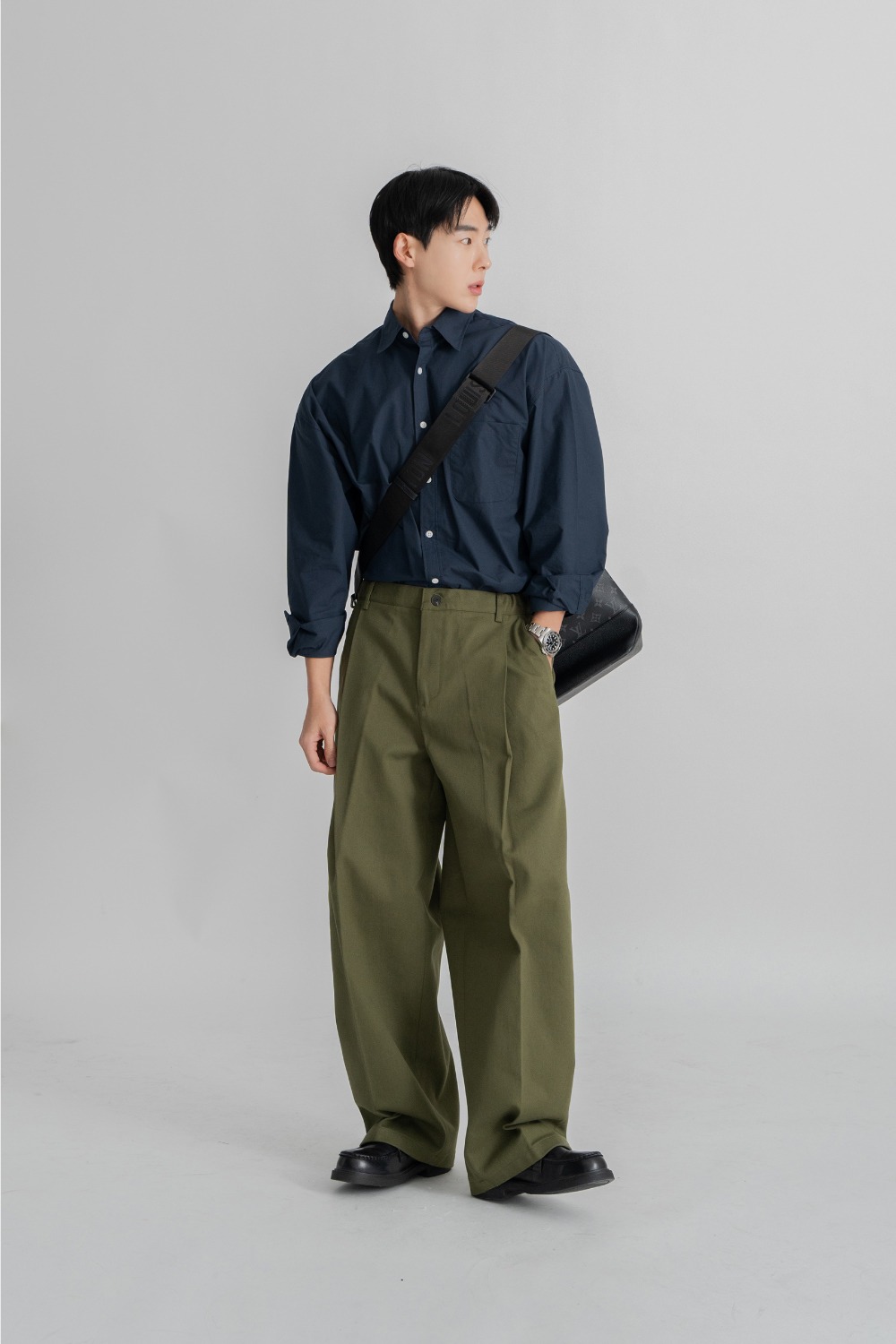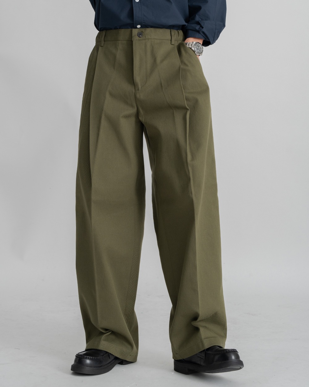 堅固棉打摺後鬆緊寬版休閒長褲 5色 1006