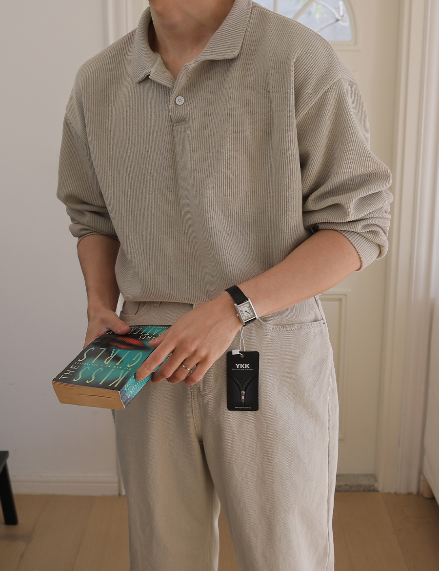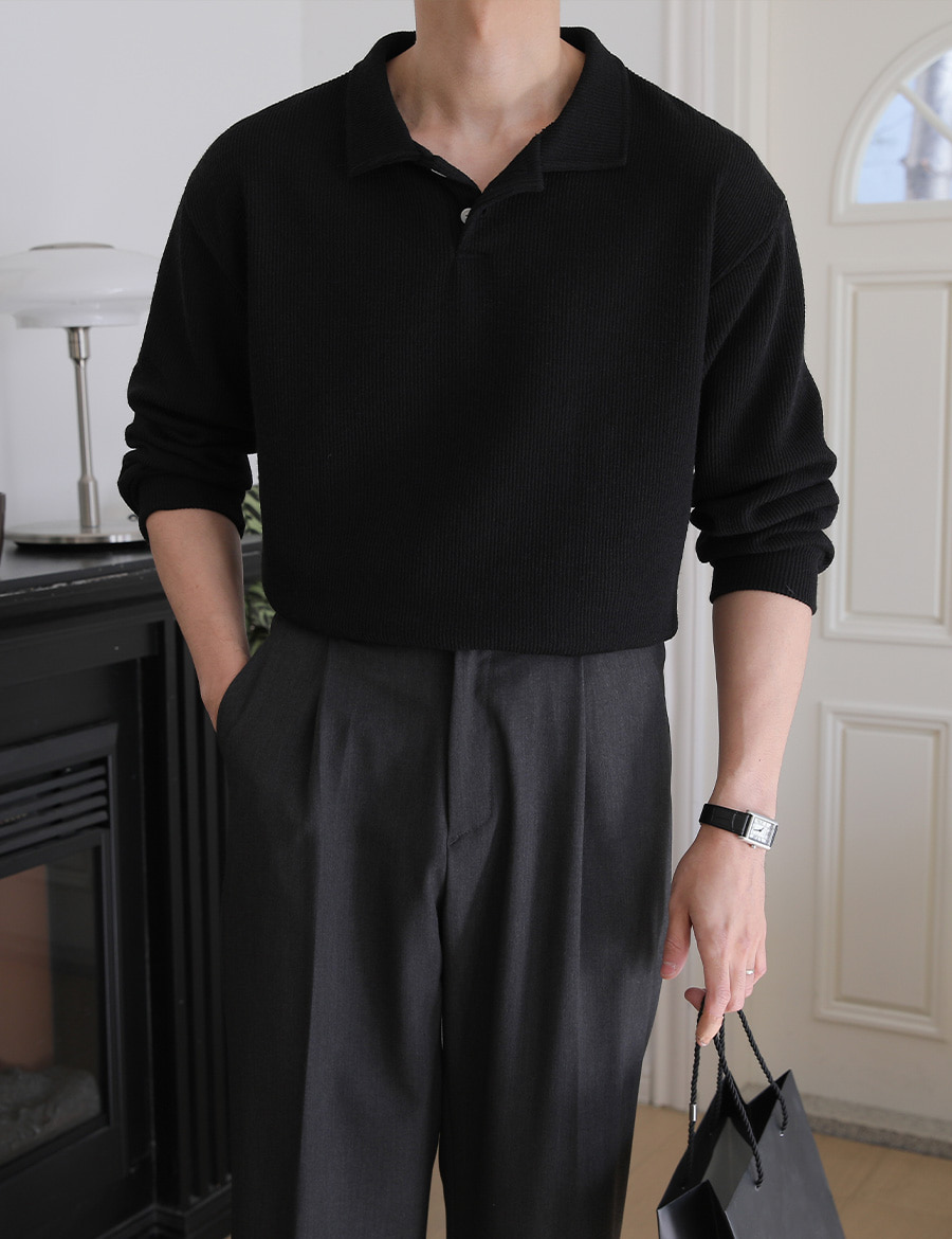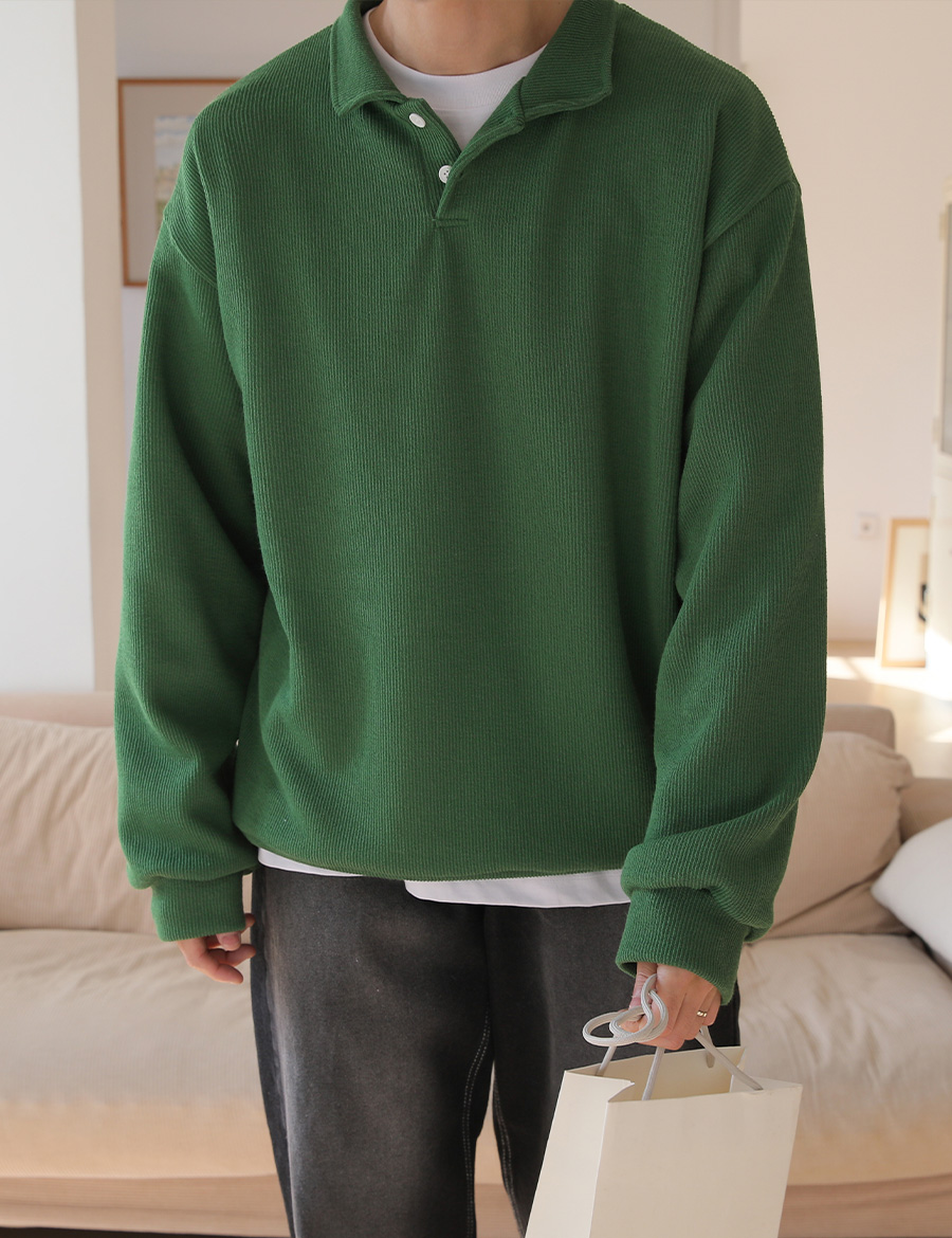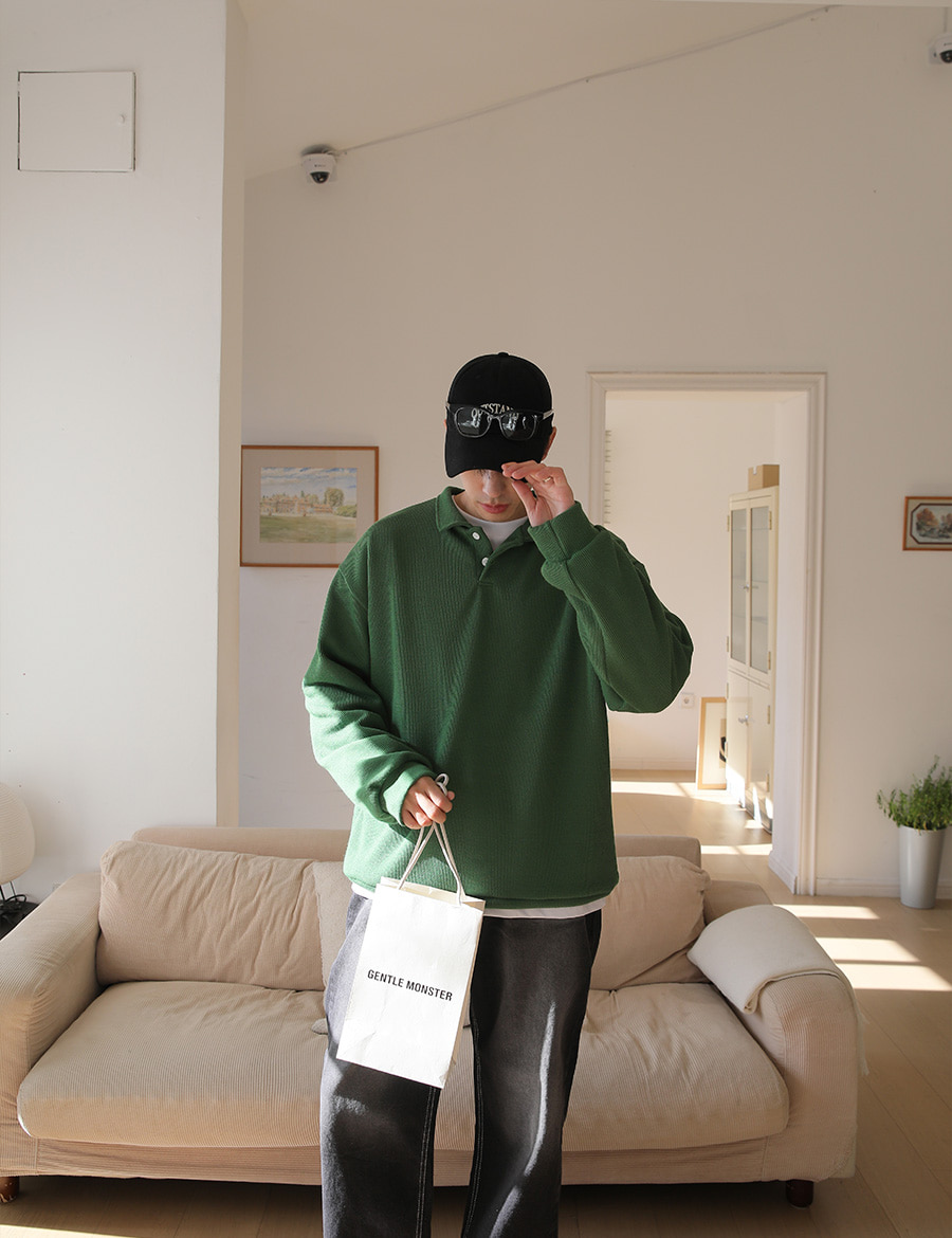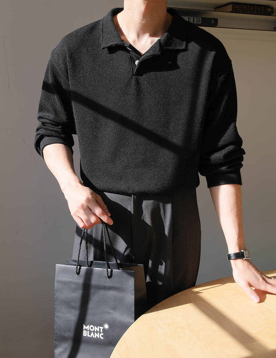 (M-2XL) 堅挺羅紋兩粒扣翻領長袖上衣 10色 1124
