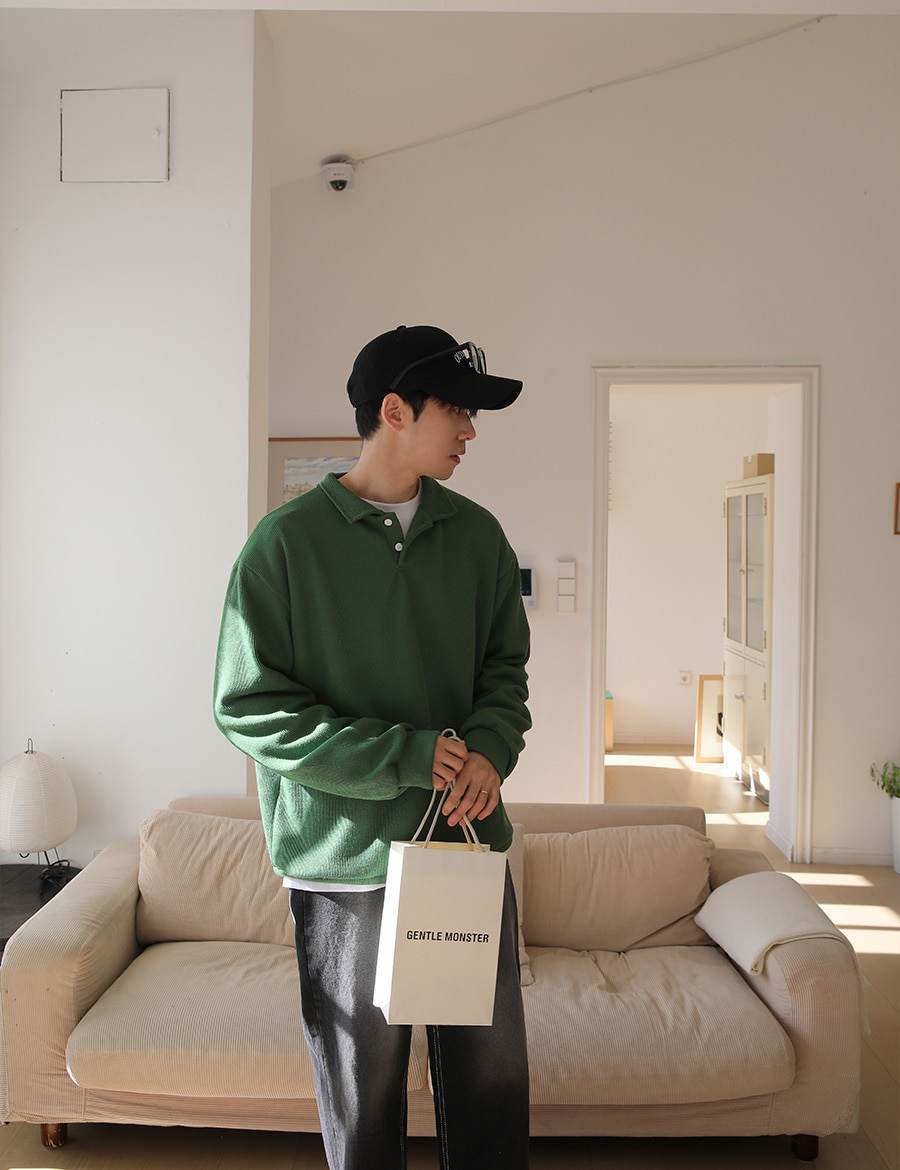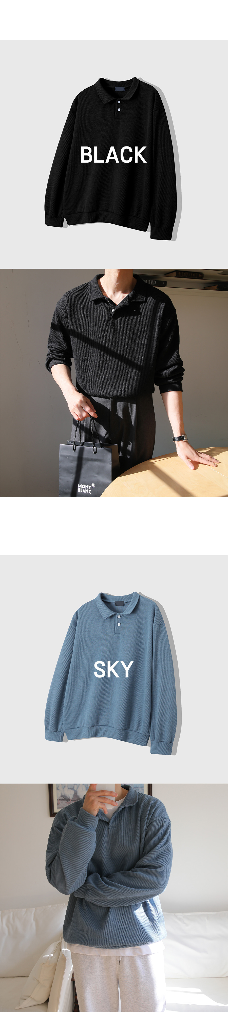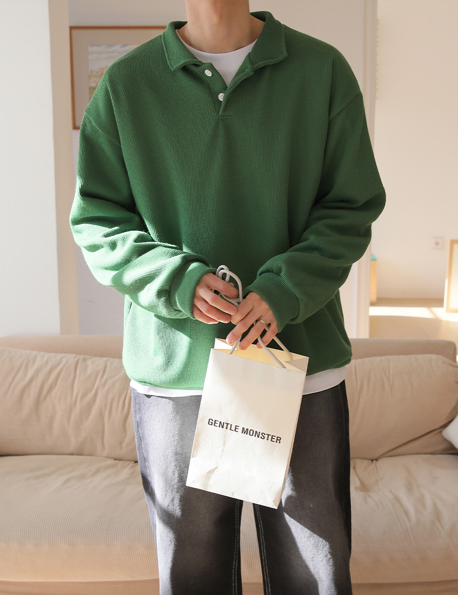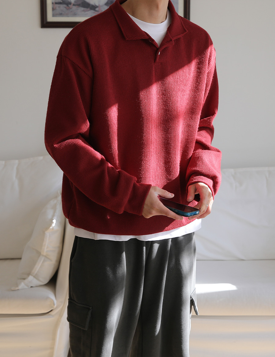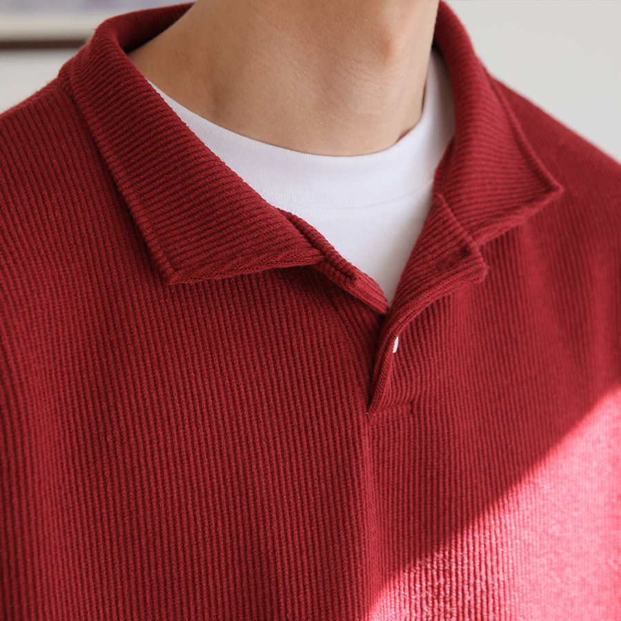(M-2XL) 堅挺羅紋兩粒扣翻領長袖上衣 10色 1124