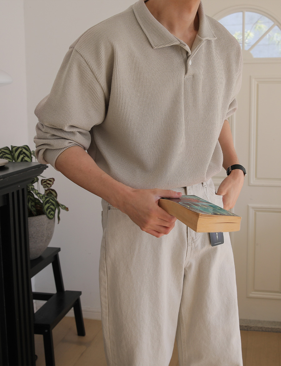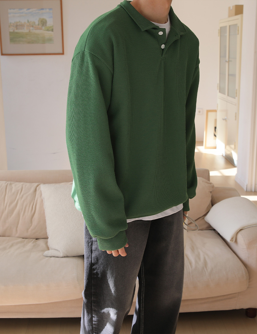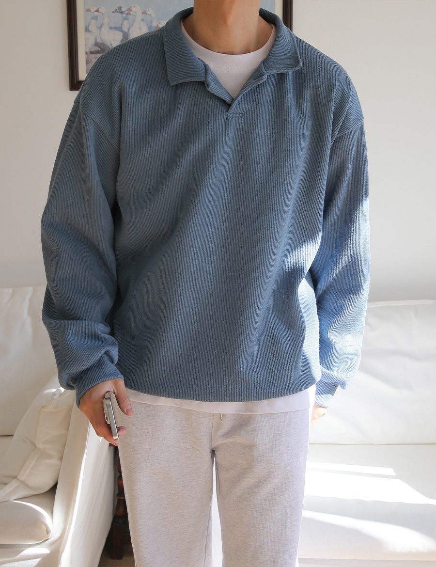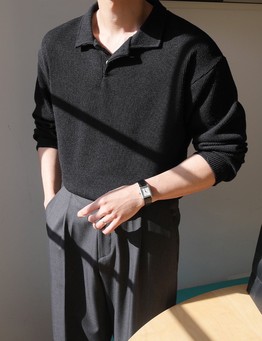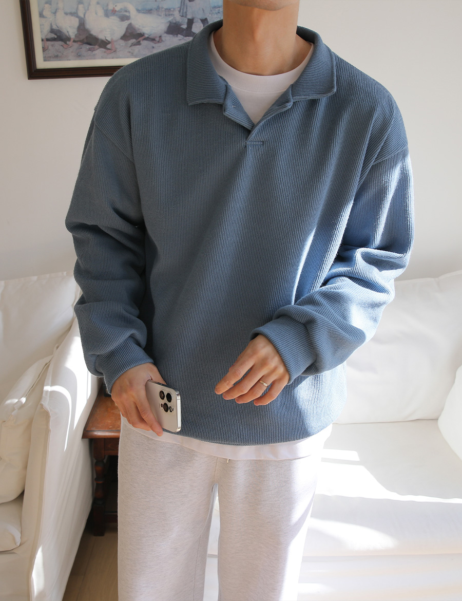 (M-2XL) 堅挺羅紋兩粒扣翻領長袖上衣 10色 1124