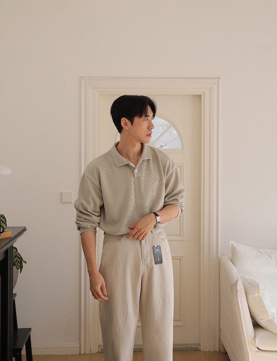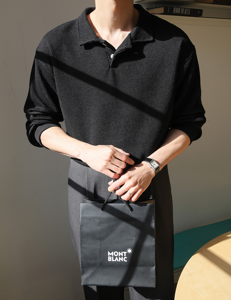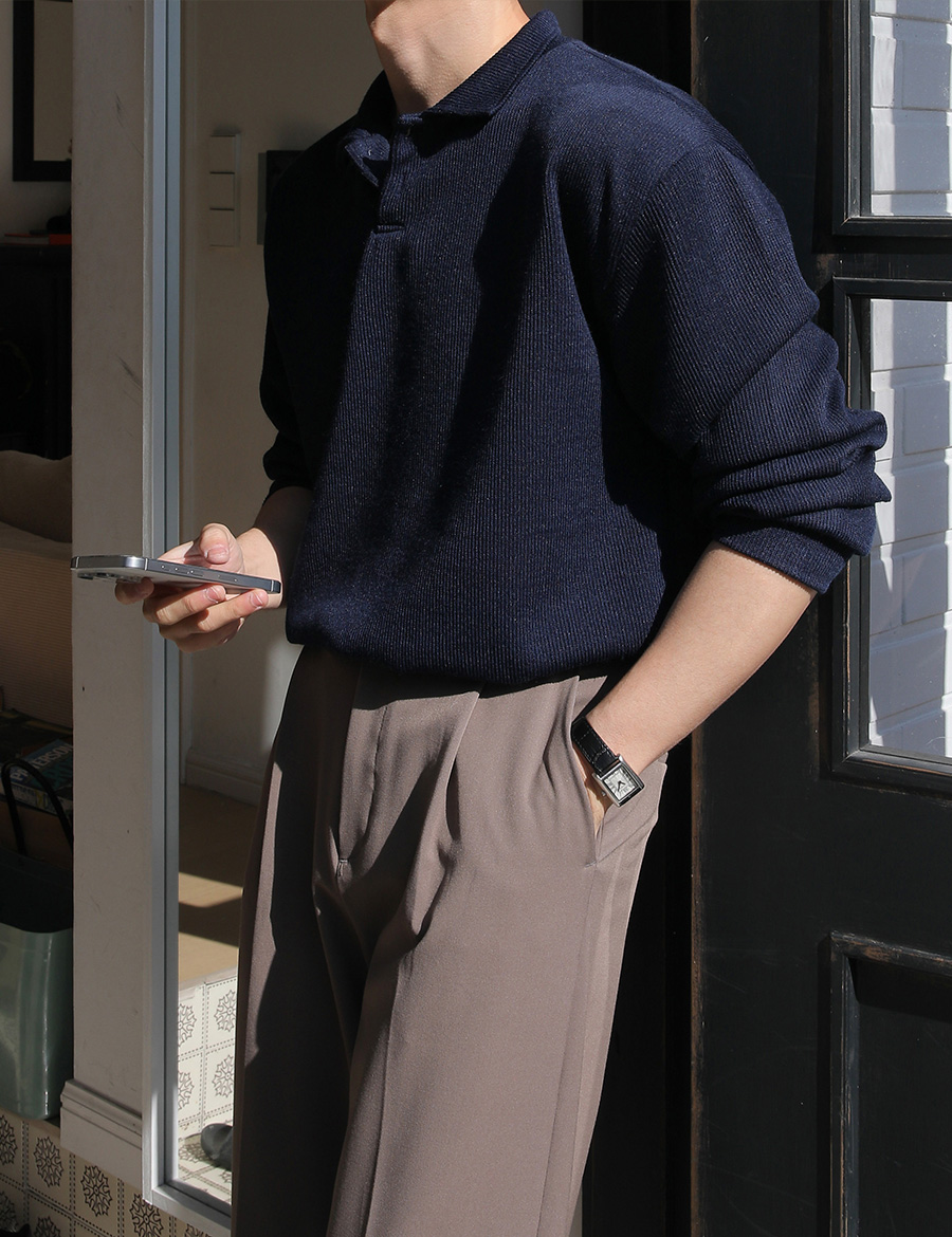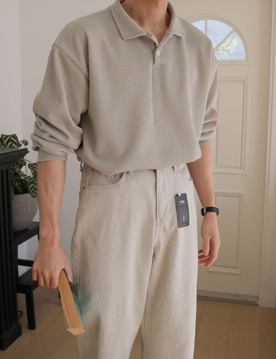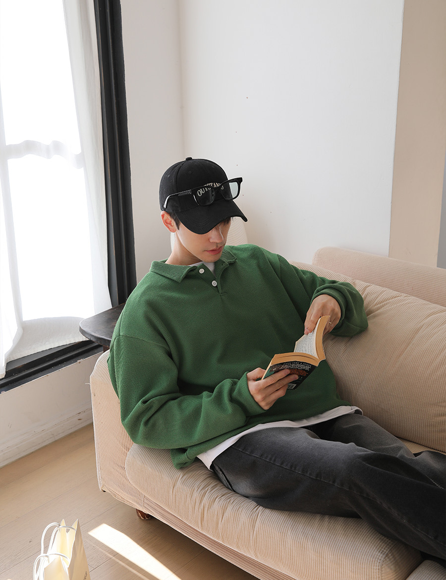 (M-2XL) 堅挺羅紋兩粒扣翻領長袖上衣 10色 1124