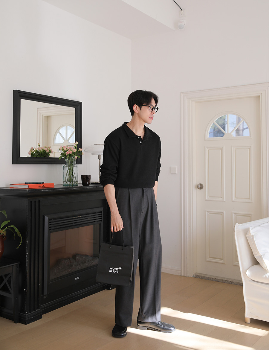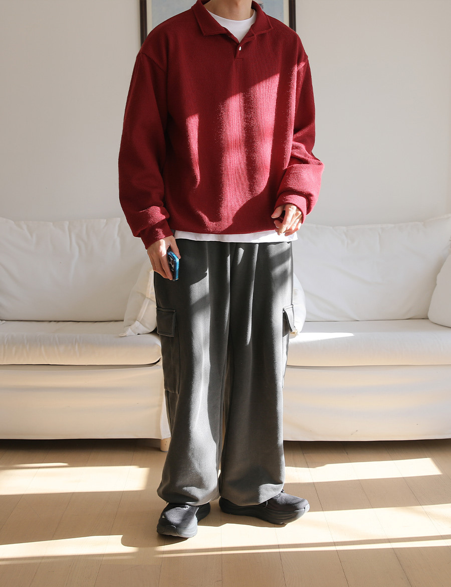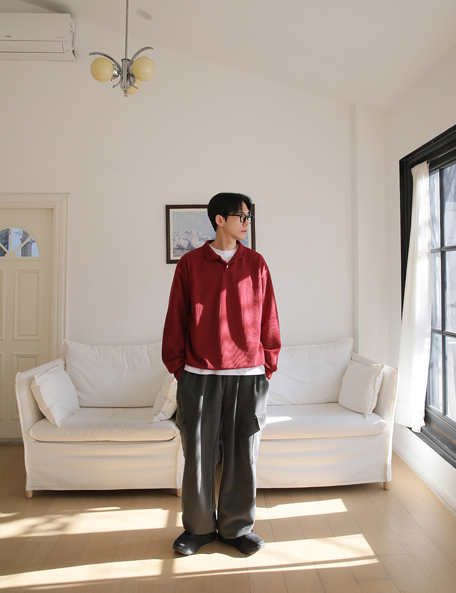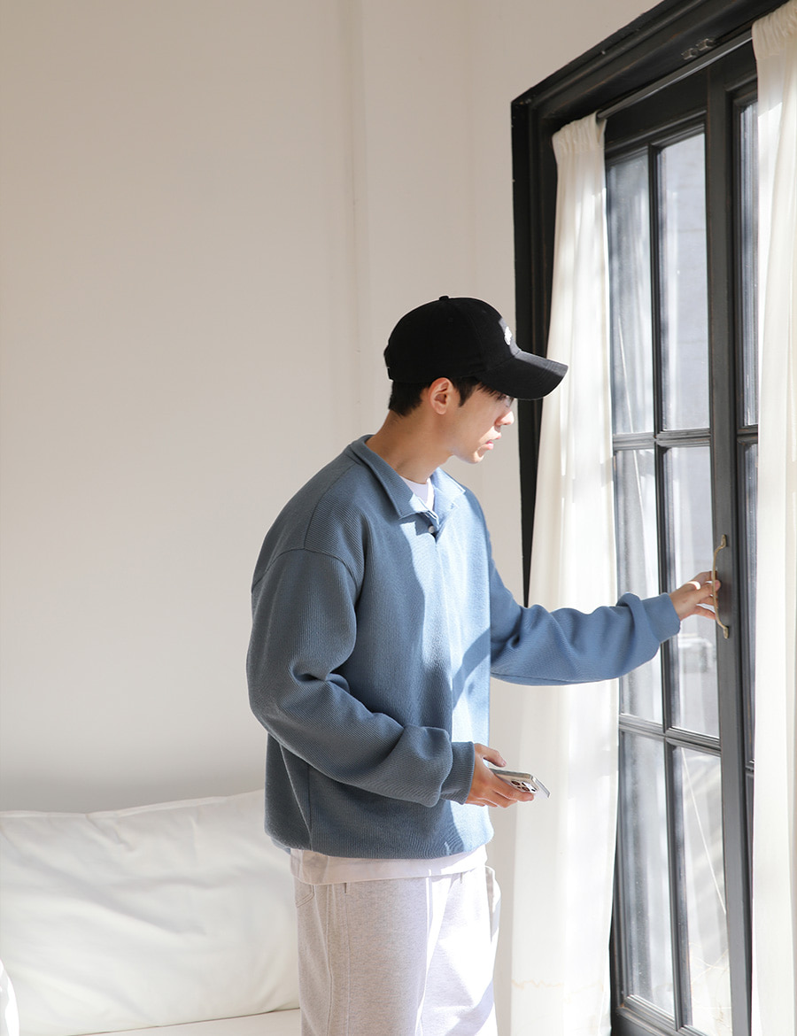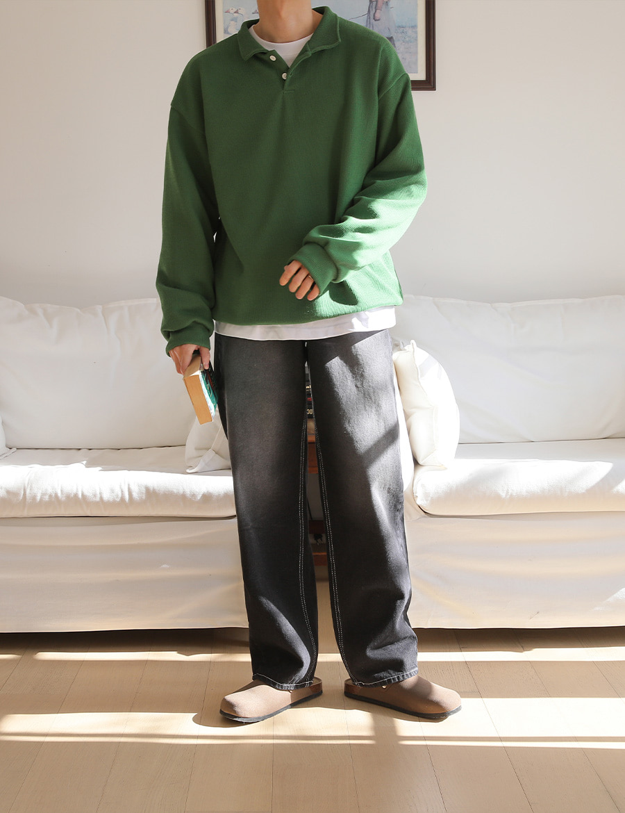 (M-2XL) 堅挺羅紋兩粒扣翻領長袖上衣 10色 1124