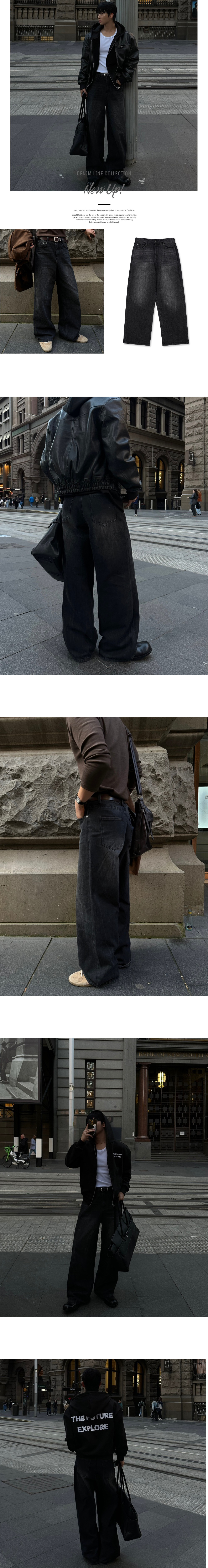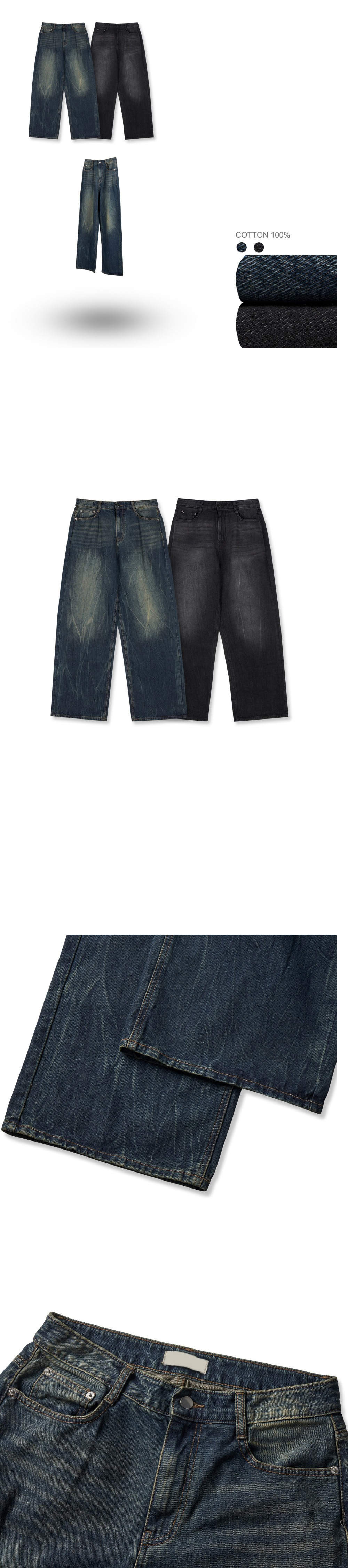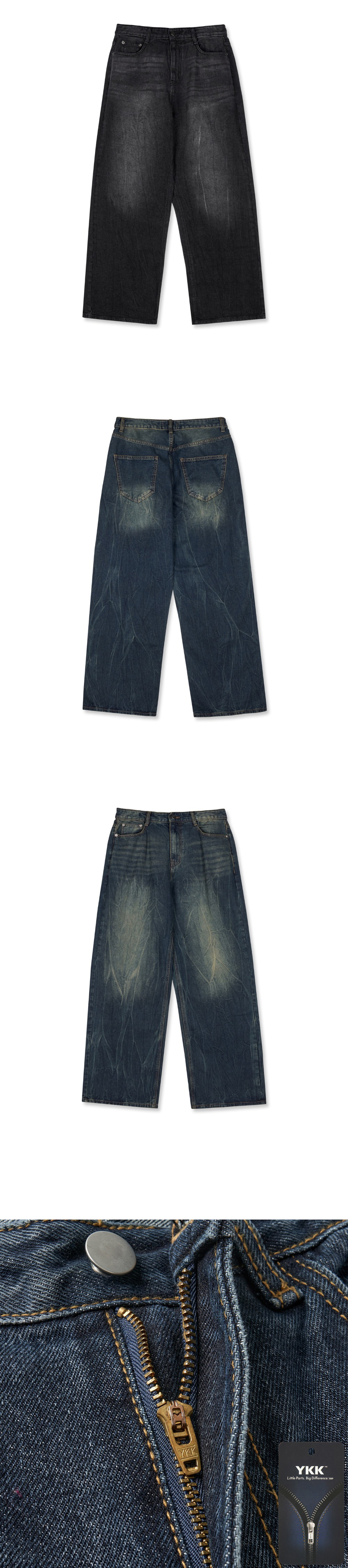 獨特裂紋弧形寬版剪裁牛仔褲 2色 1117