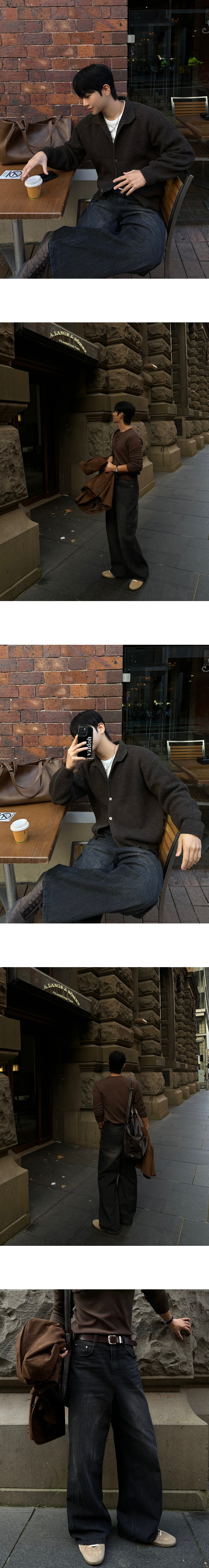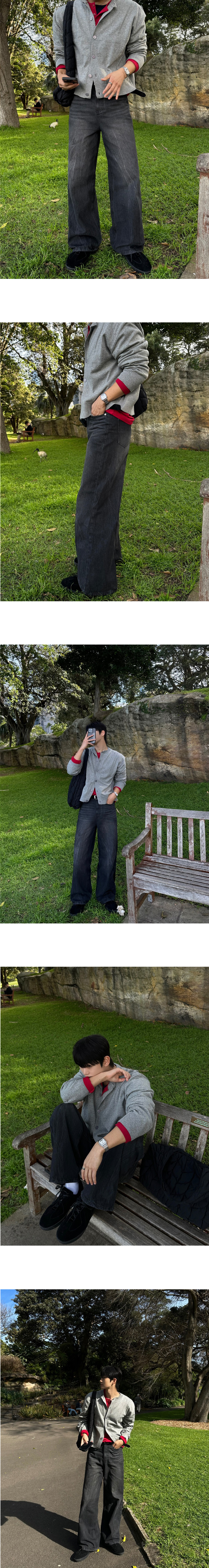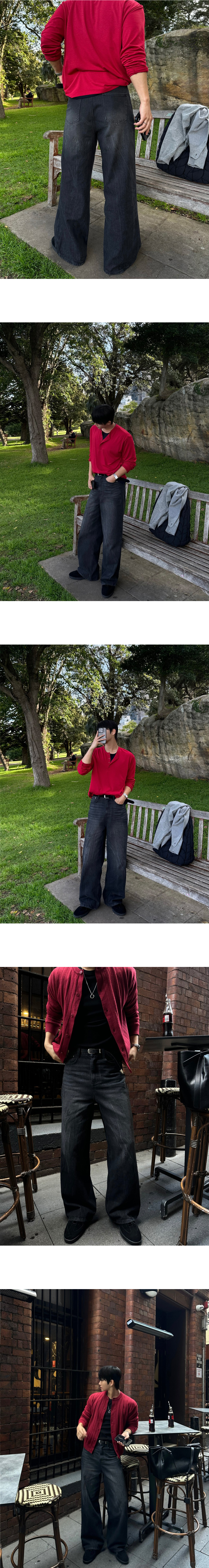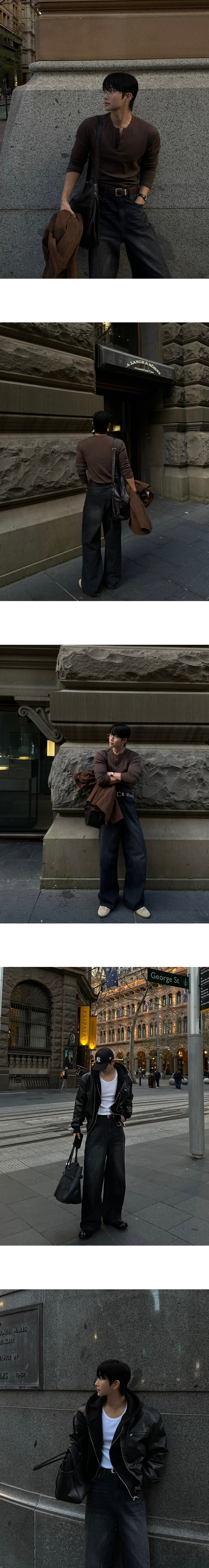 獨特裂紋弧形寬版剪裁牛仔褲 2色 1117