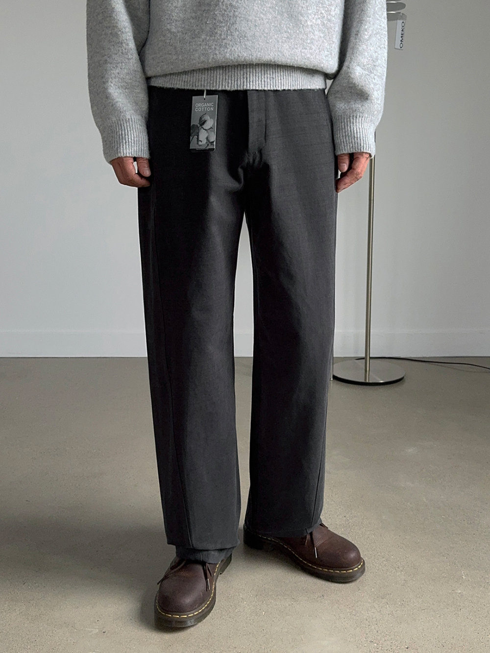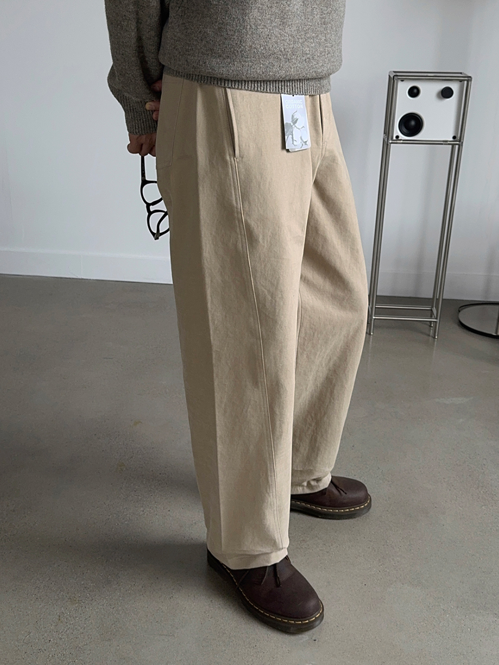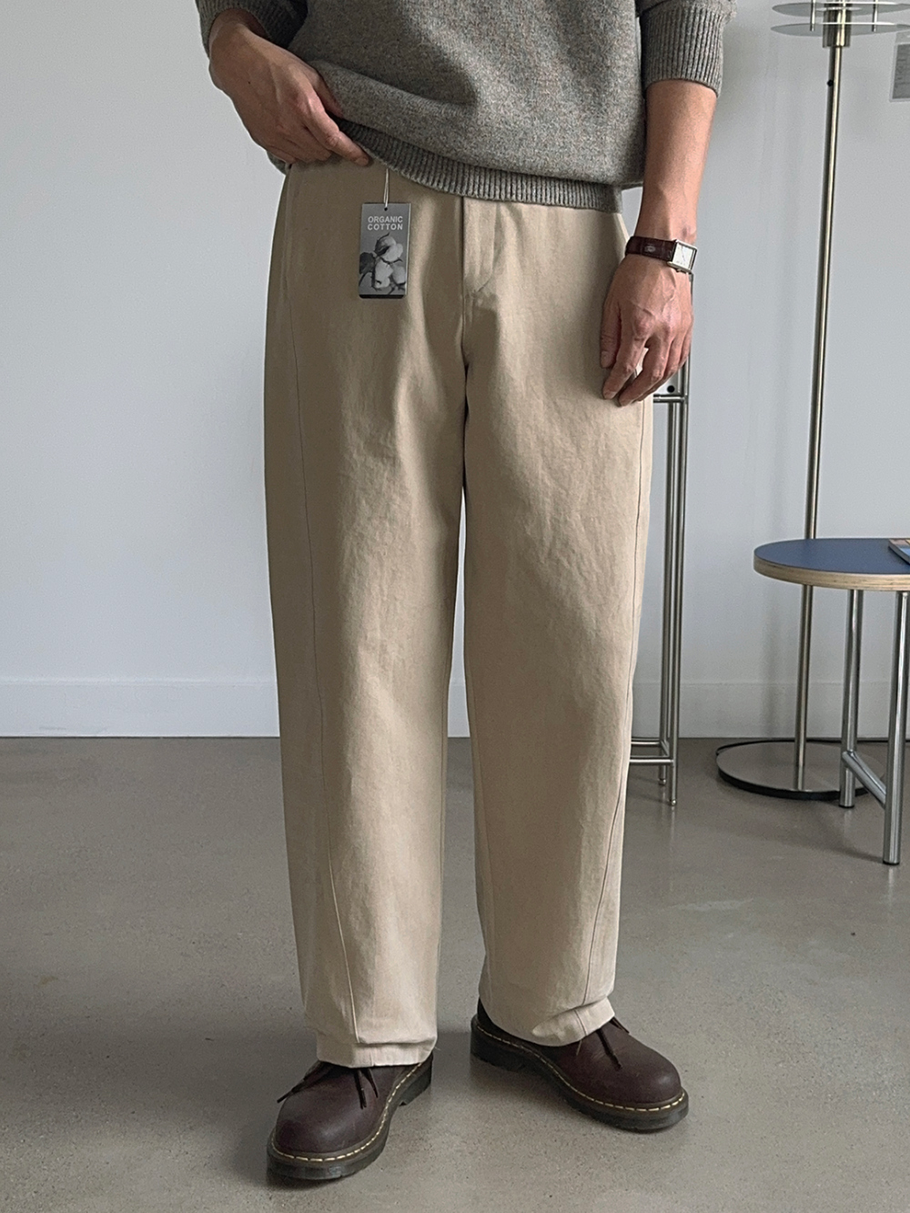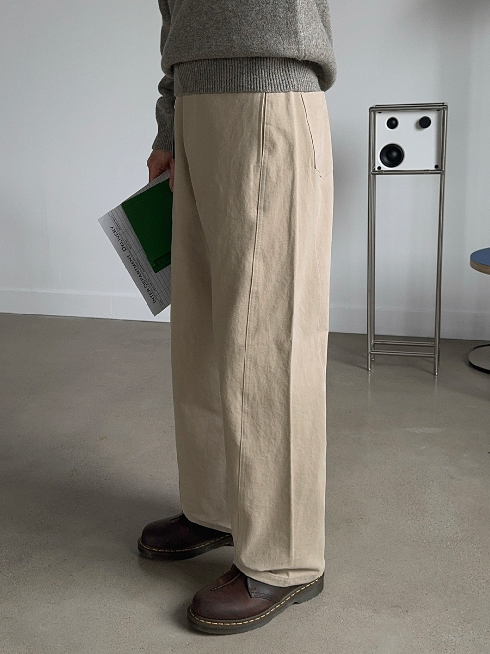 極簡堅挺棉料弧線剪裁休閒寬褲 4色 1215
