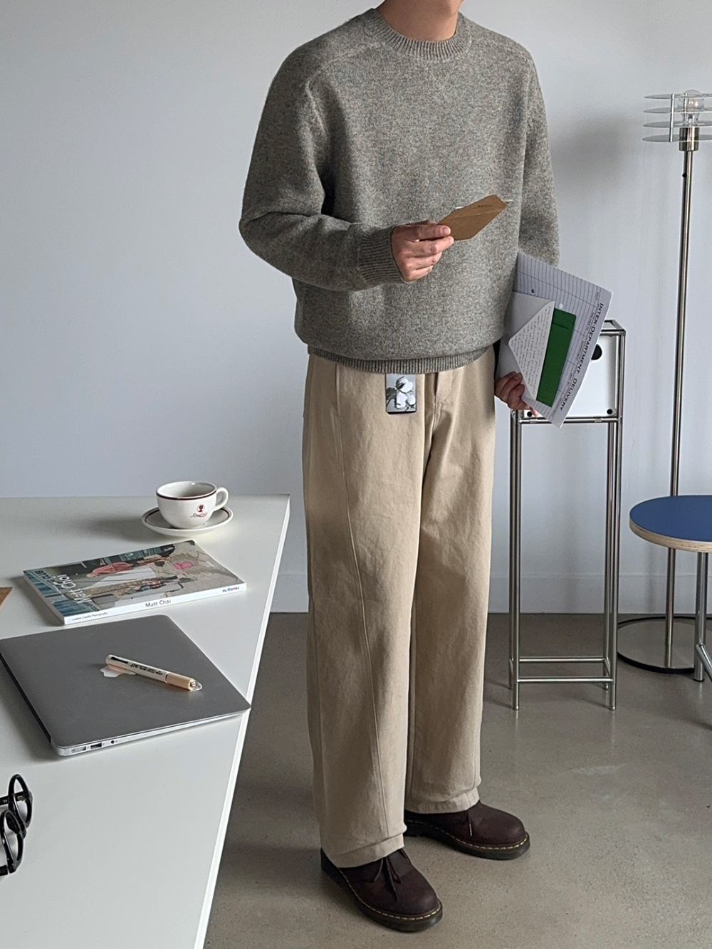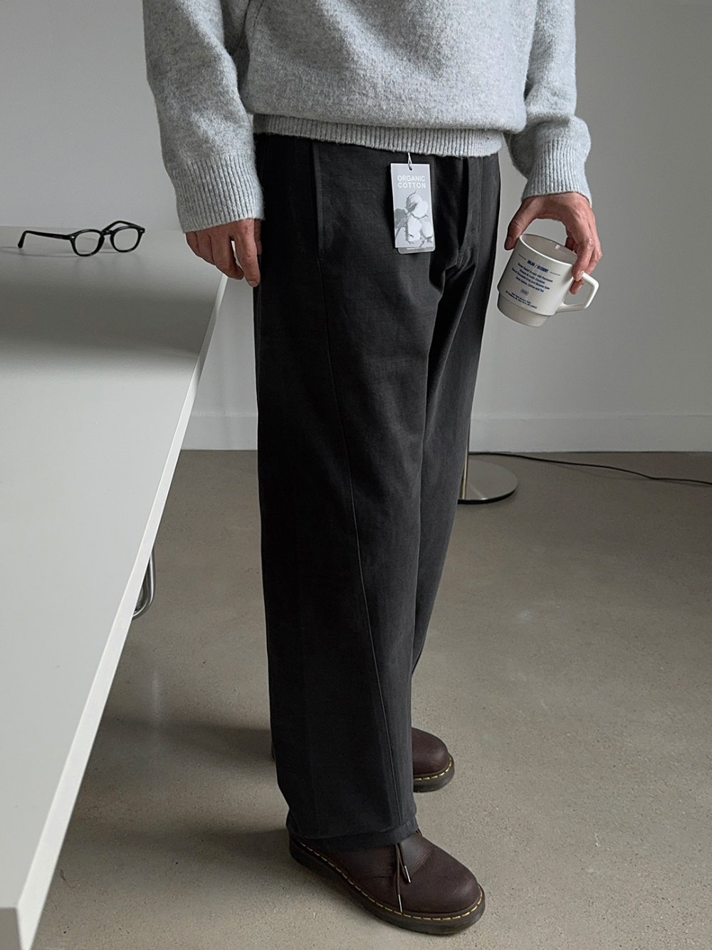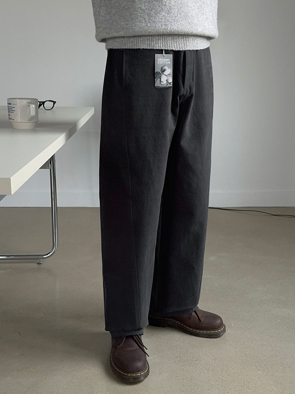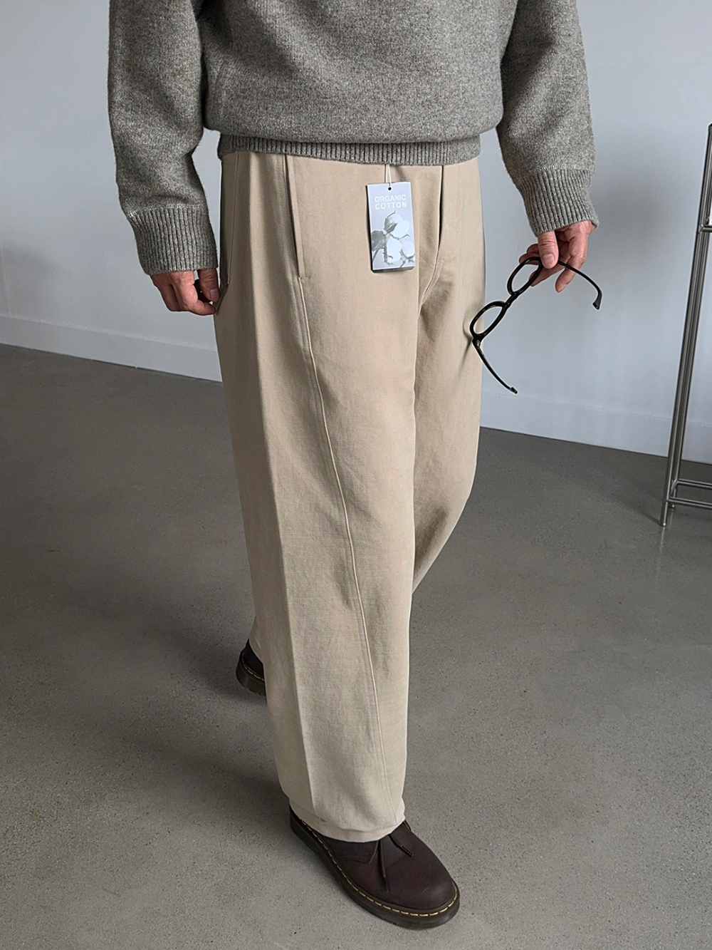 極簡堅挺棉料弧線剪裁休閒寬褲 4色 1215