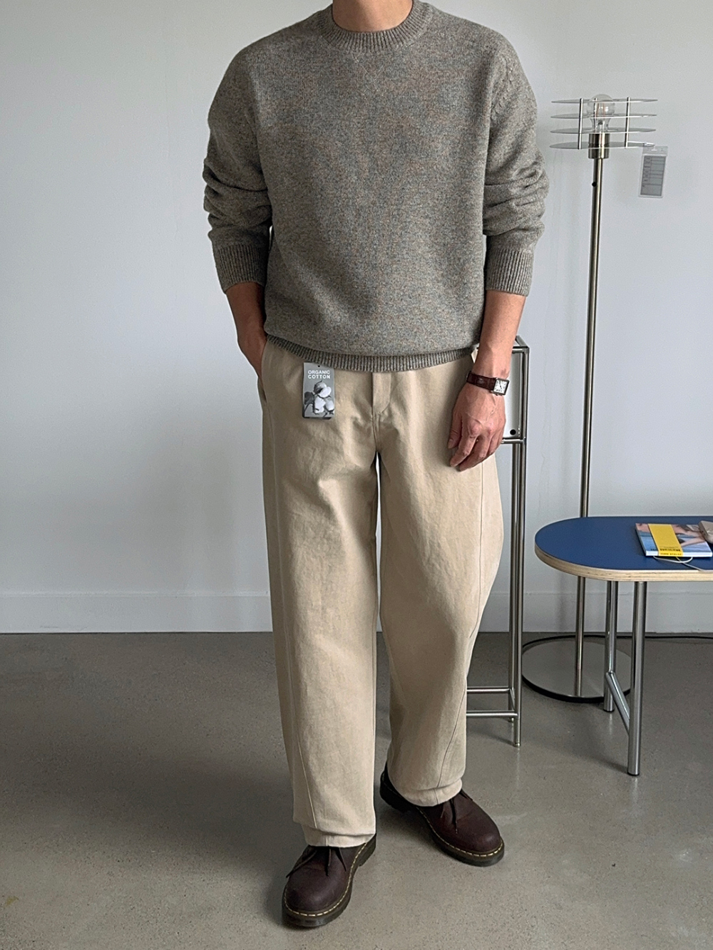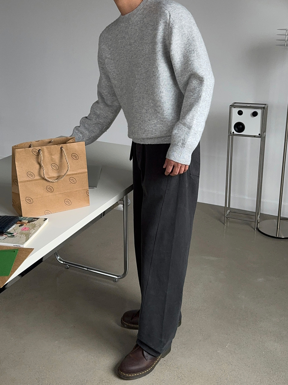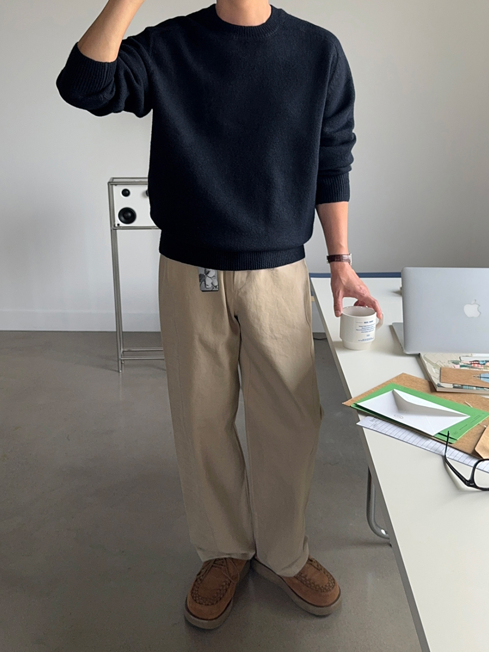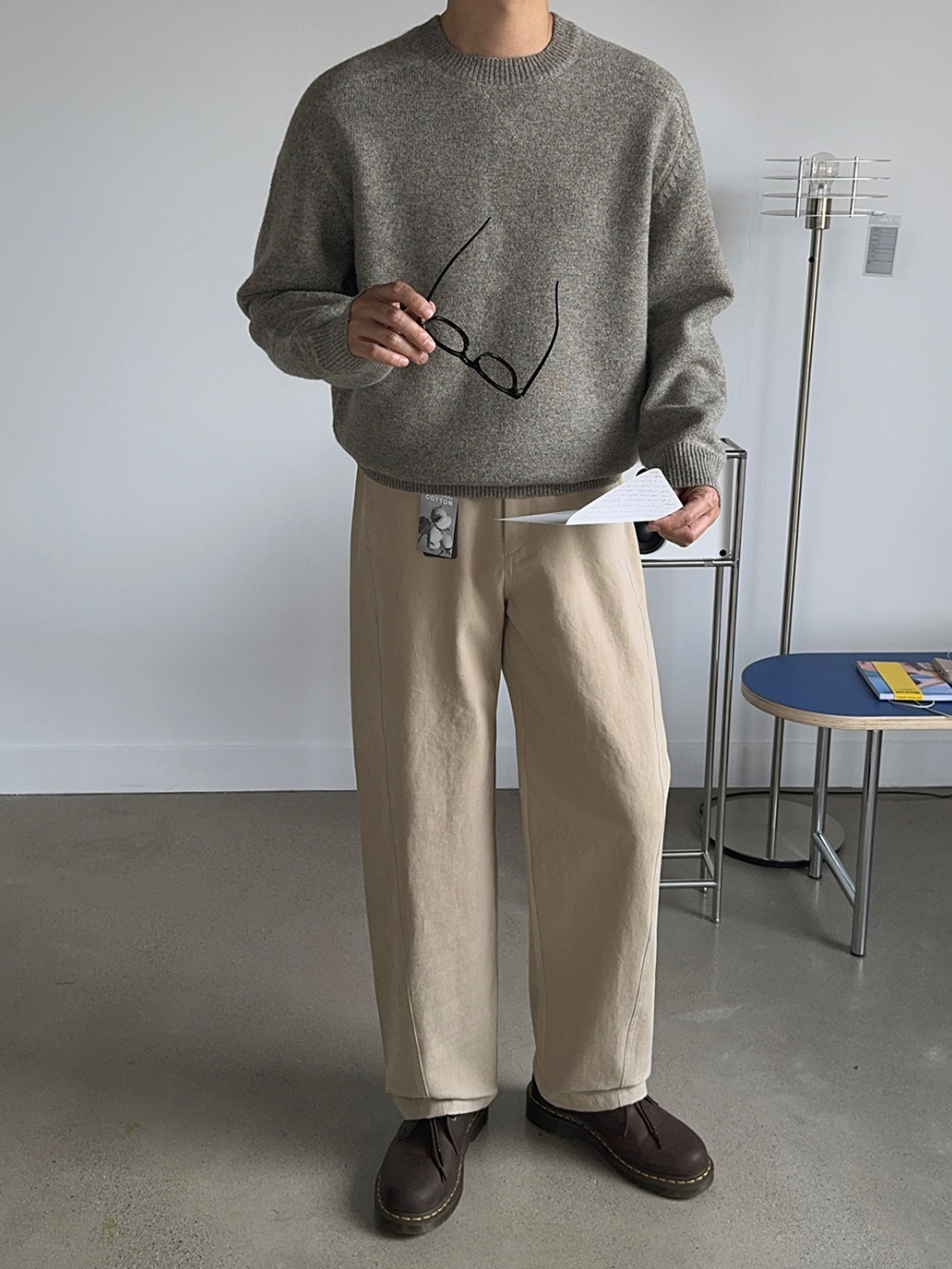 極簡堅挺棉料弧線剪裁休閒寬褲 4色 1215