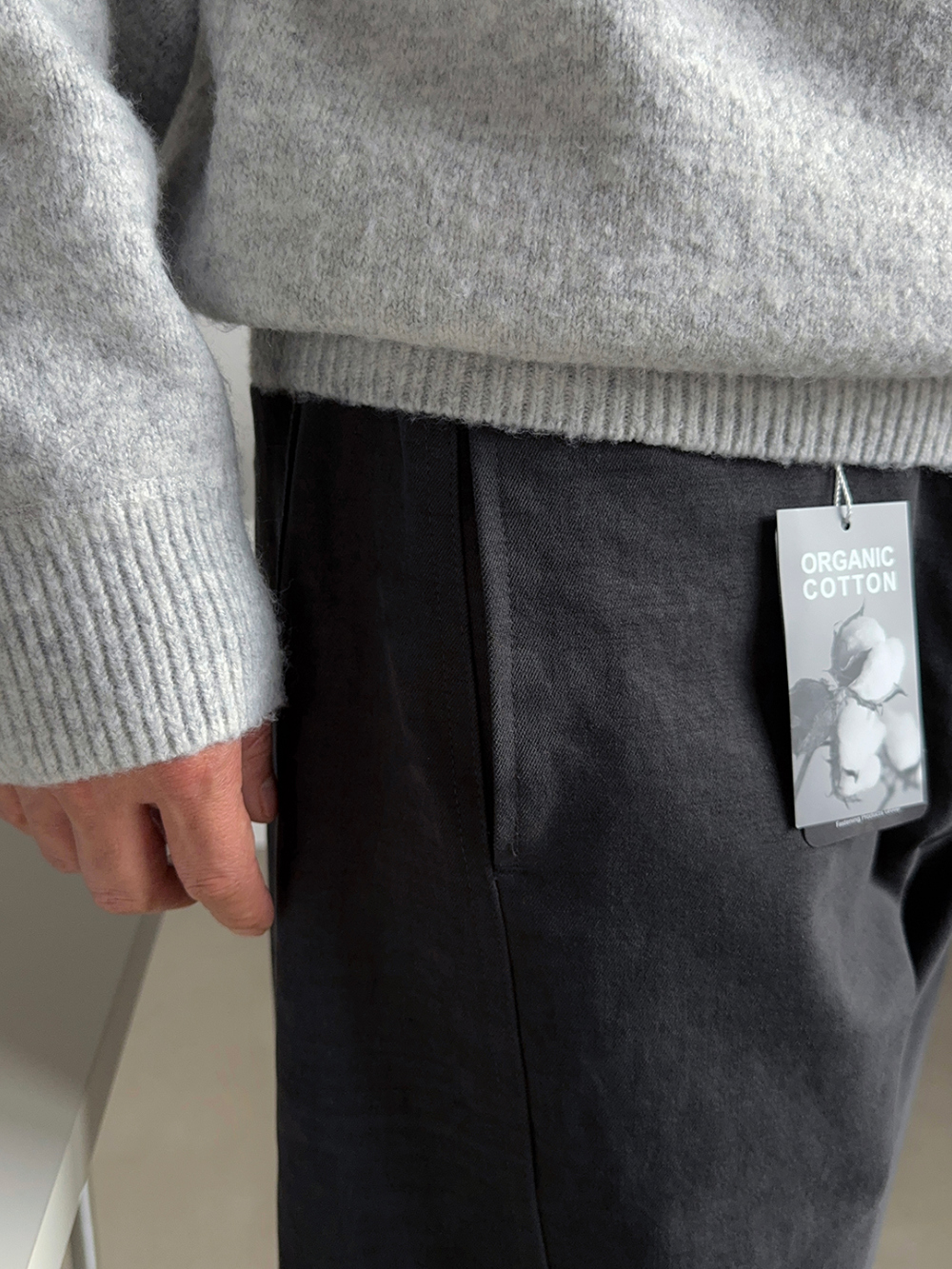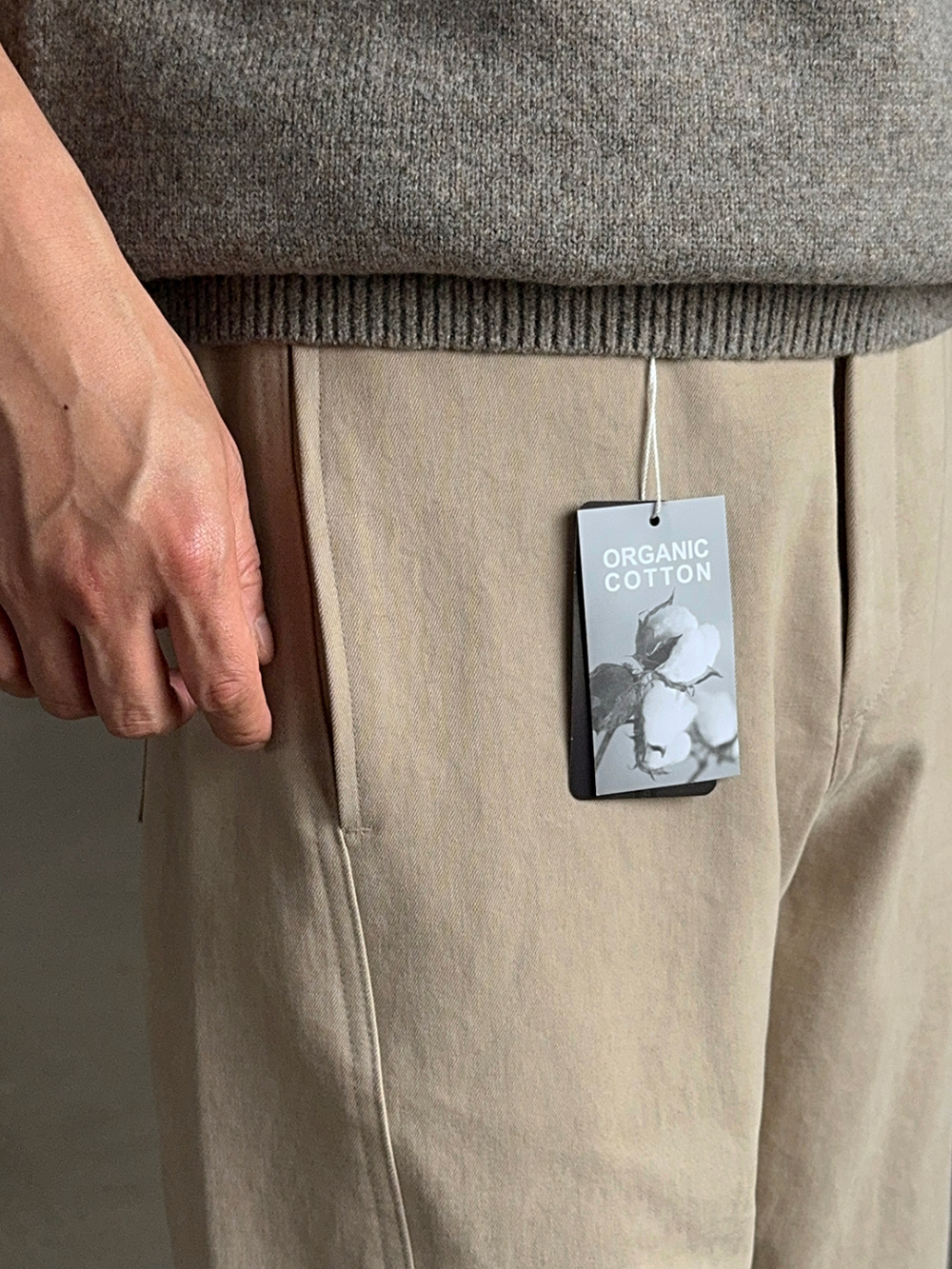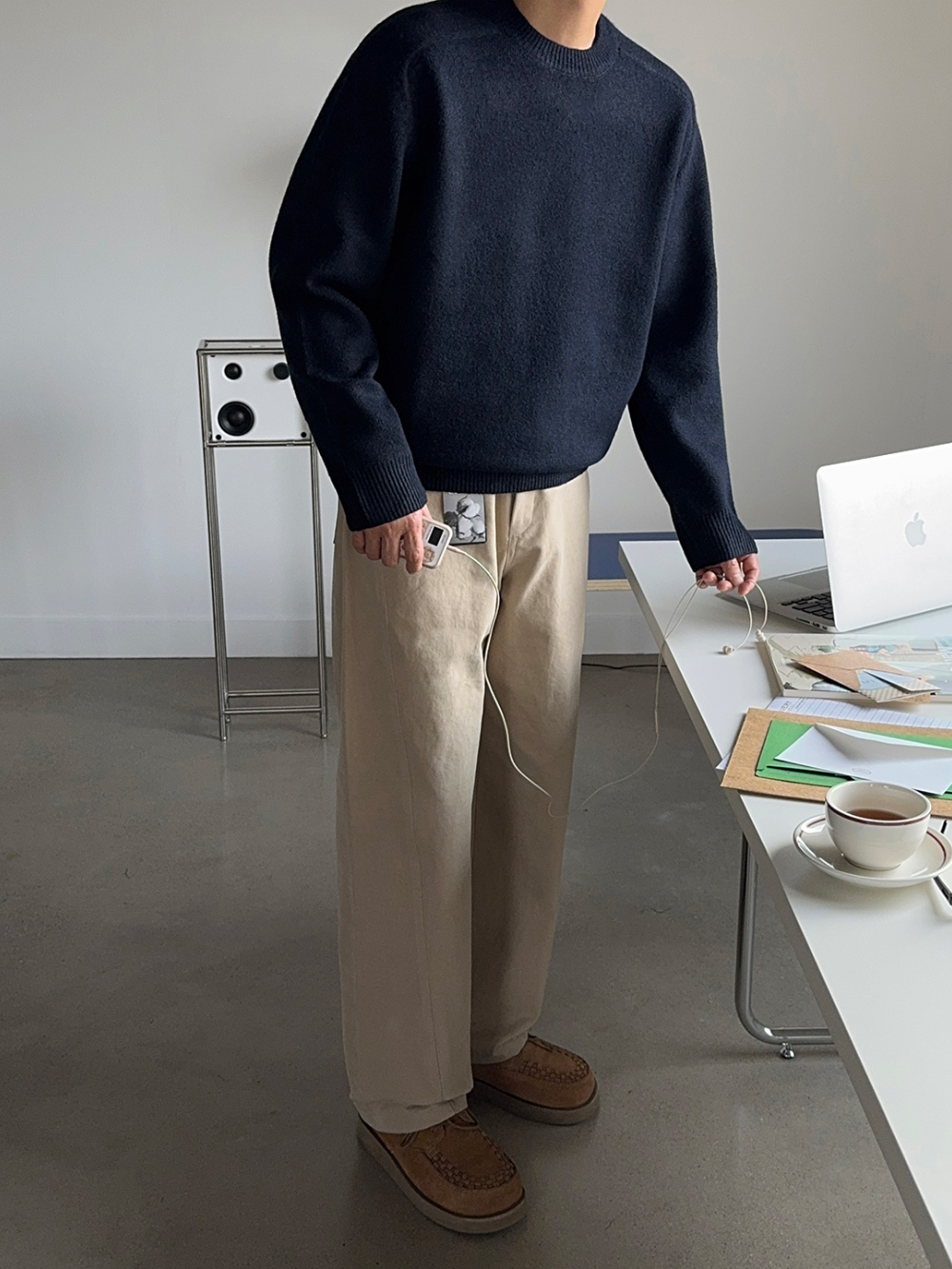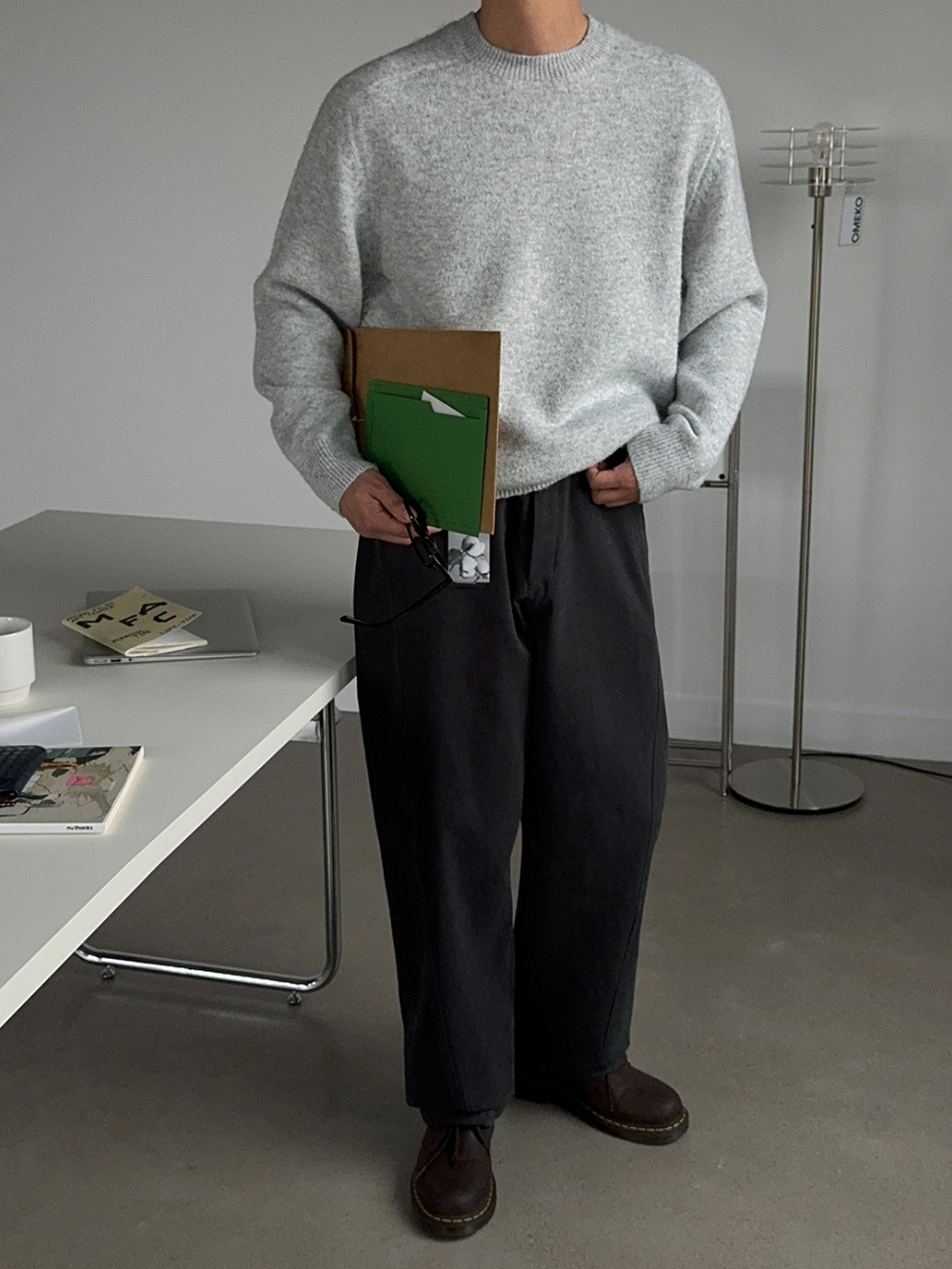 極簡堅挺棉料弧線剪裁休閒寬褲 4色 1215