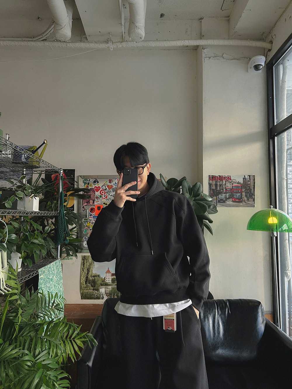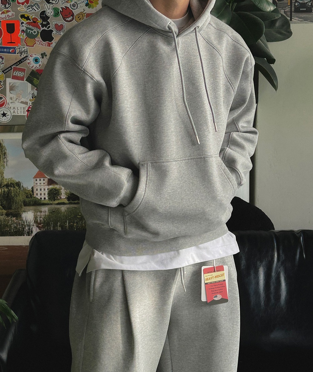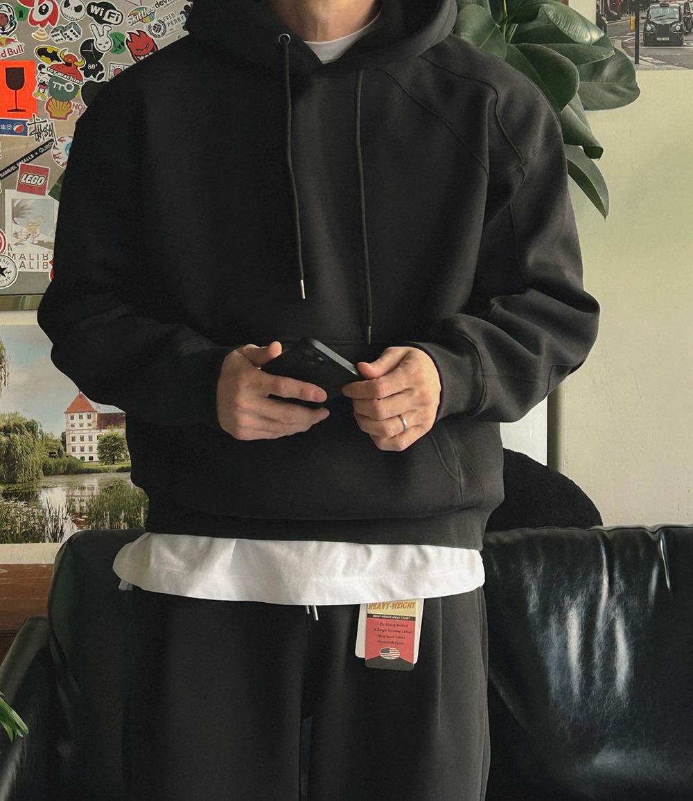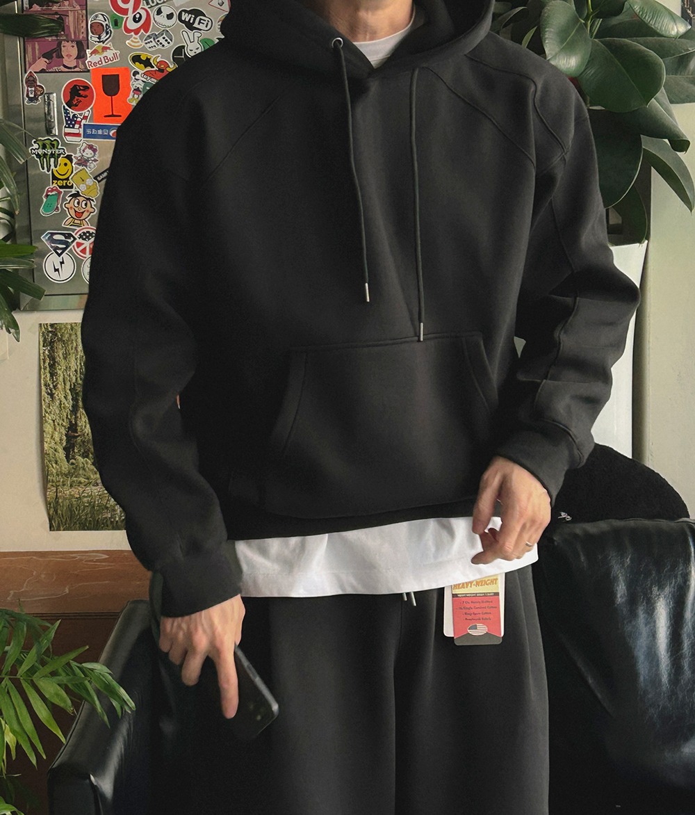 厚實美國棉肩線剪裁內抓絨連帽上衣 4色 0105