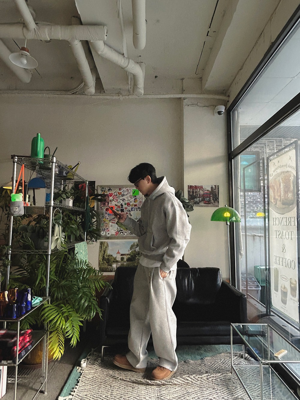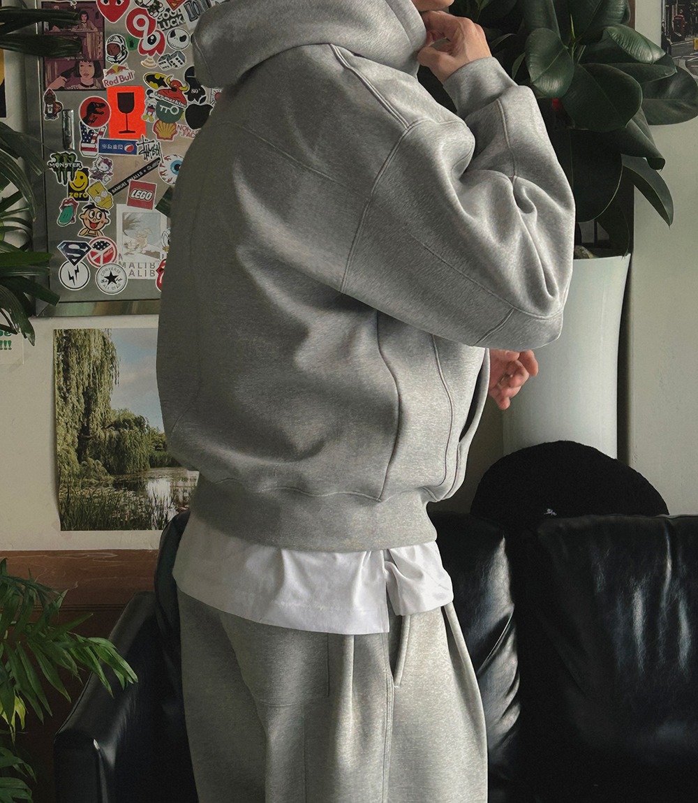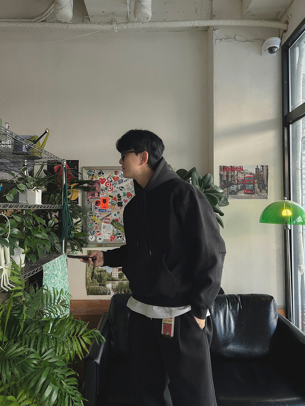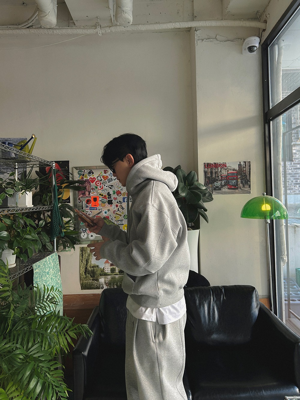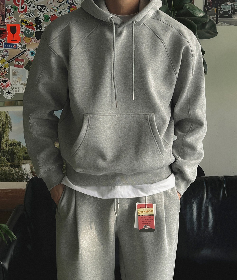 厚實美國棉肩線剪裁內抓絨連帽上衣 4色 0105