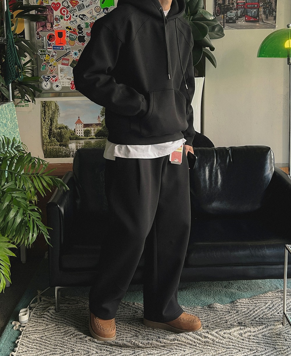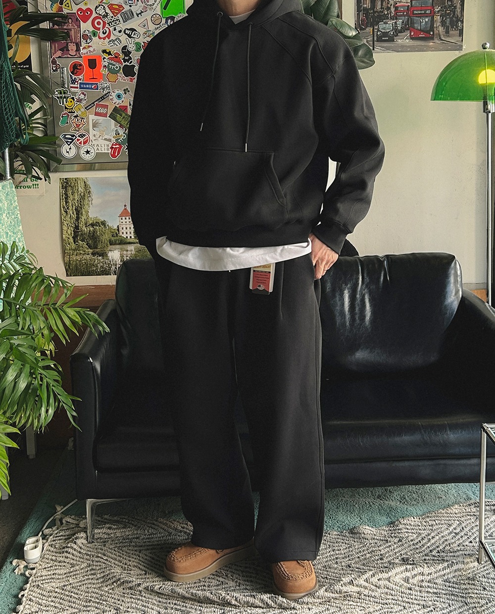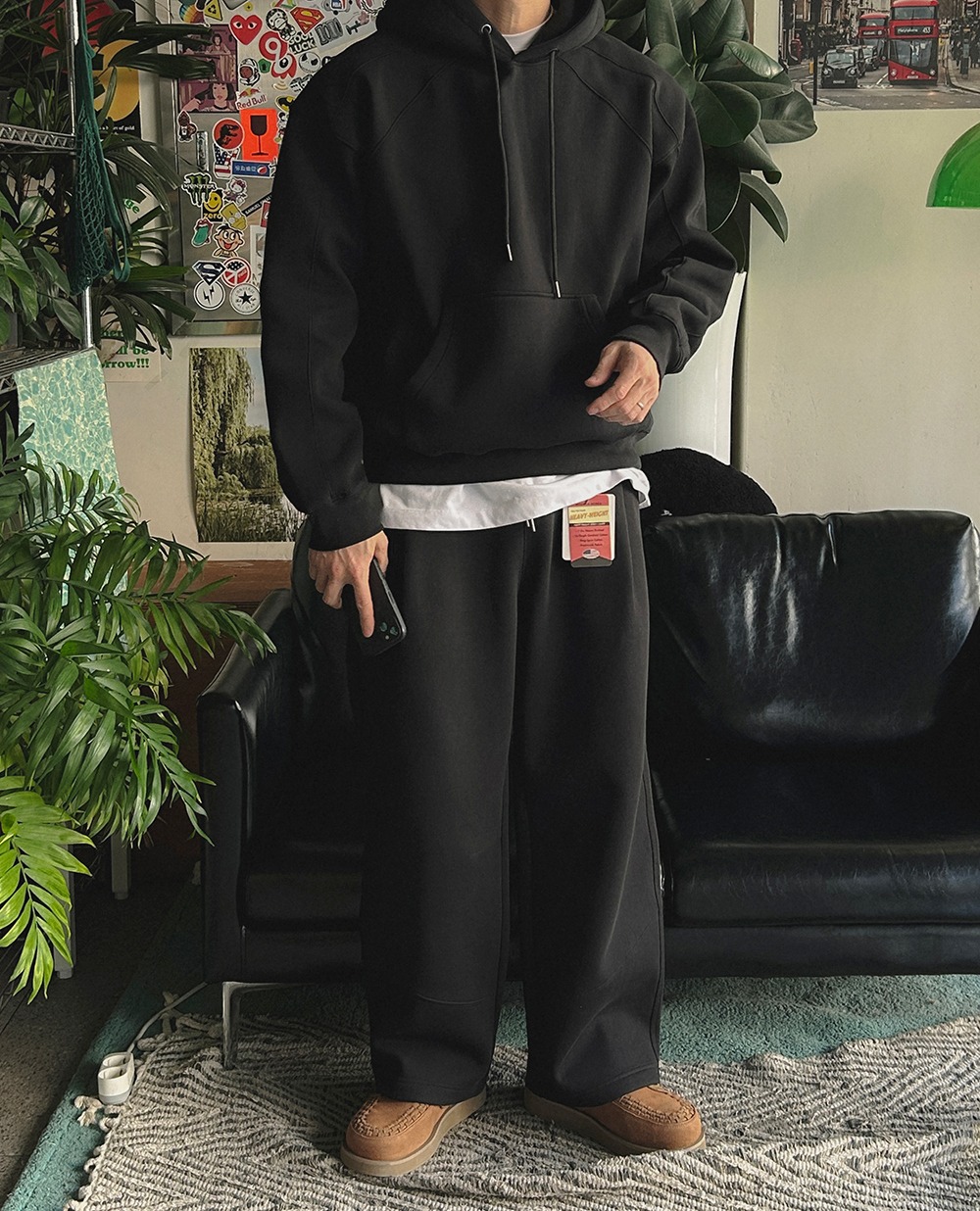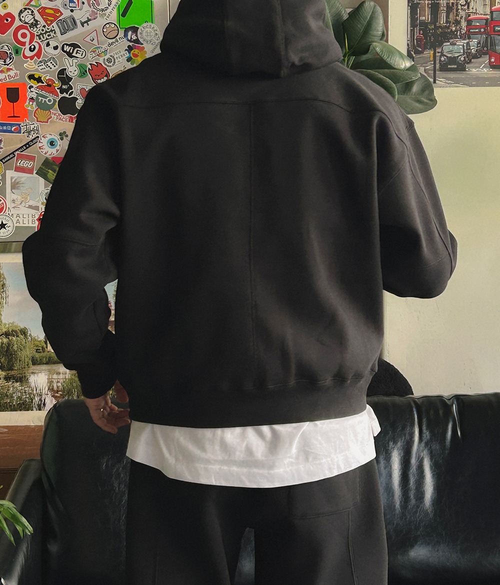 厚實美國棉肩線剪裁內抓絨連帽上衣 4色 0105