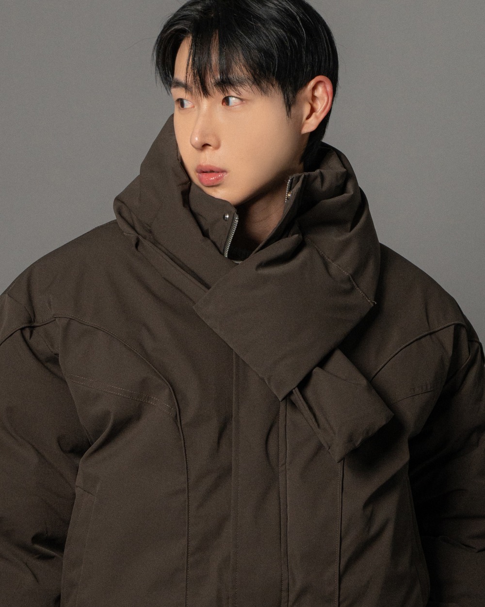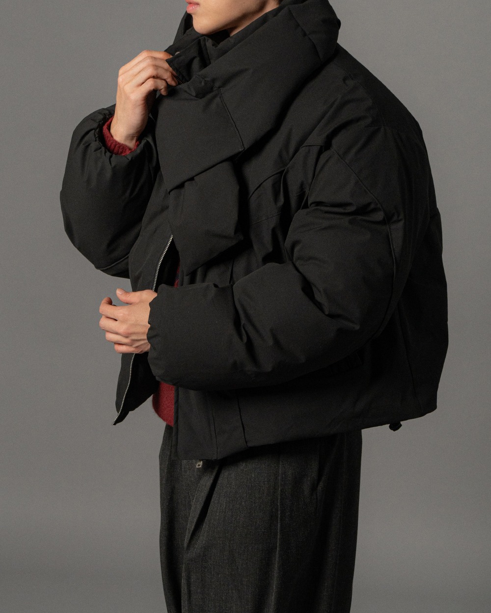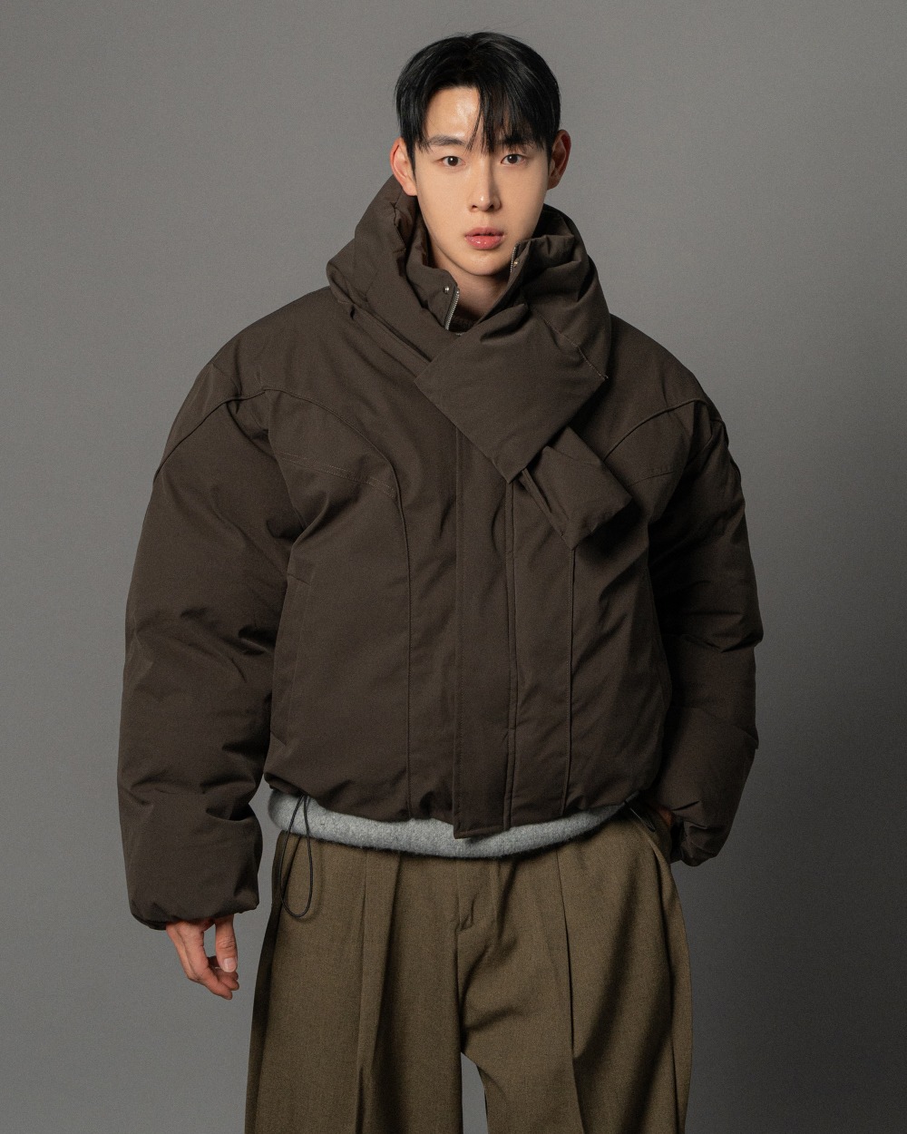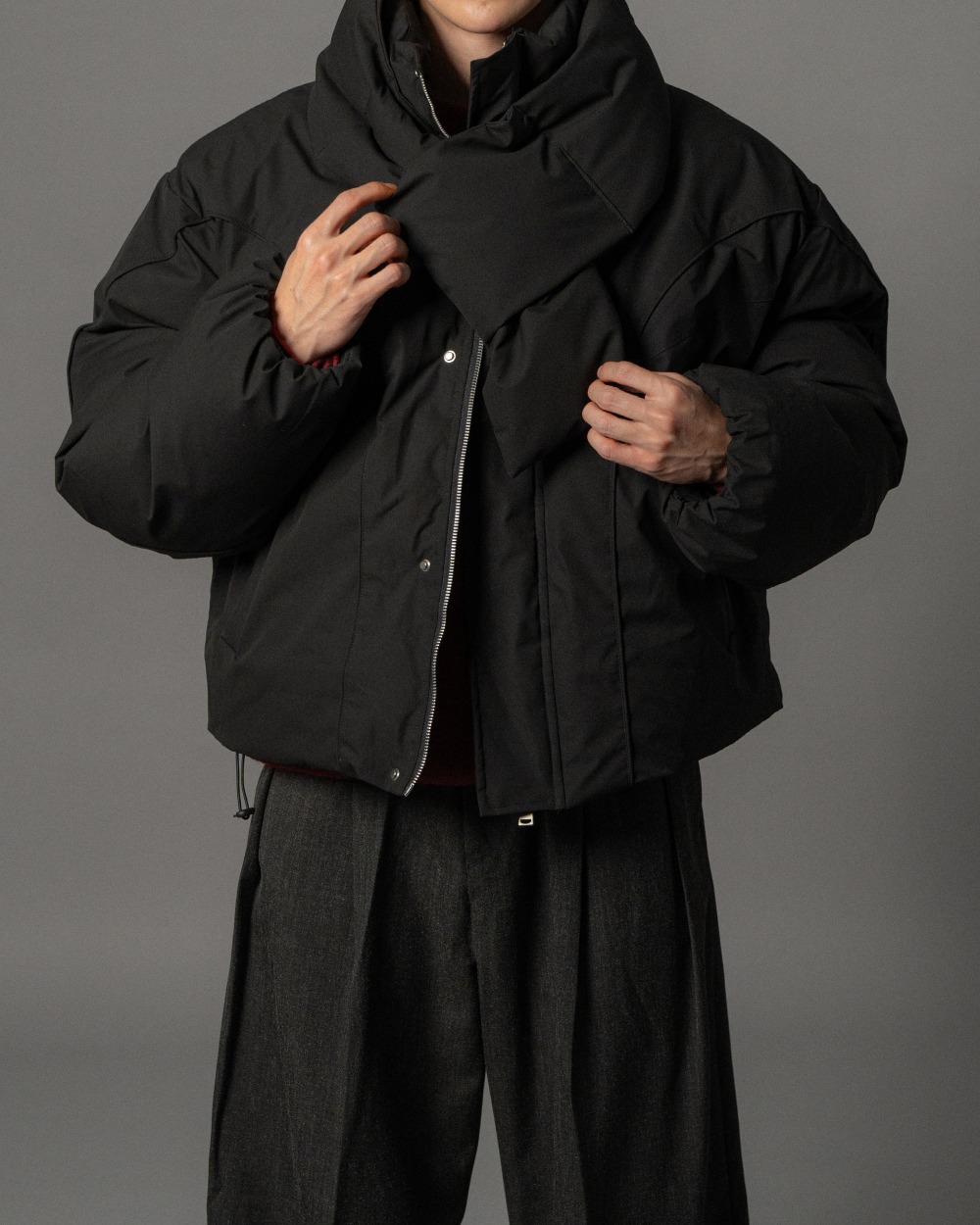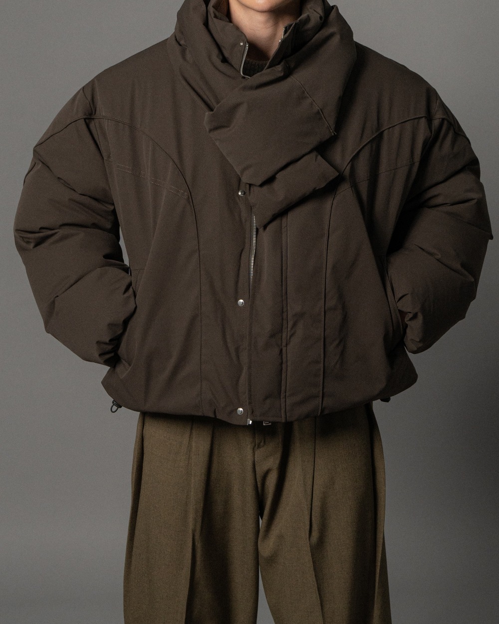 保暖襯墊弧線剪裁短版立領外套(附圍巾) 2色 1222