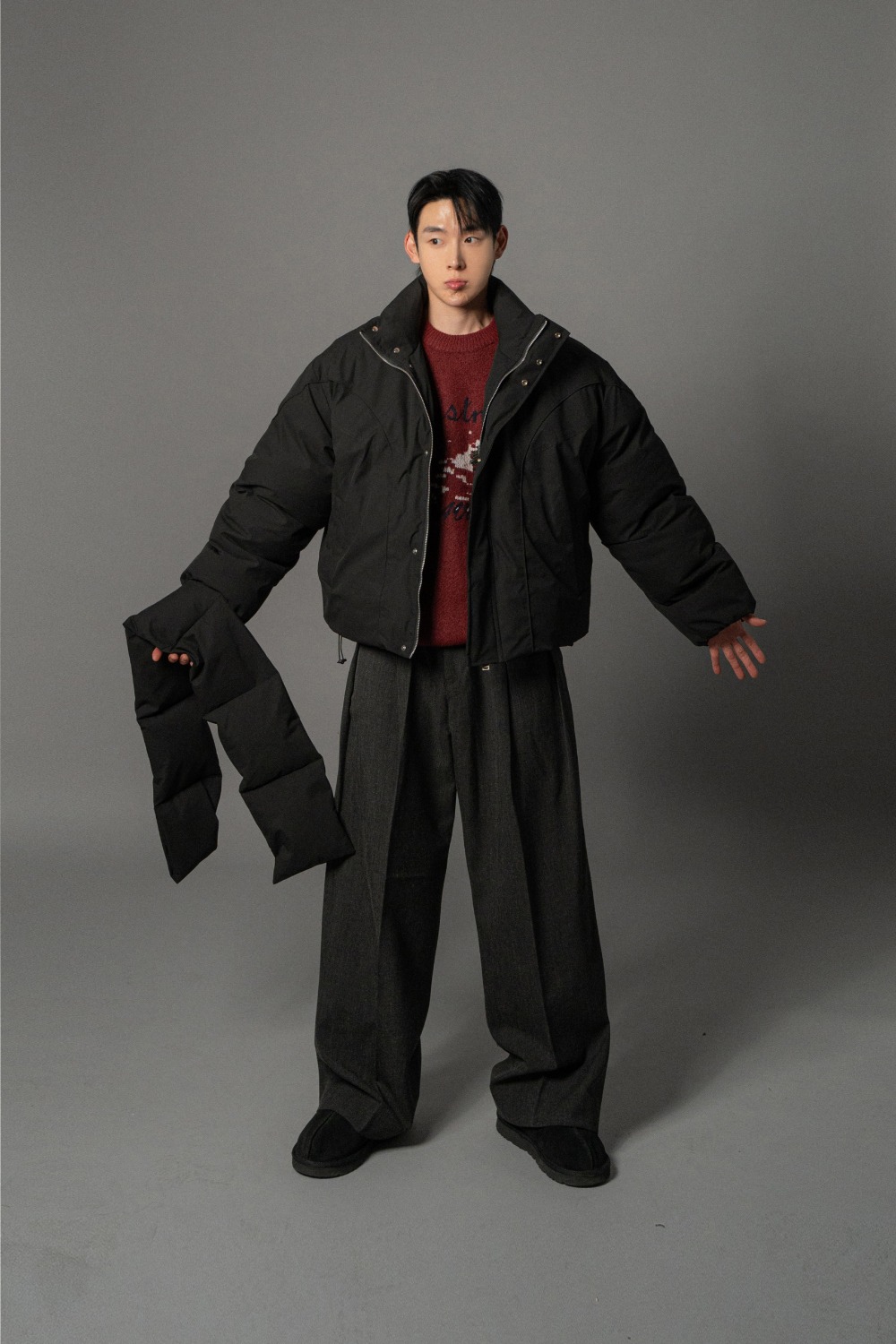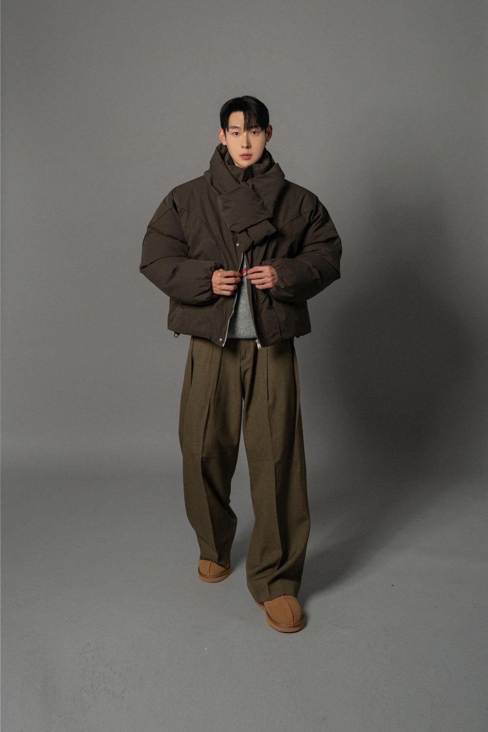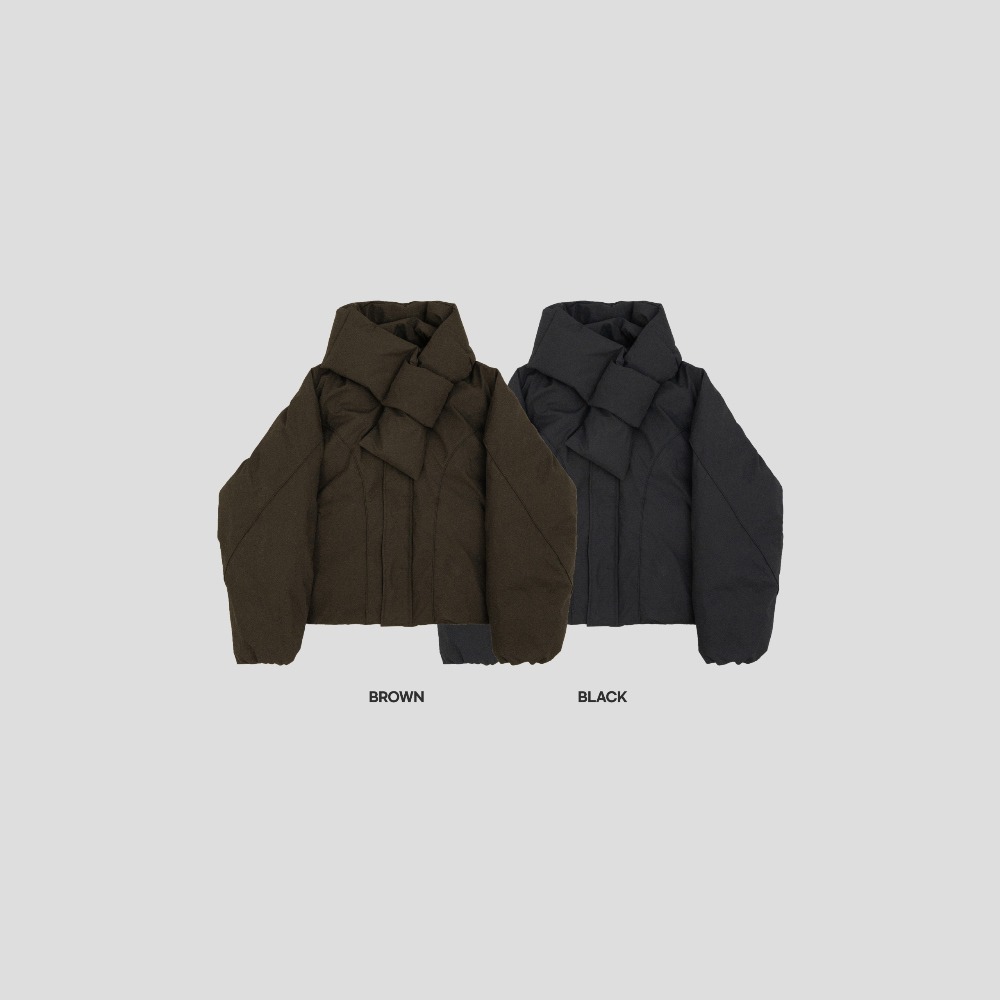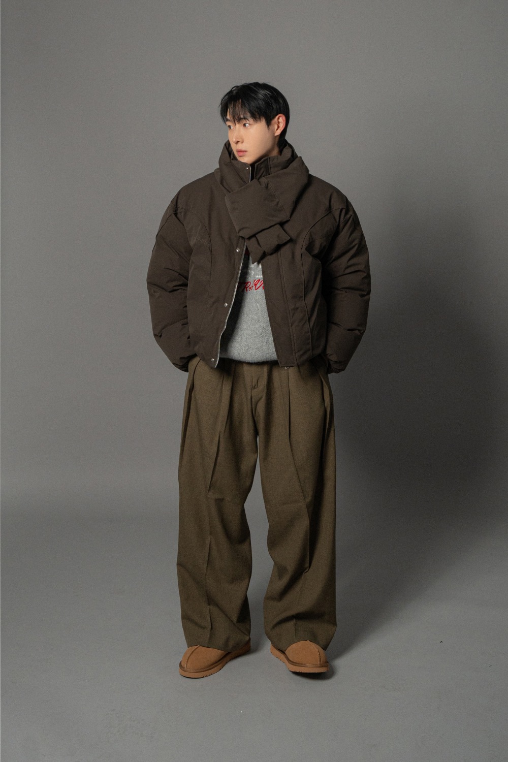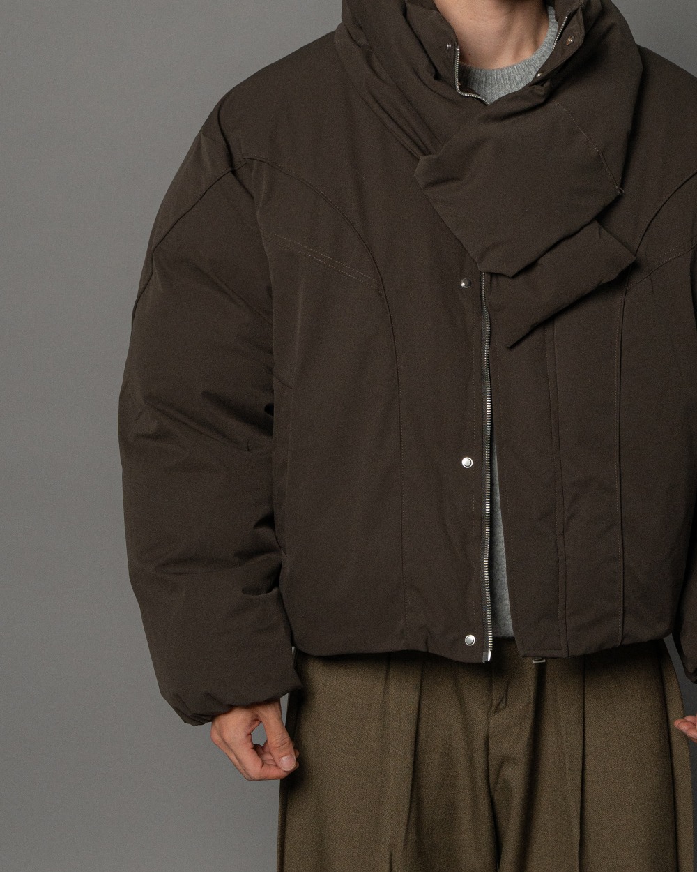 保暖襯墊弧線剪裁短版立領外套(附圍巾) 2色 1222