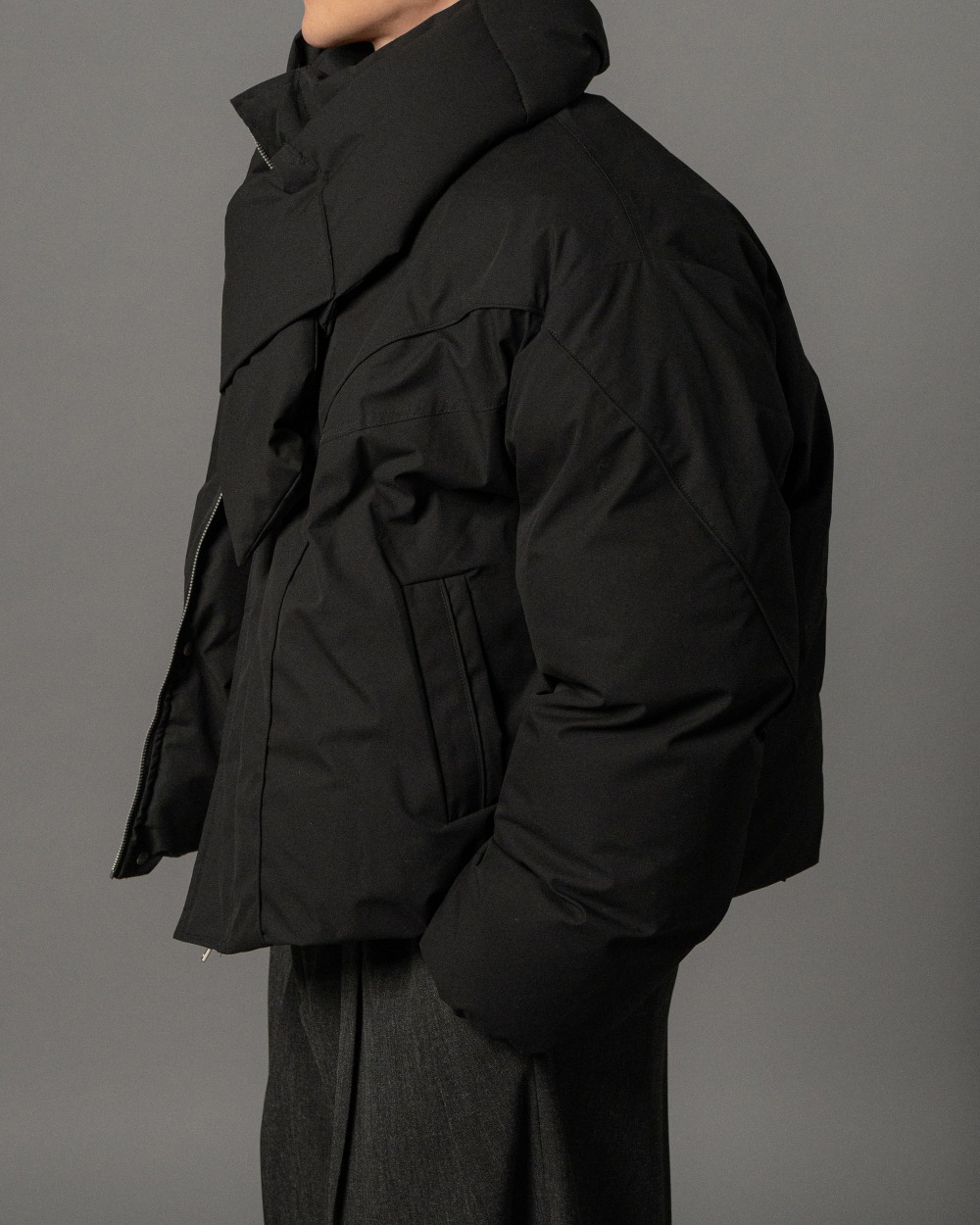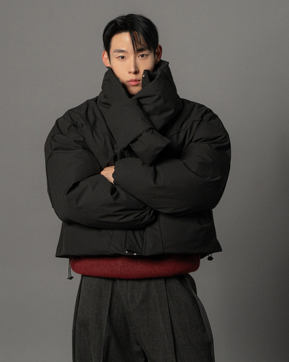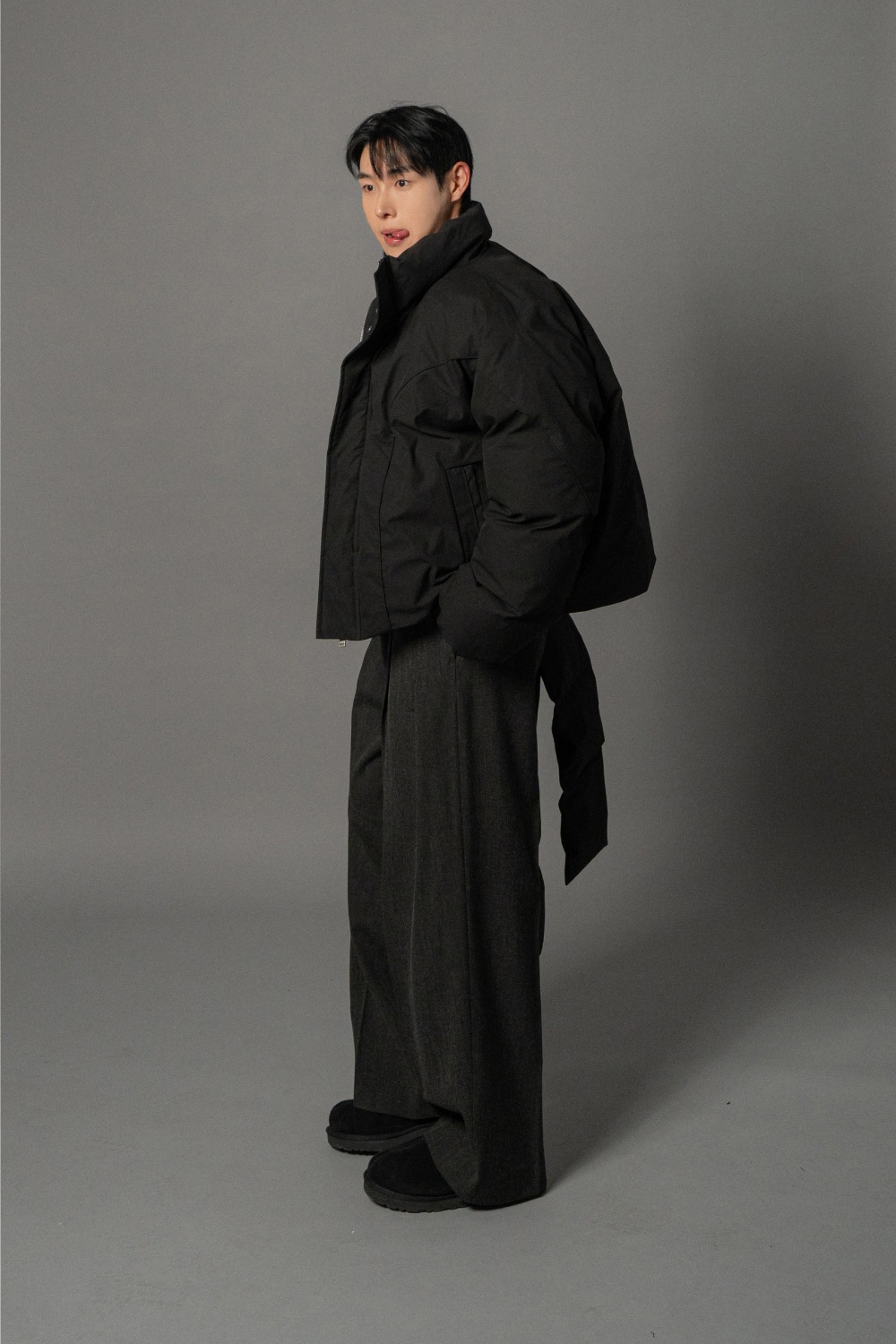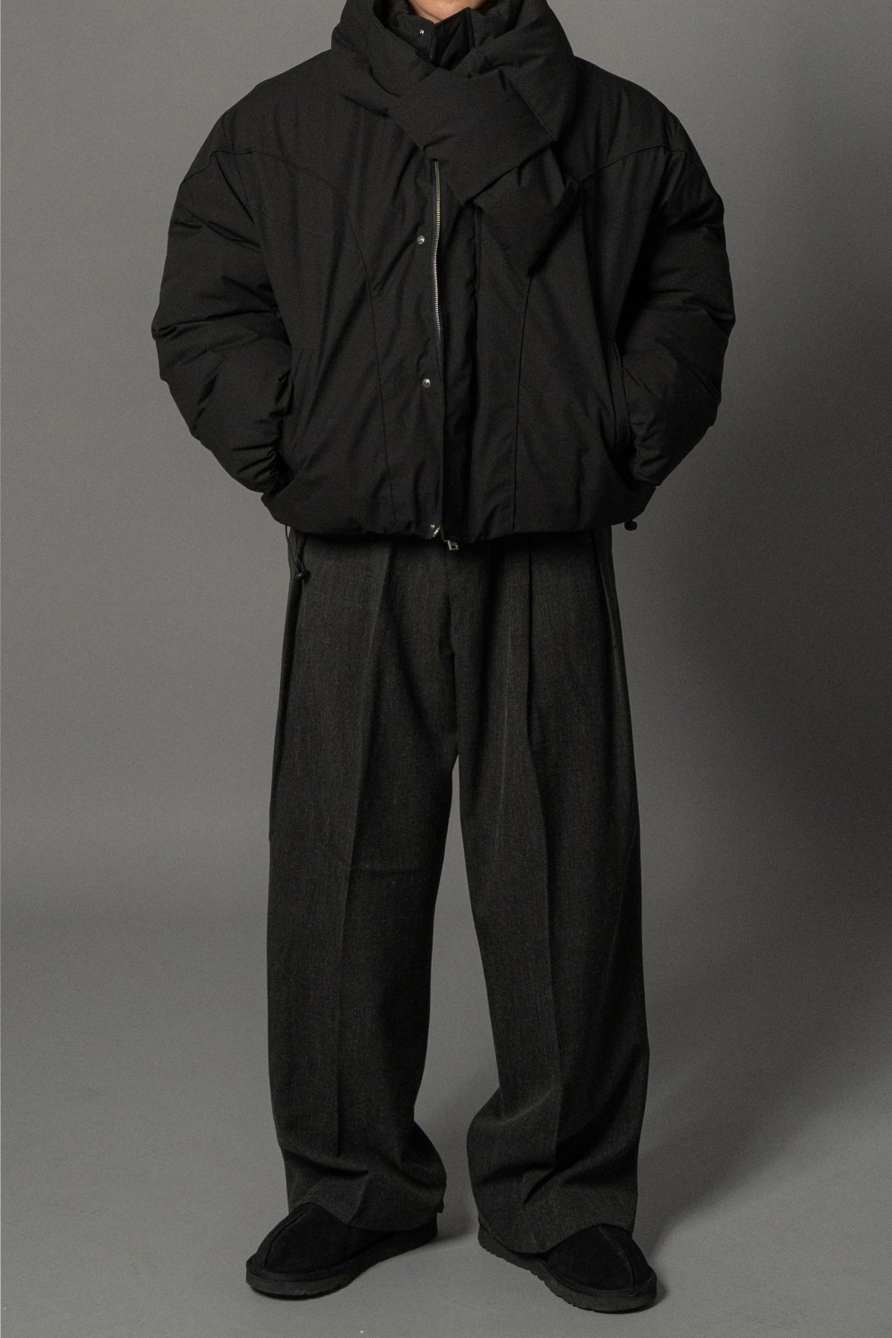 保暖襯墊弧線剪裁短版立領外套(附圍巾) 2色 1222