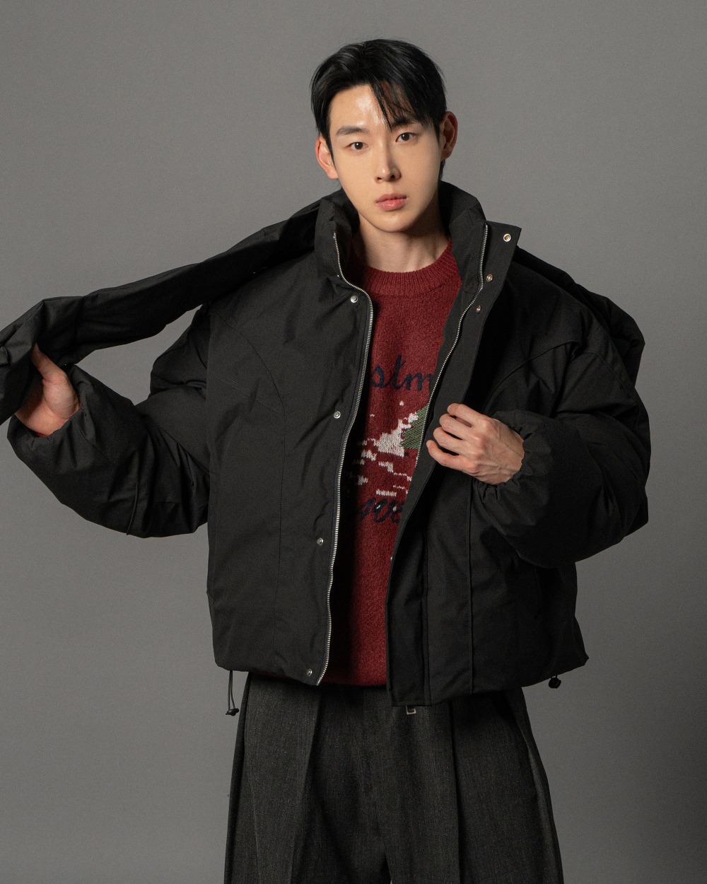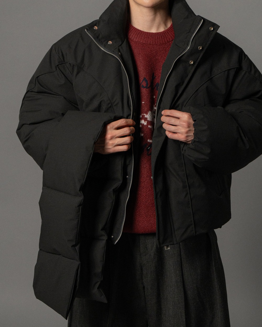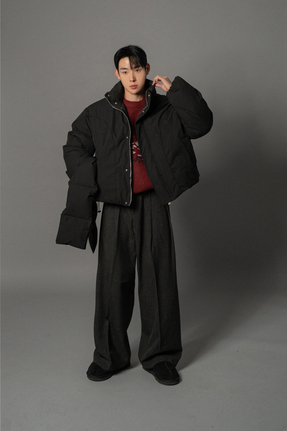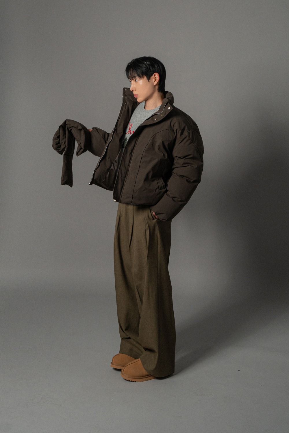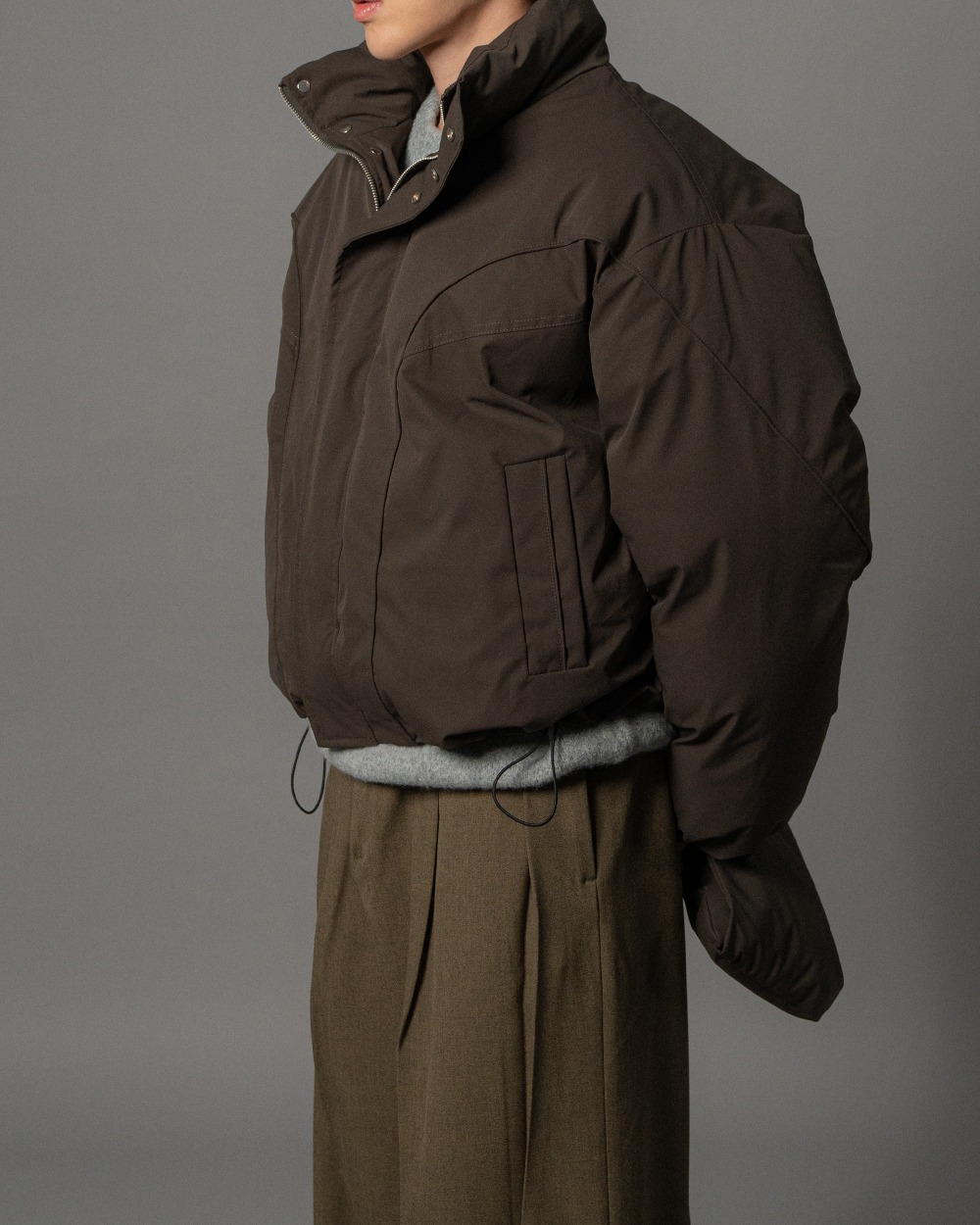 保暖襯墊弧線剪裁短版立領外套(附圍巾) 2色 1222