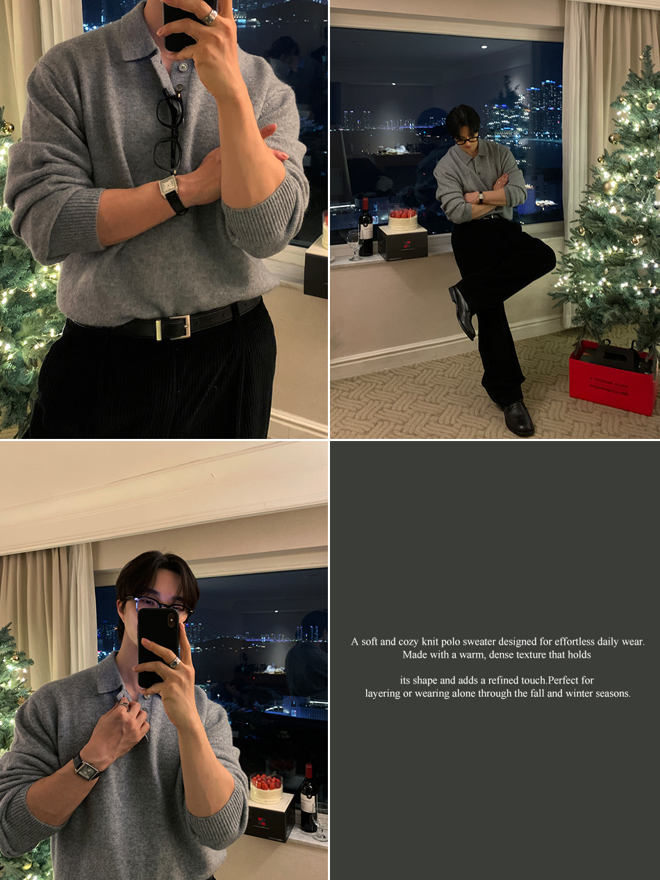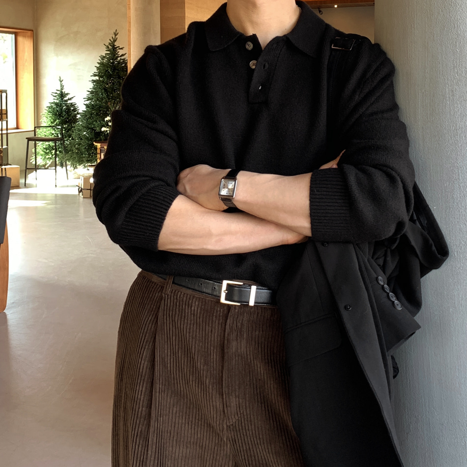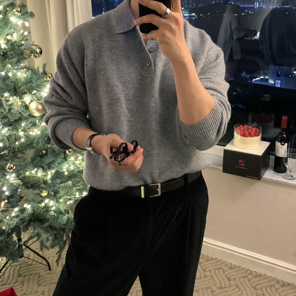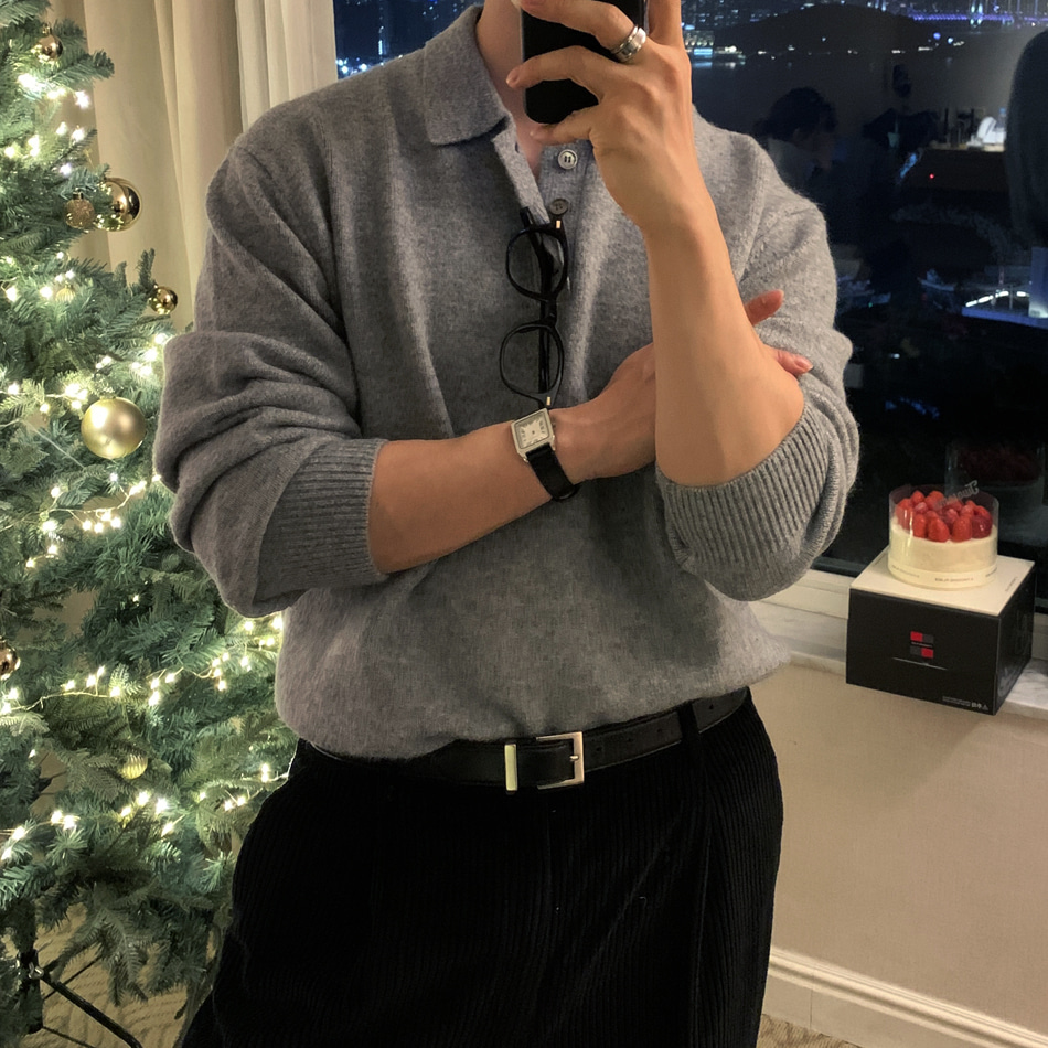 奢華堅挺羊絨三粒扣長袖針織衫 9色 1124
