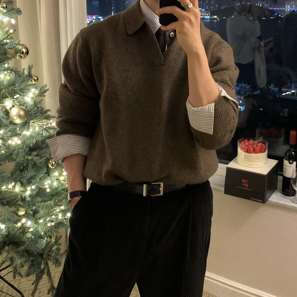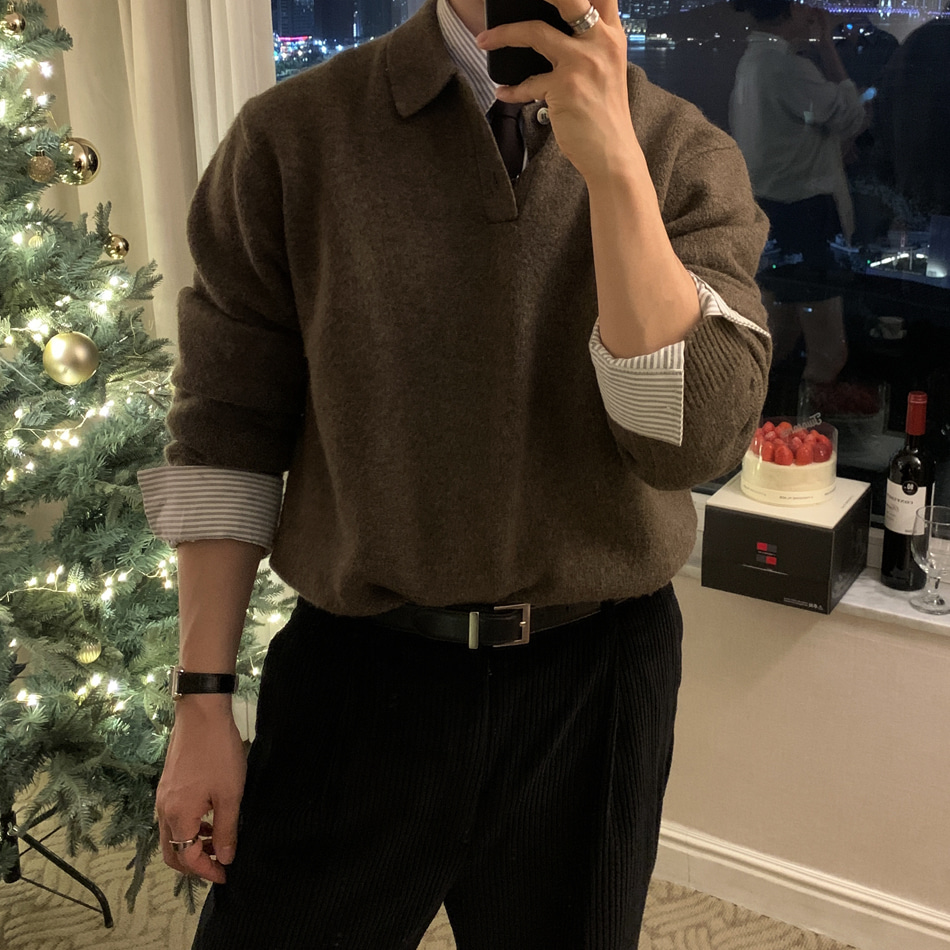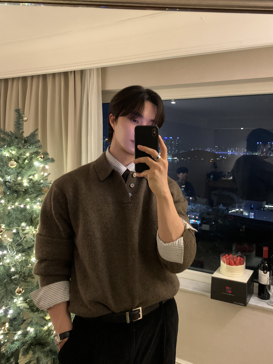 奢華堅挺羊絨三粒扣長袖針織衫 9色 1124