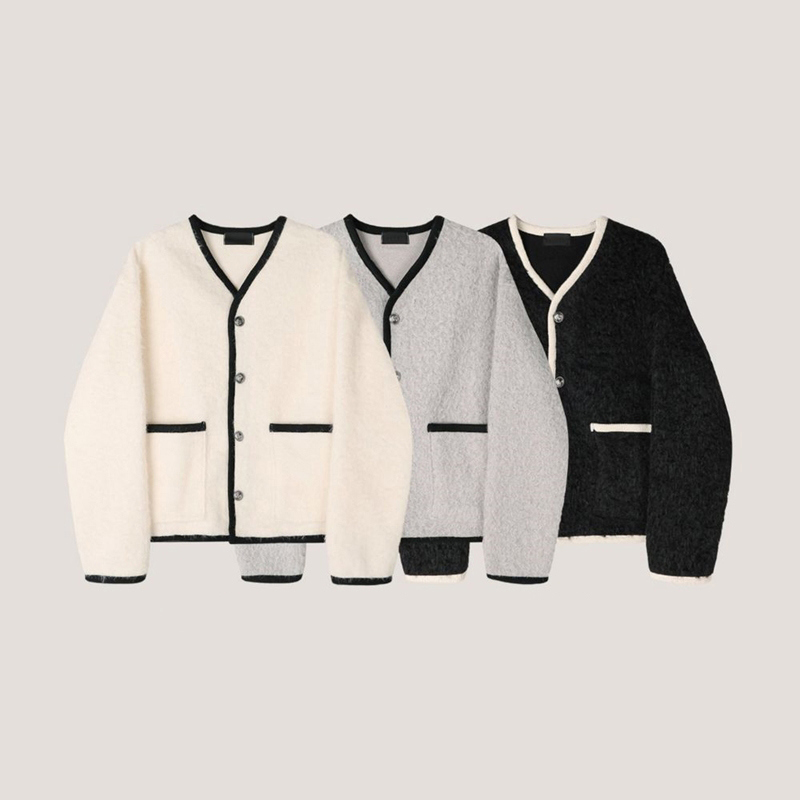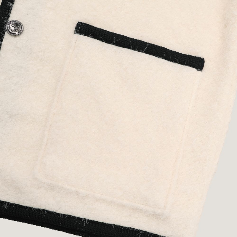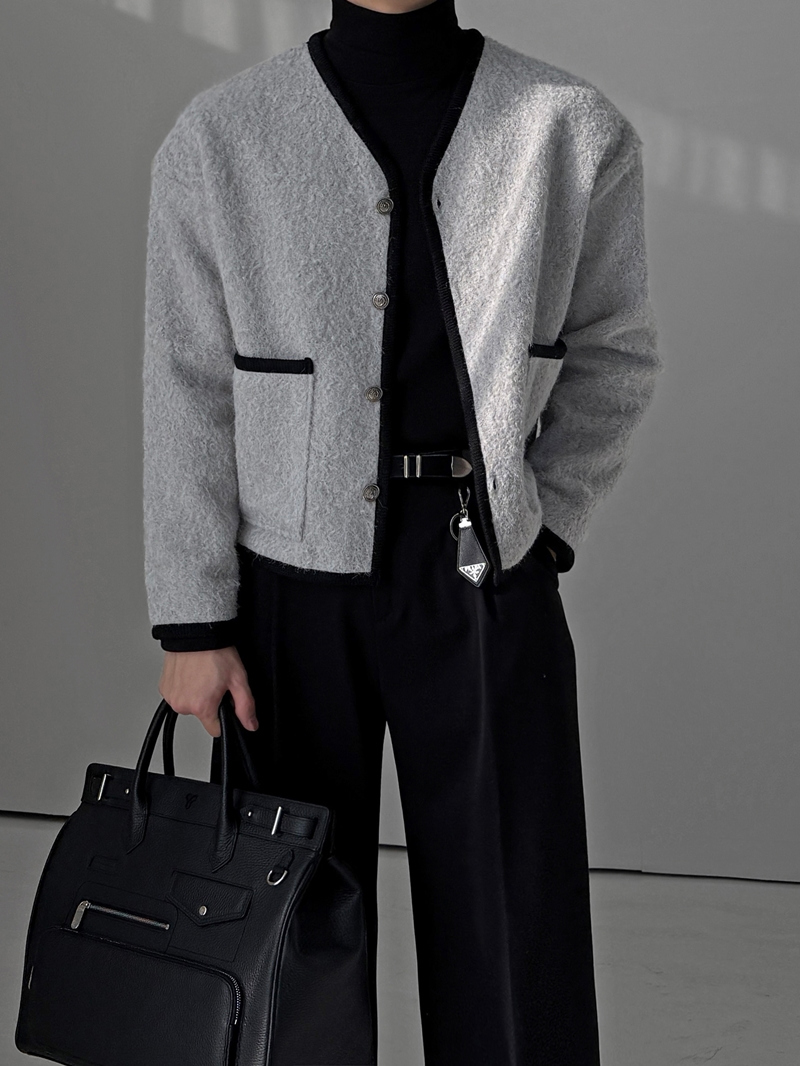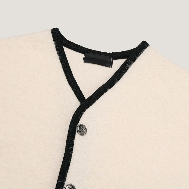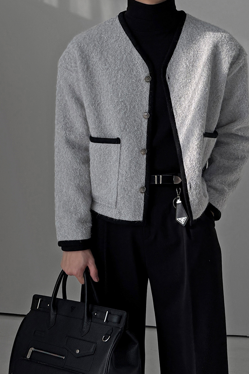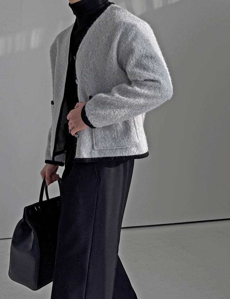 奢華毛呢撞色滾邊V領短版夾克外套 3色 1229