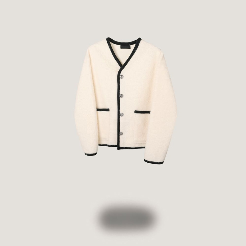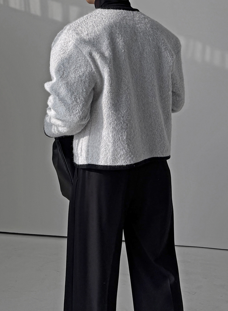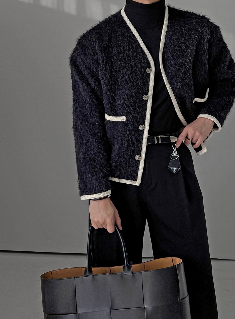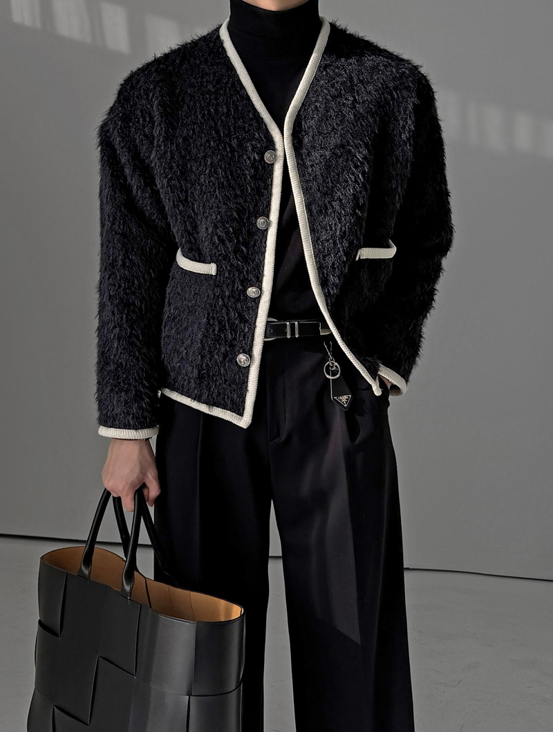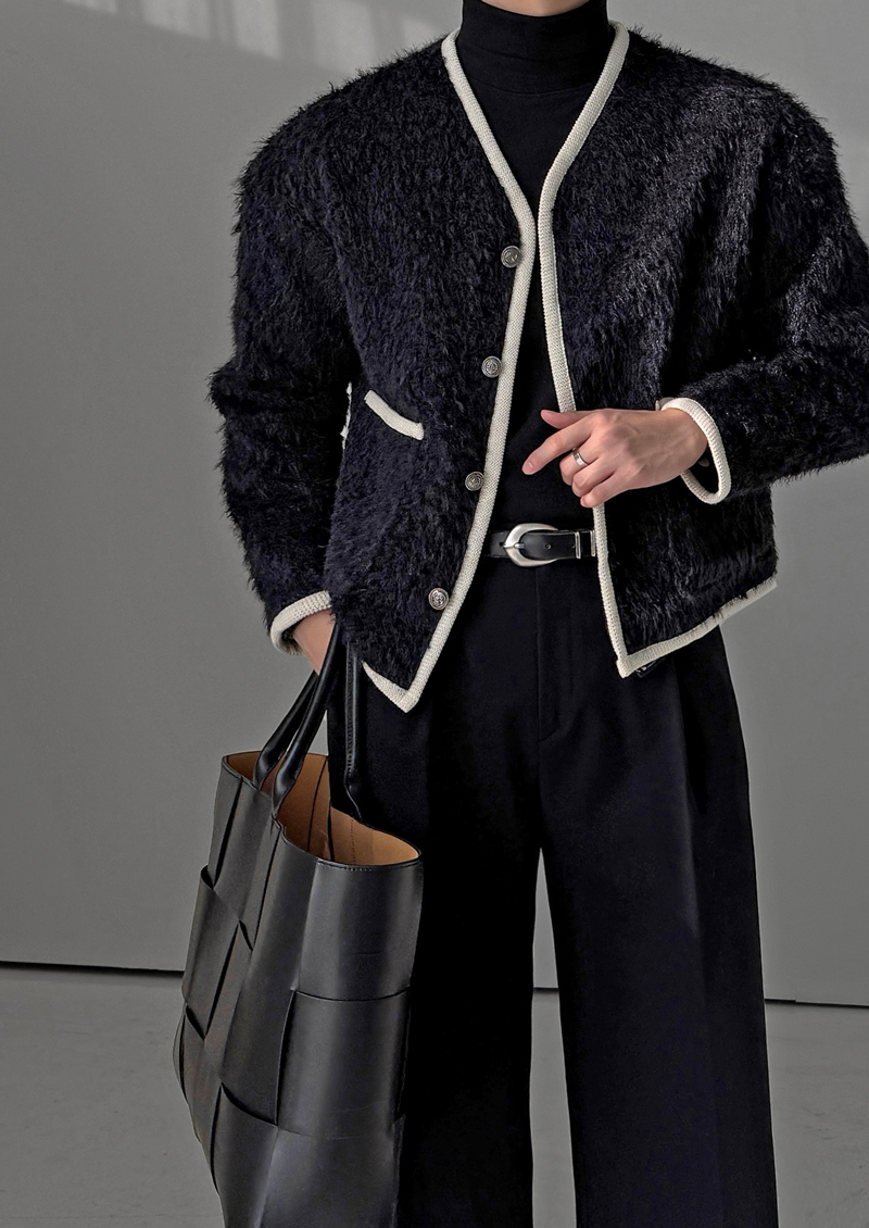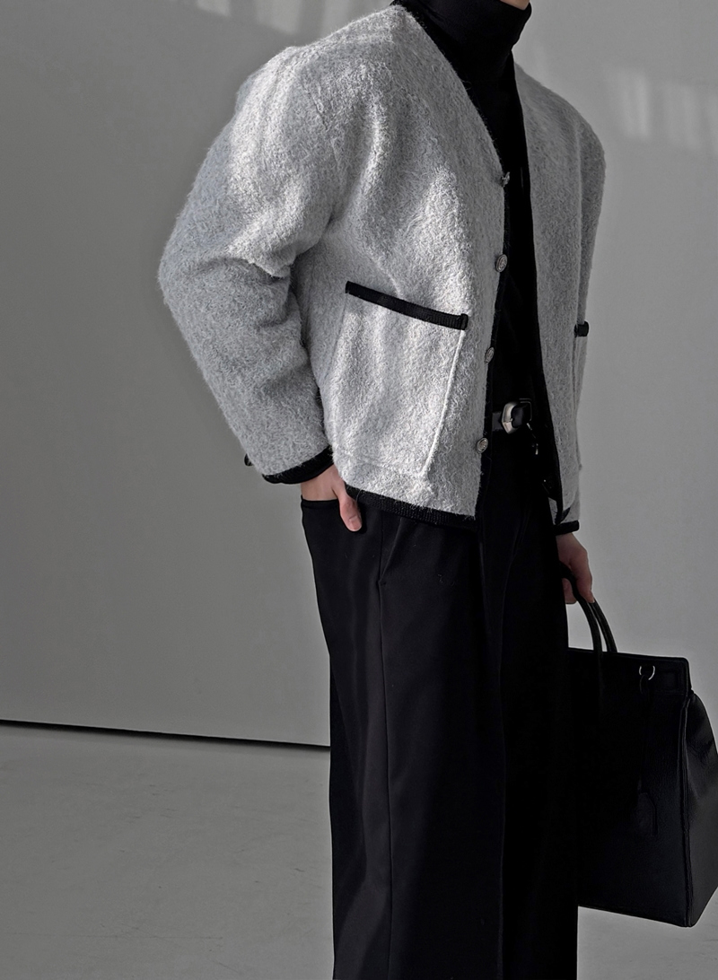 奢華毛呢撞色滾邊V領短版夾克外套 3色 1229