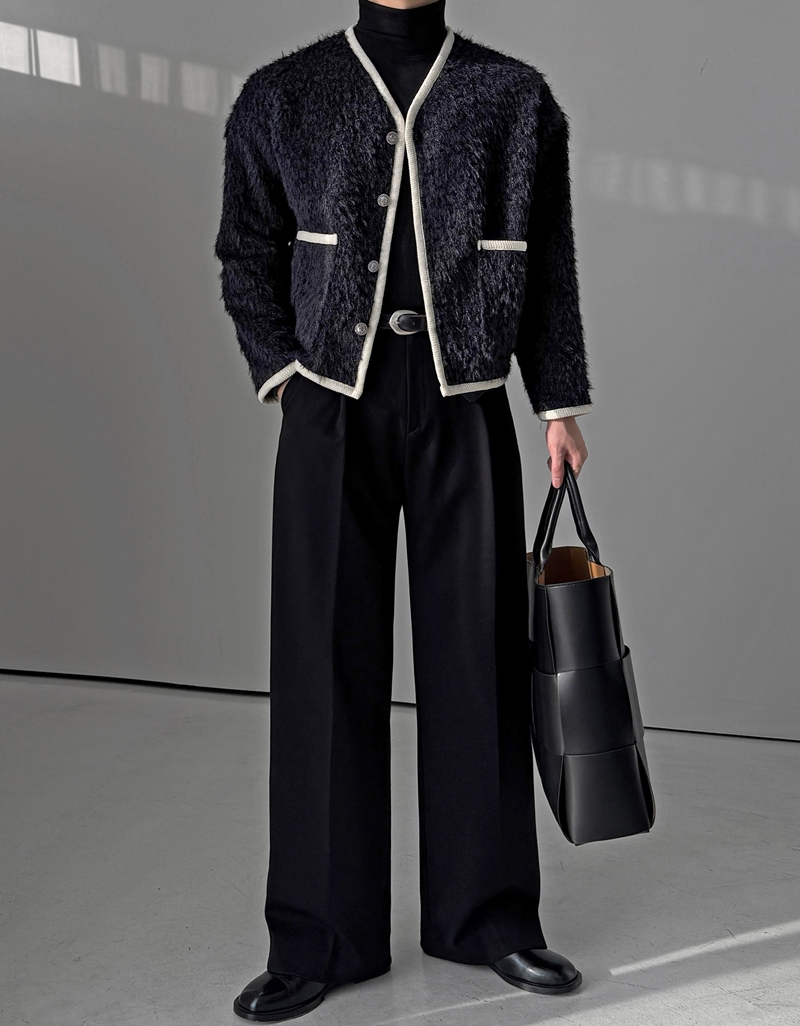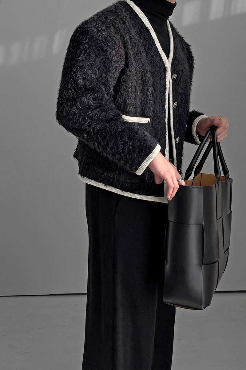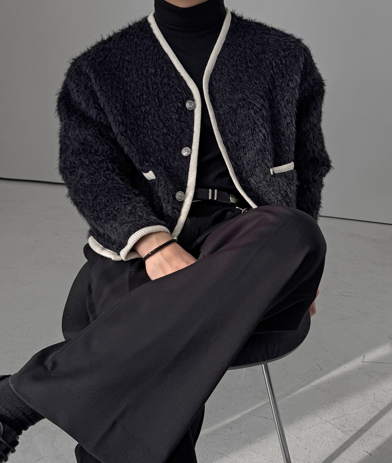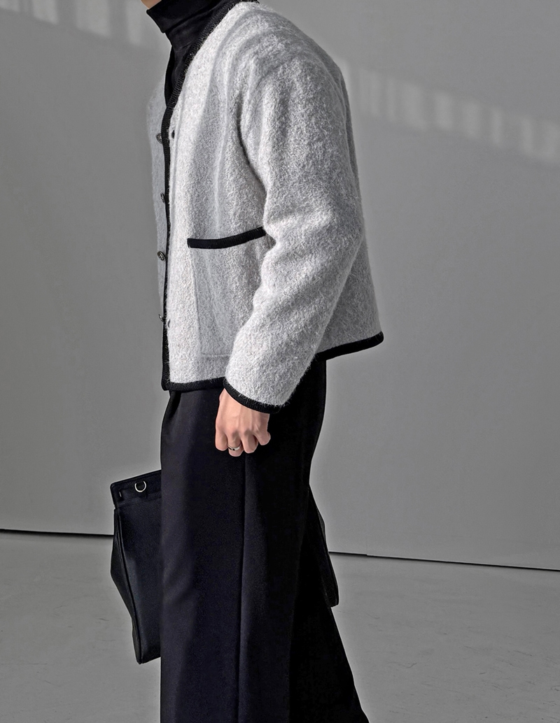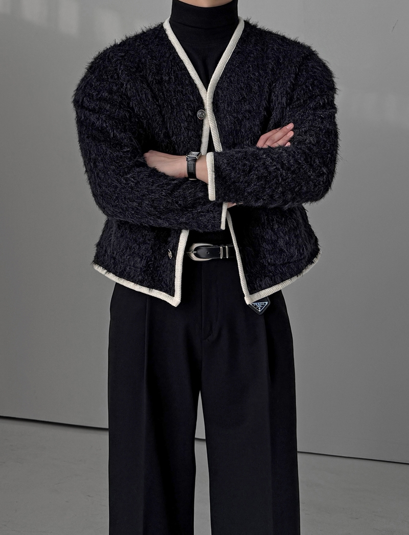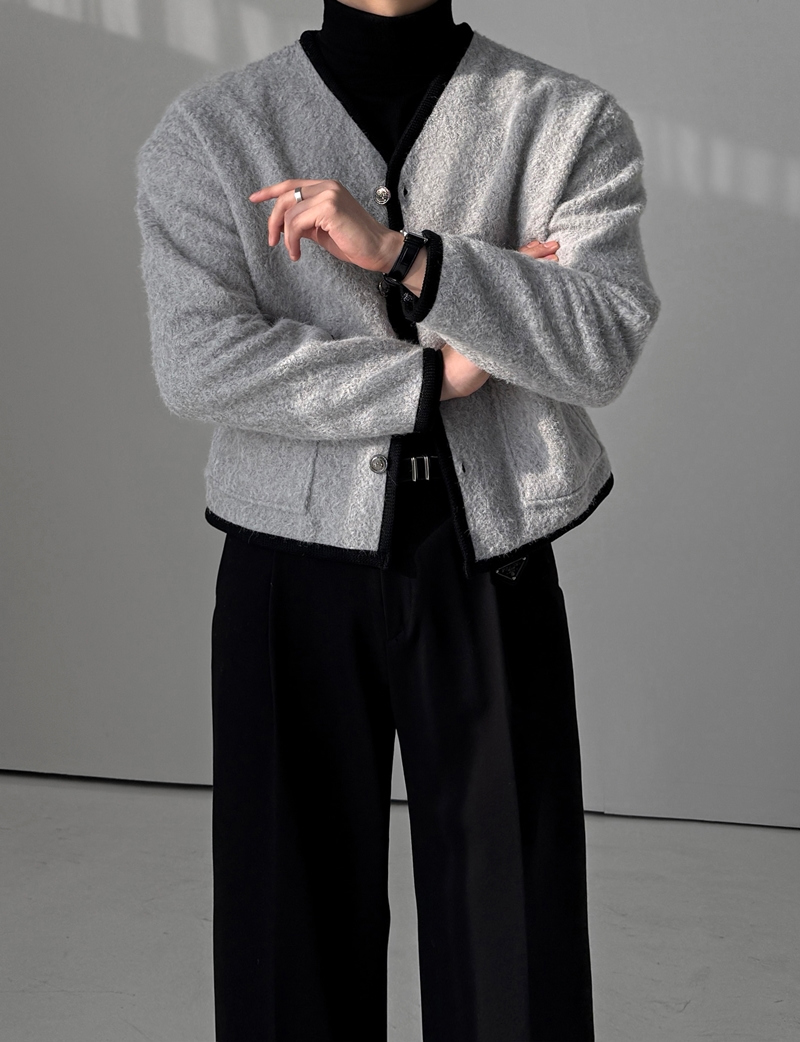 奢華毛呢撞色滾邊V領短版夾克外套 3色 1229