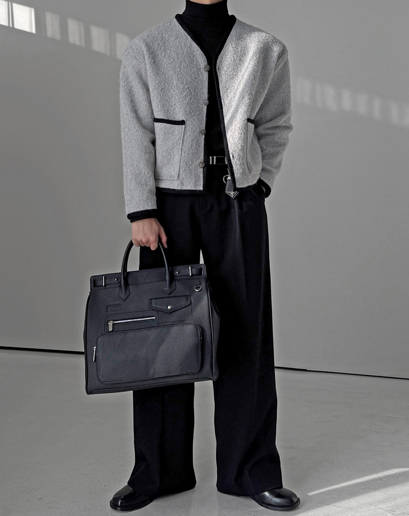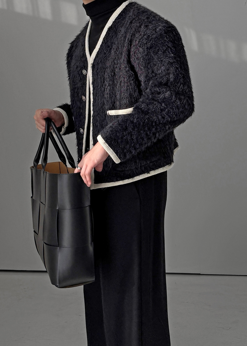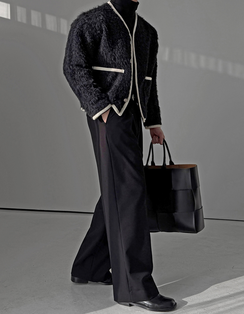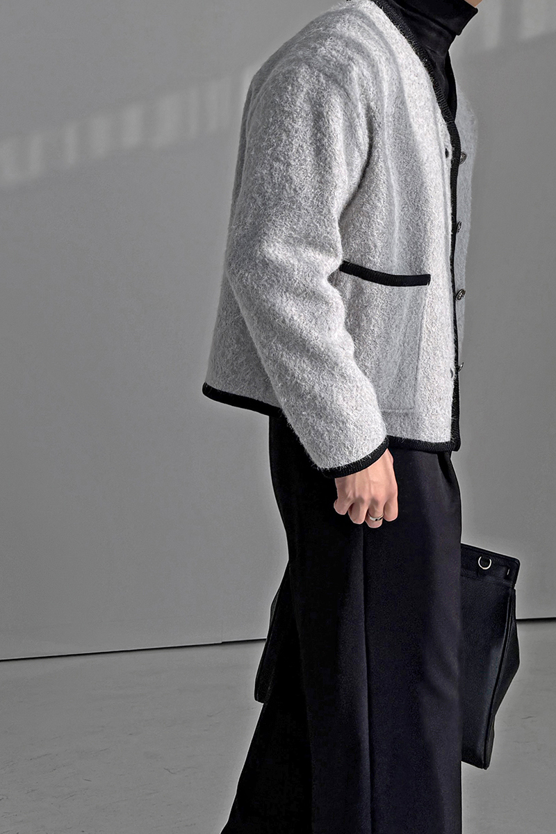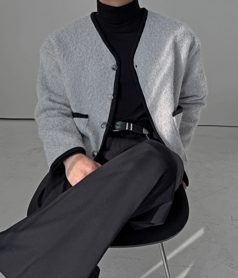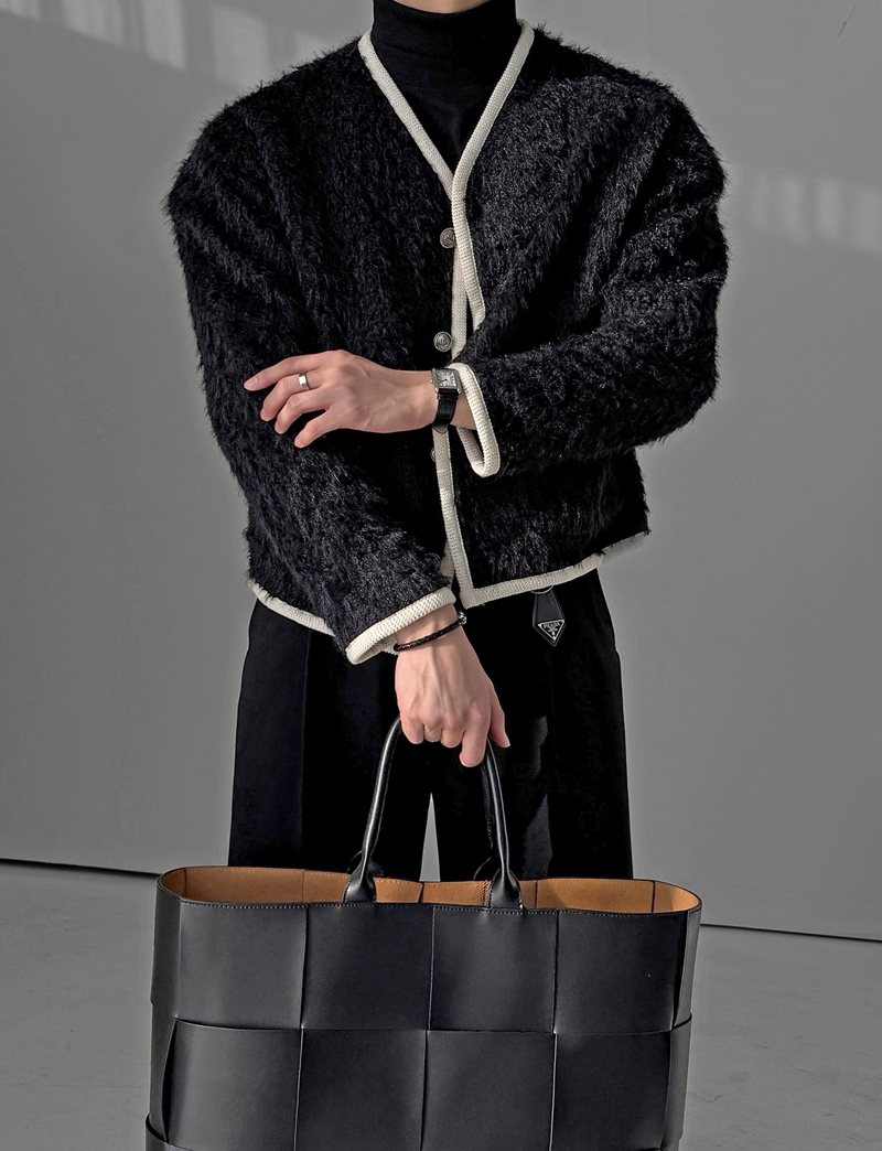 奢華毛呢撞色滾邊V領短版夾克外套 3色 1229
