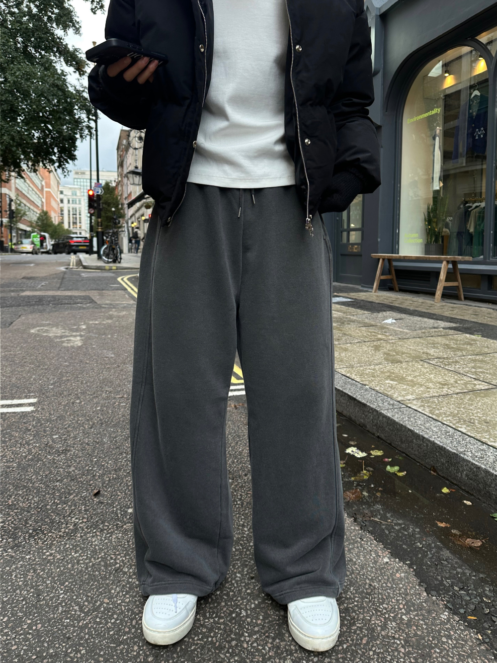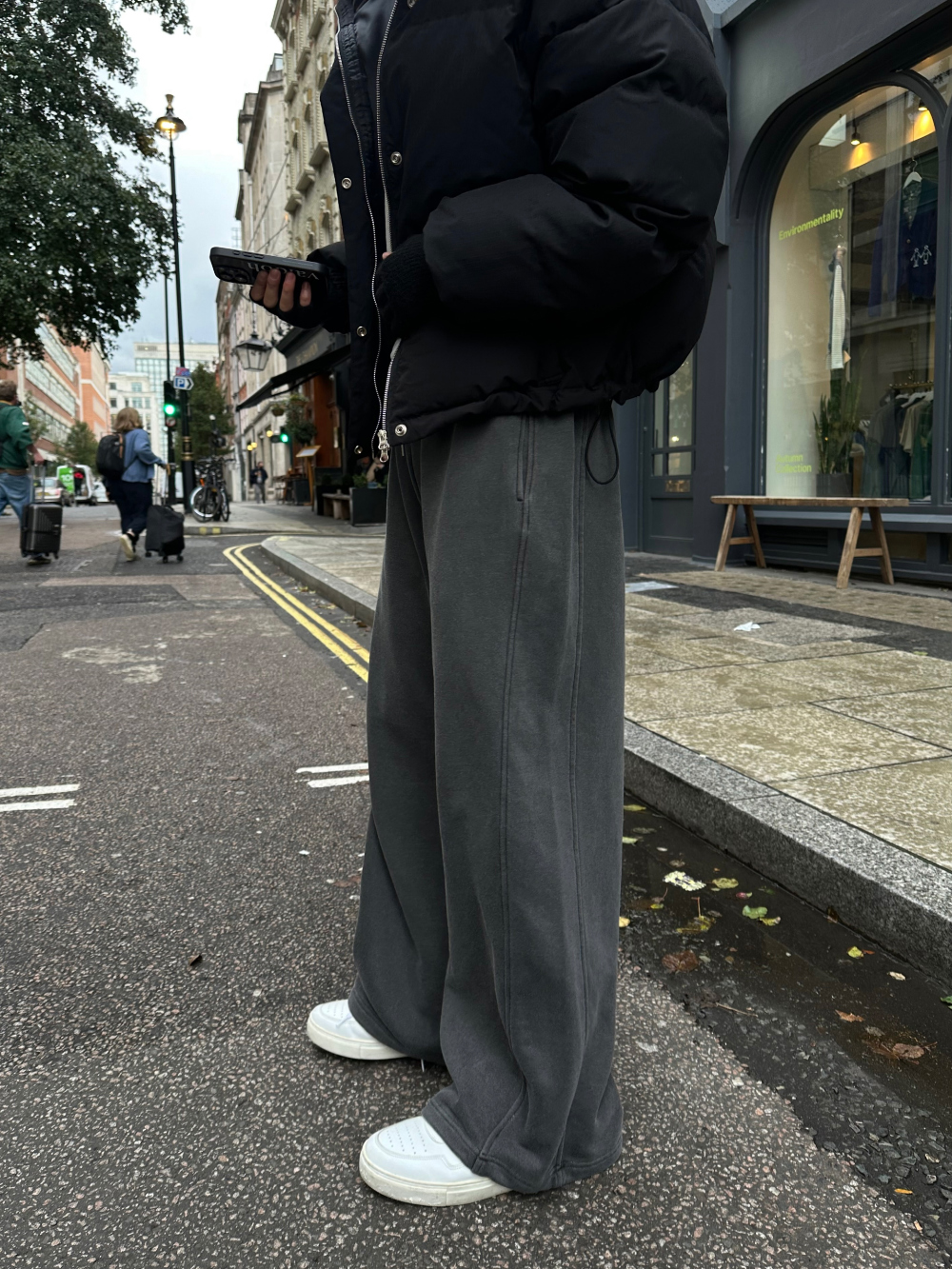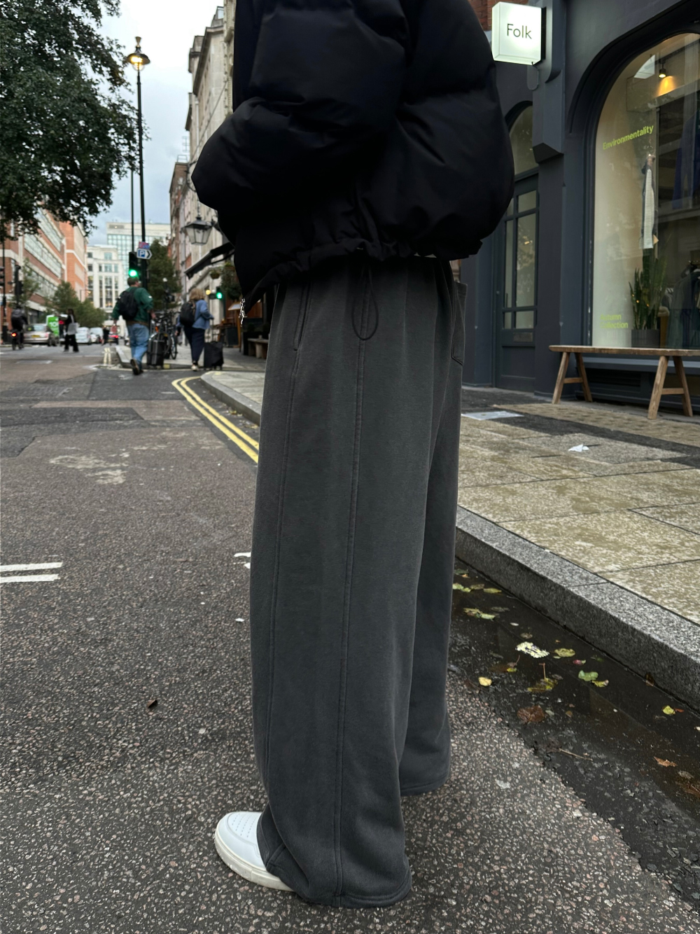 厚實復古水洗純棉側剪裁休閒寬褲 3色 1124