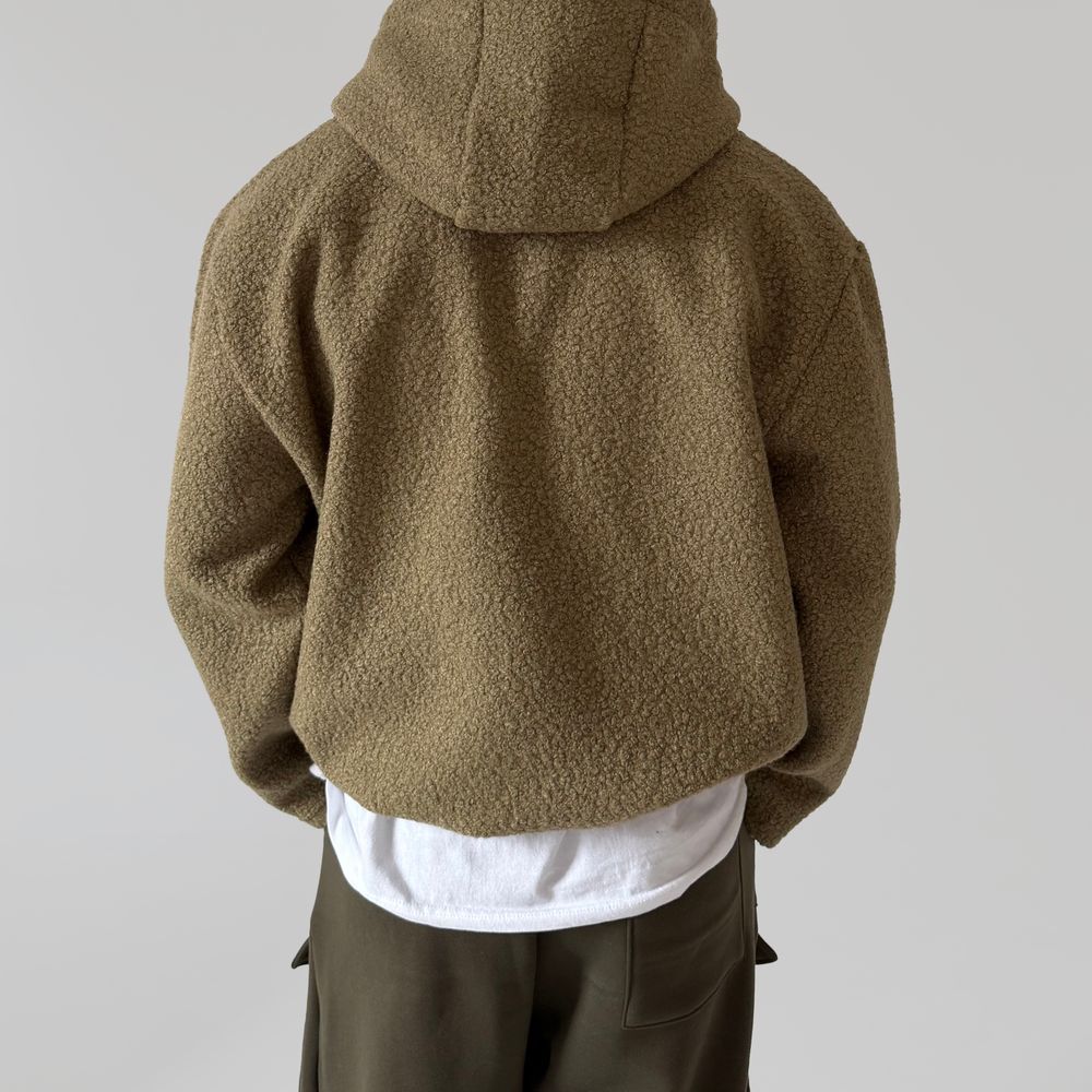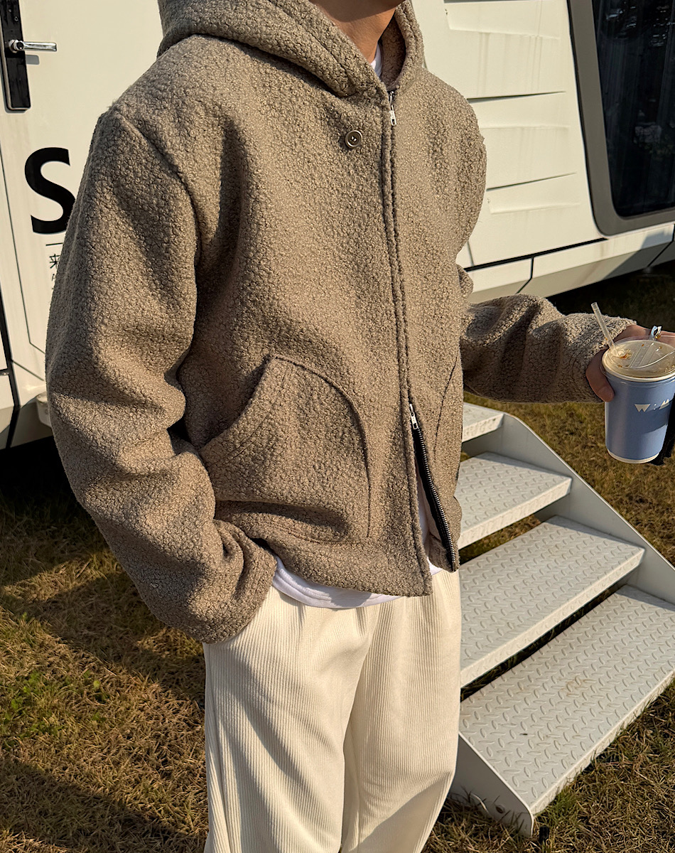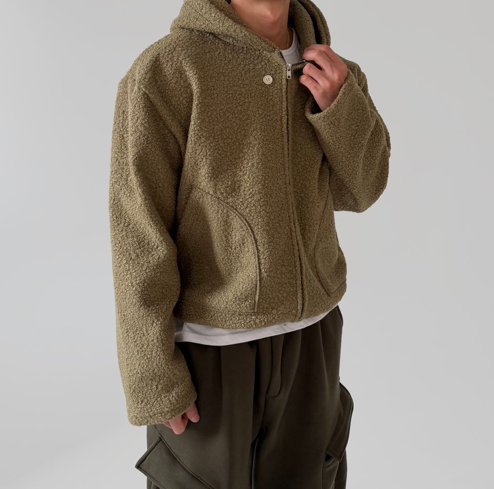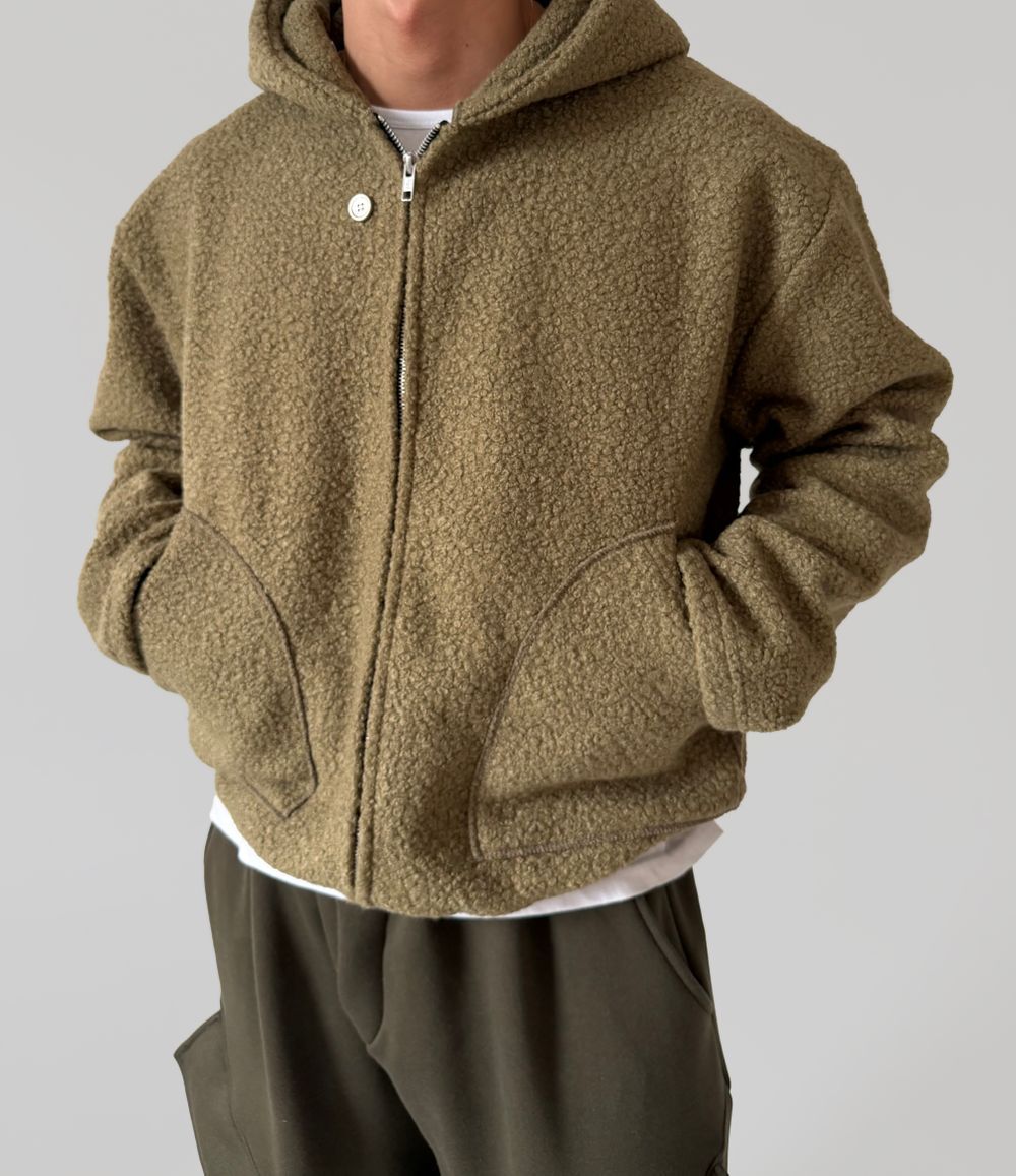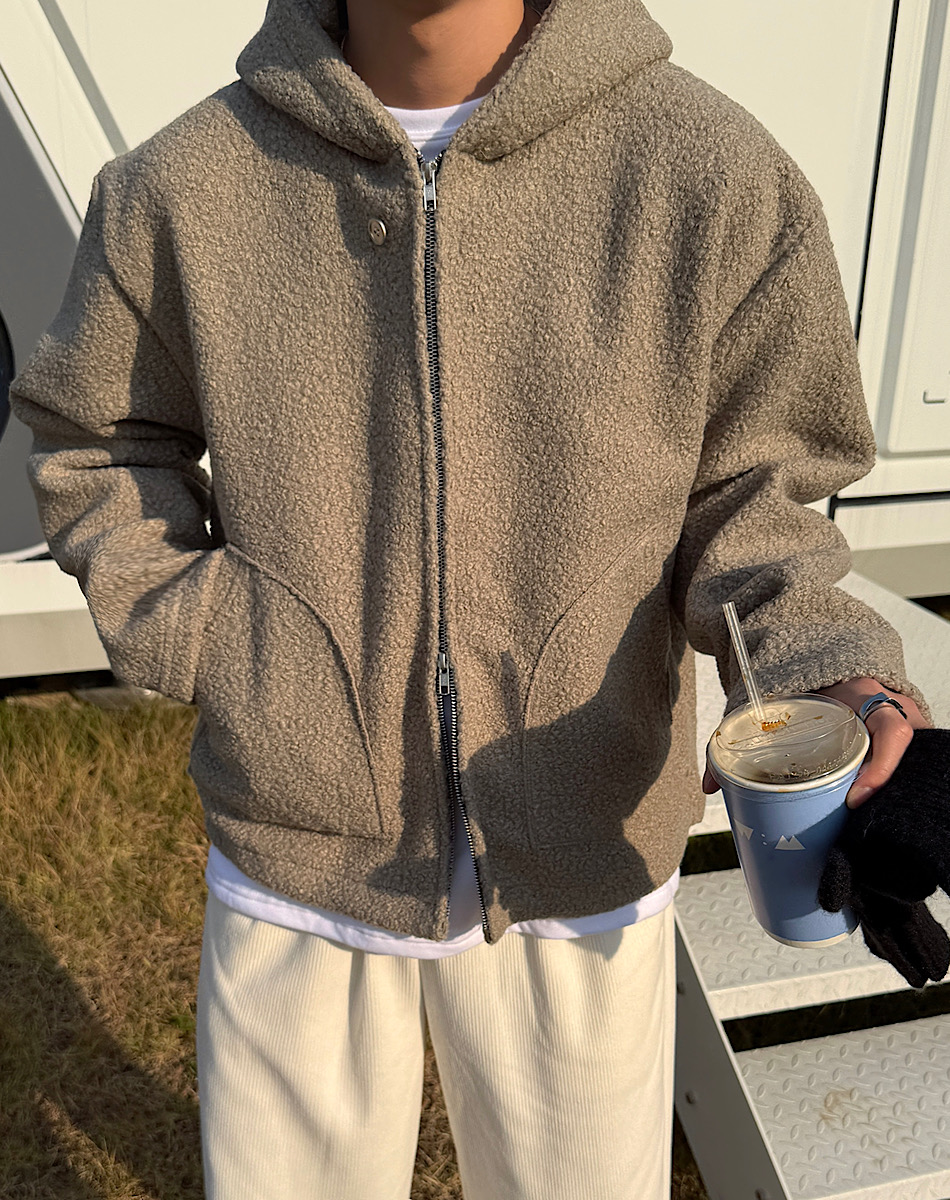 簡約羊毛圈紗口袋中短版連帽外套 3色 1215