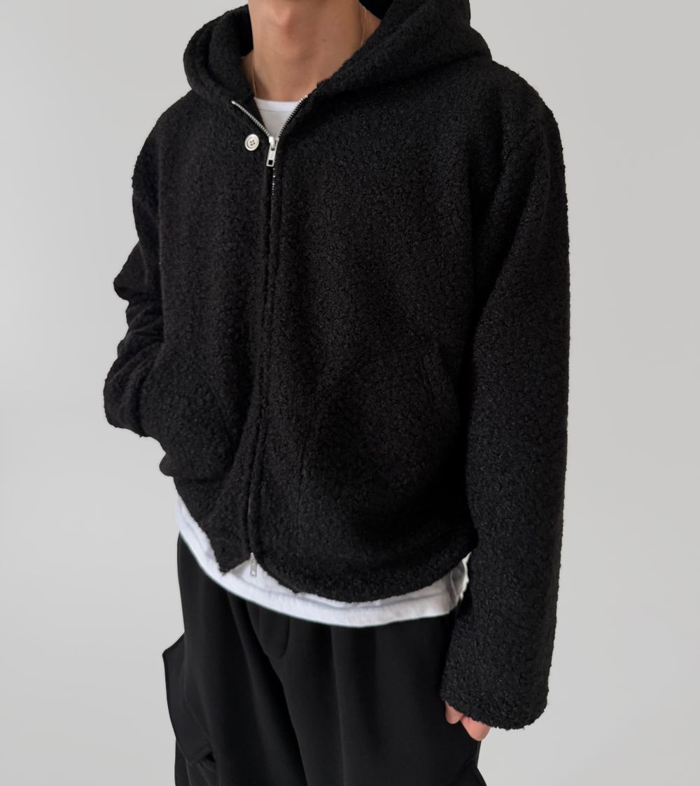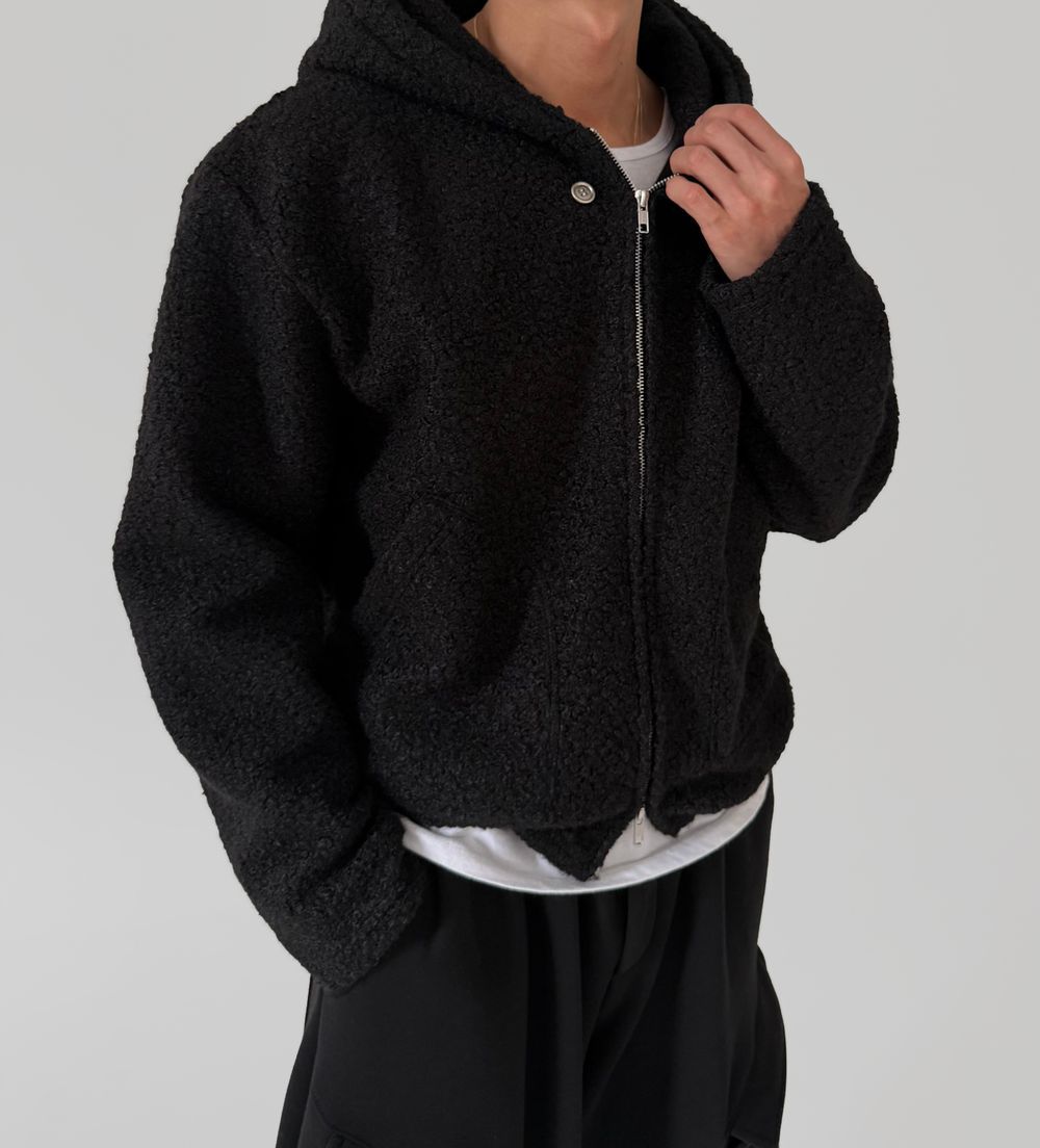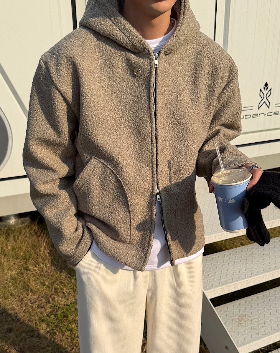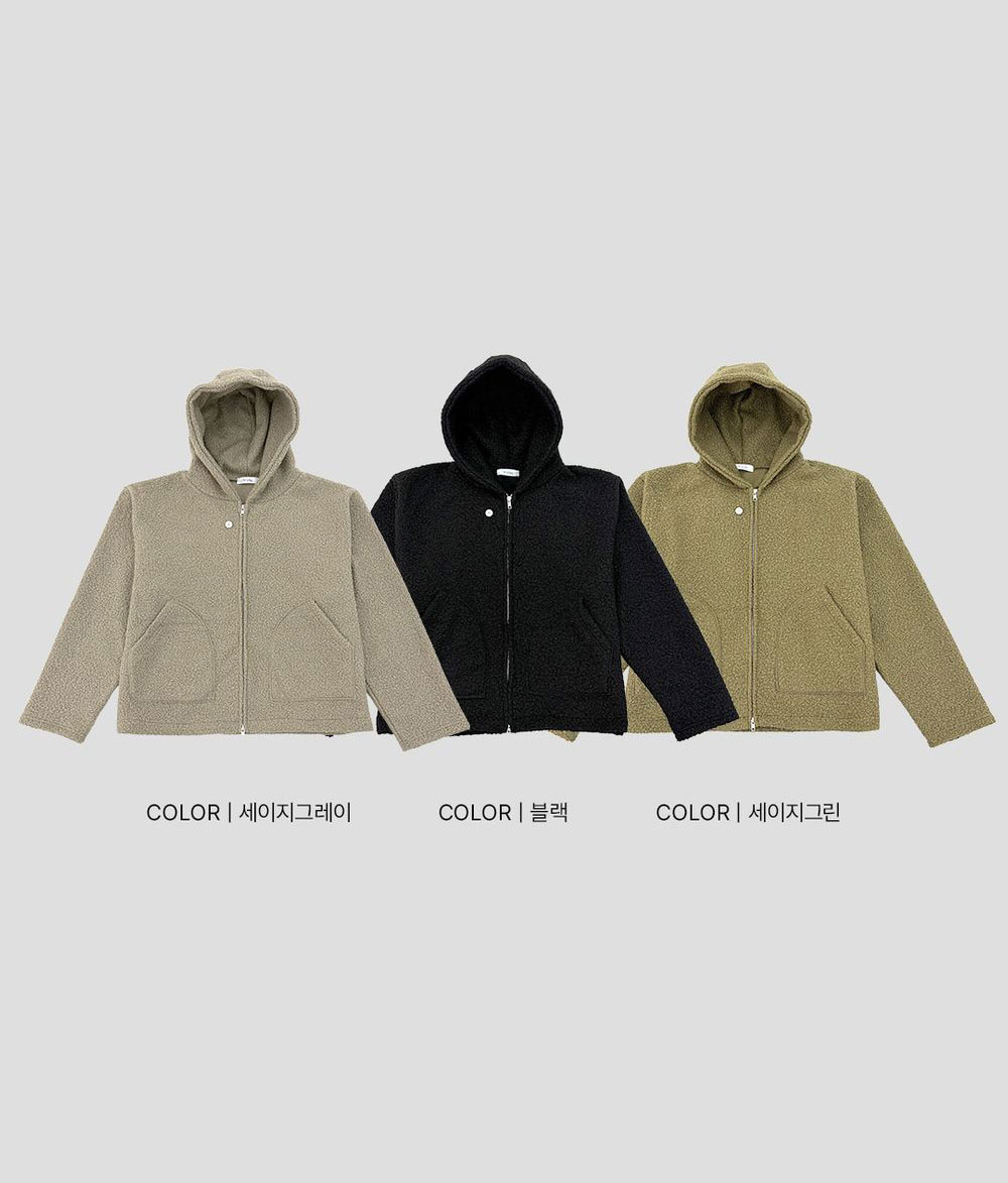簡約羊毛圈紗口袋中短版連帽外套 3色 1215