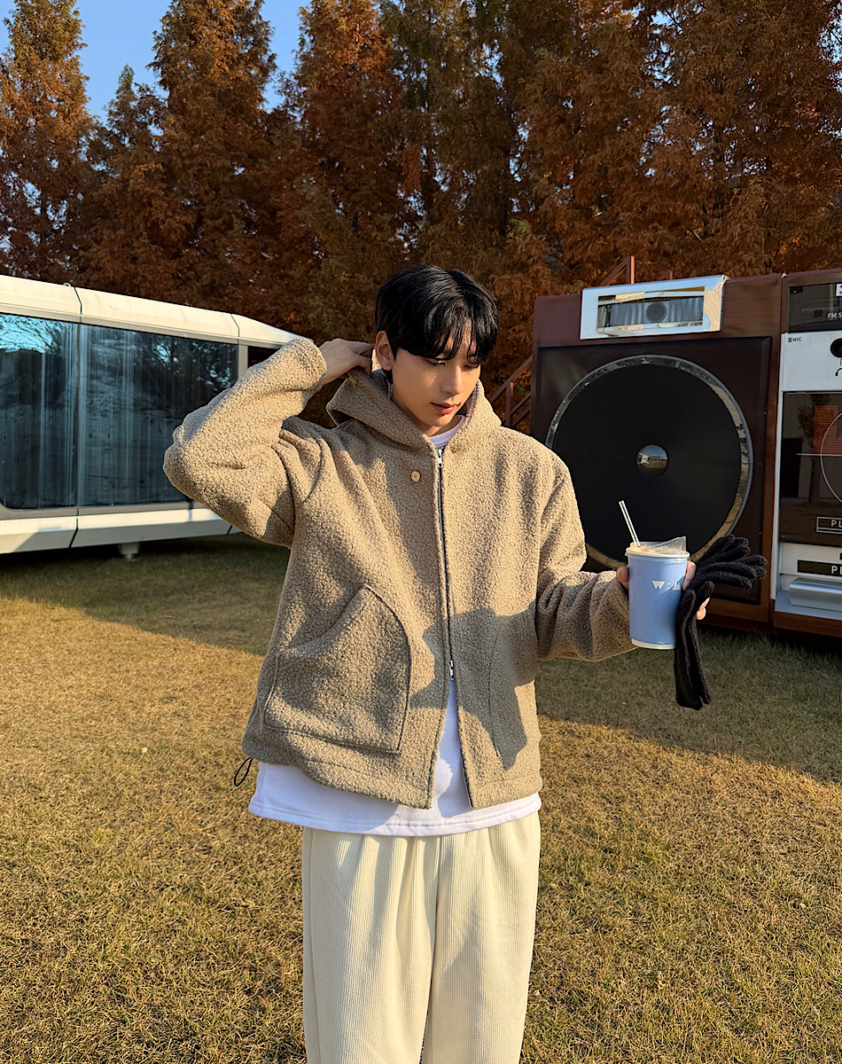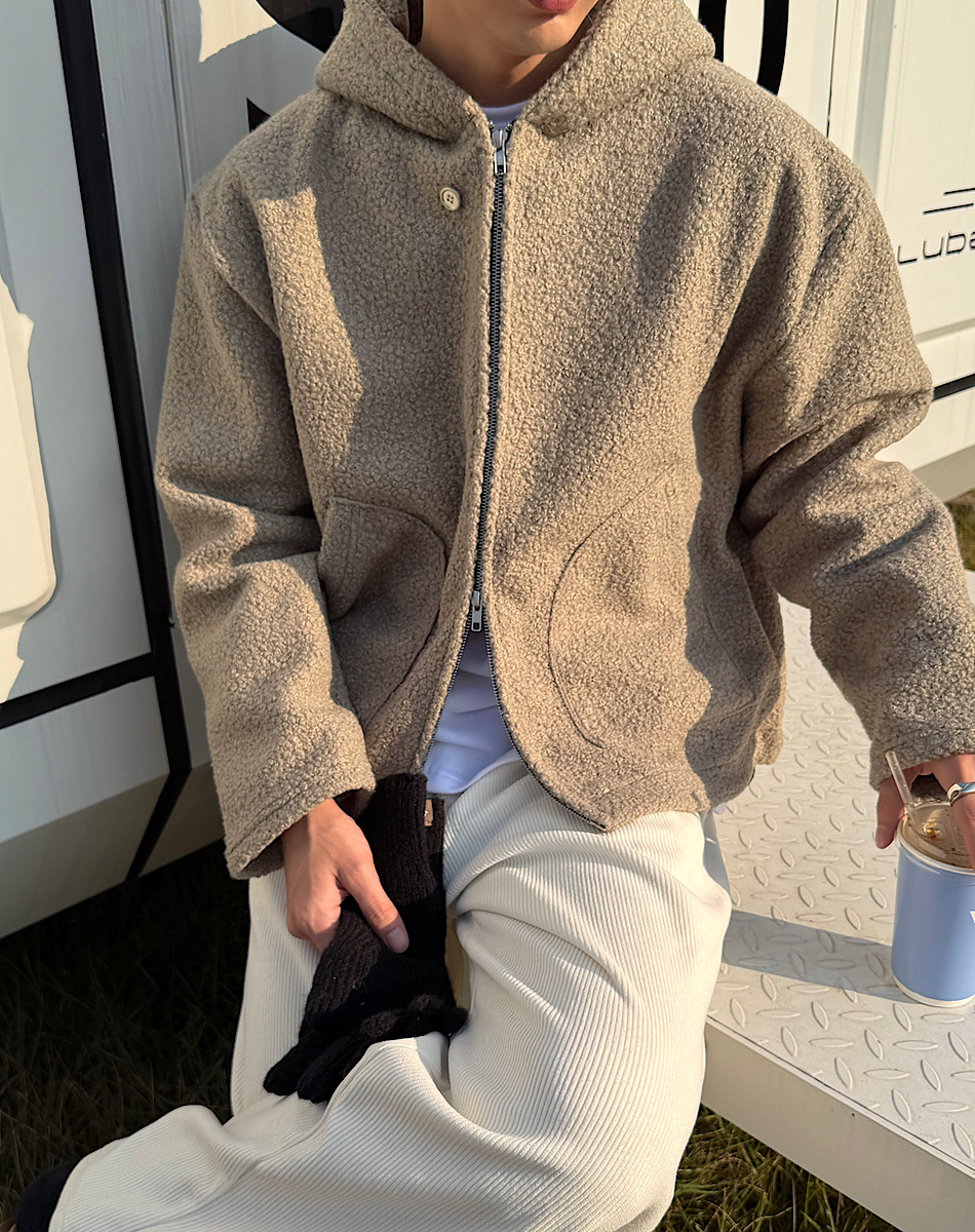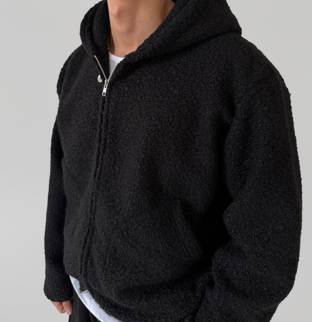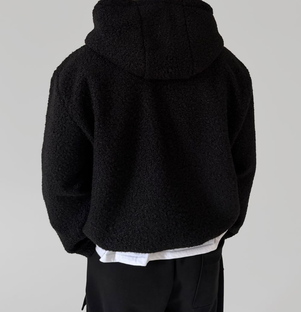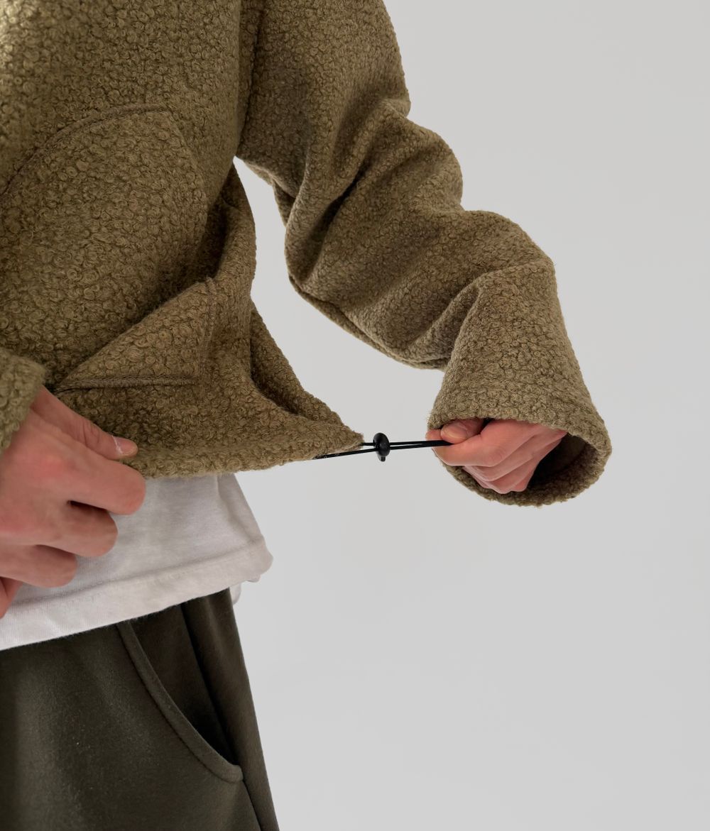 簡約羊毛圈紗口袋中短版連帽外套 3色 1215