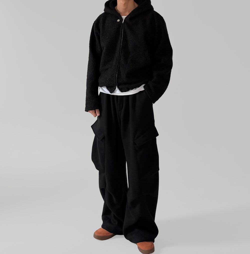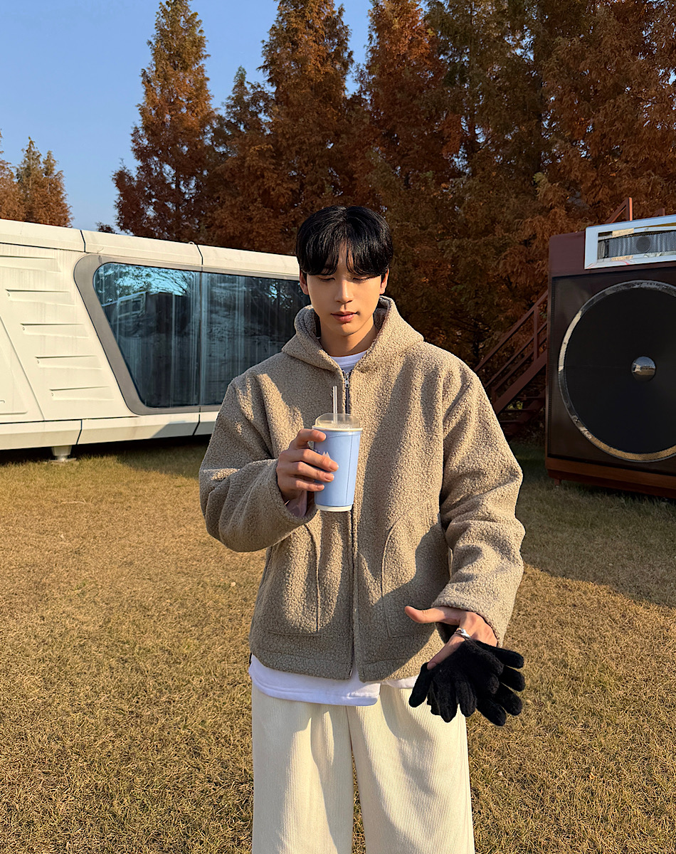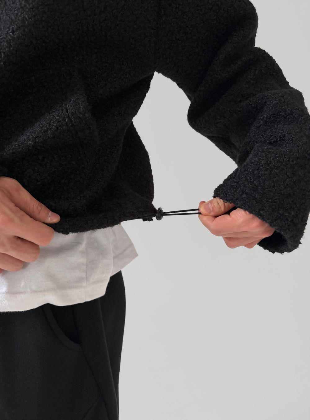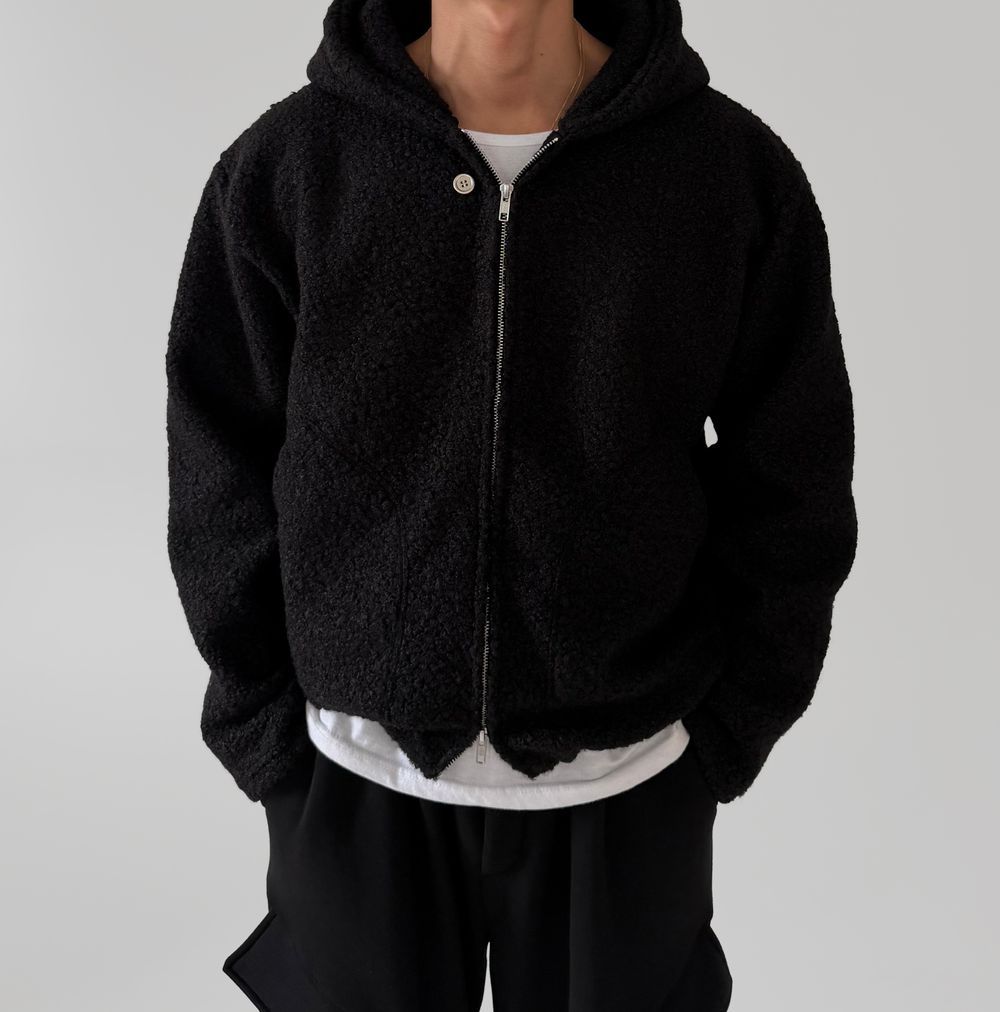 簡約羊毛圈紗口袋中短版連帽外套 3色 1215