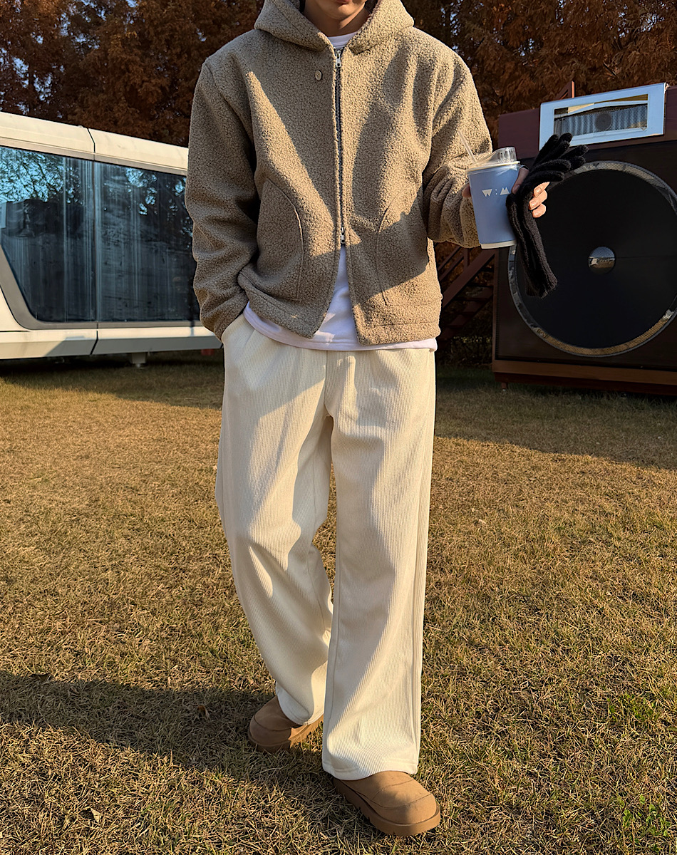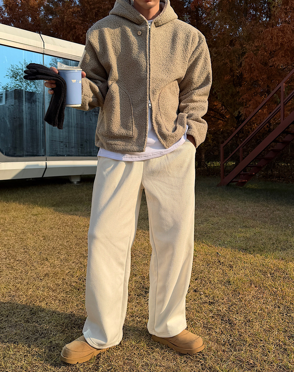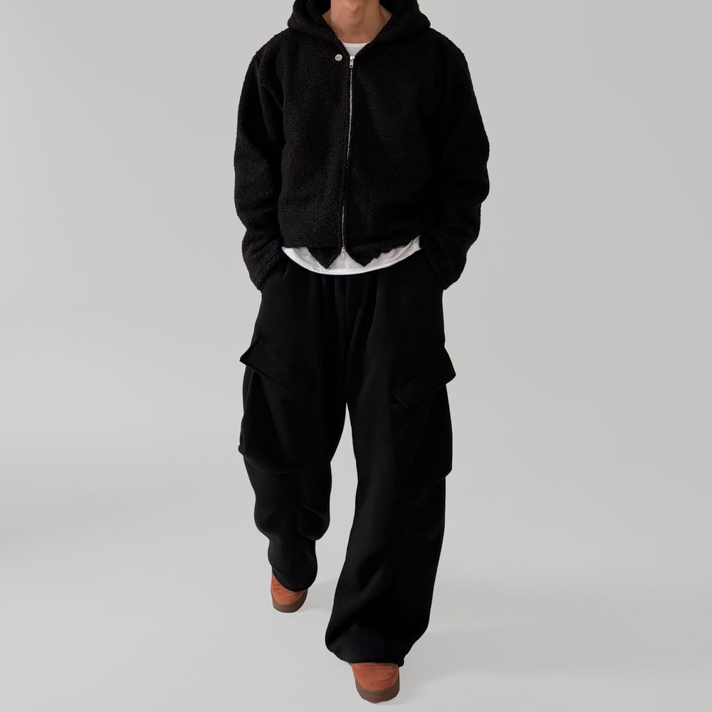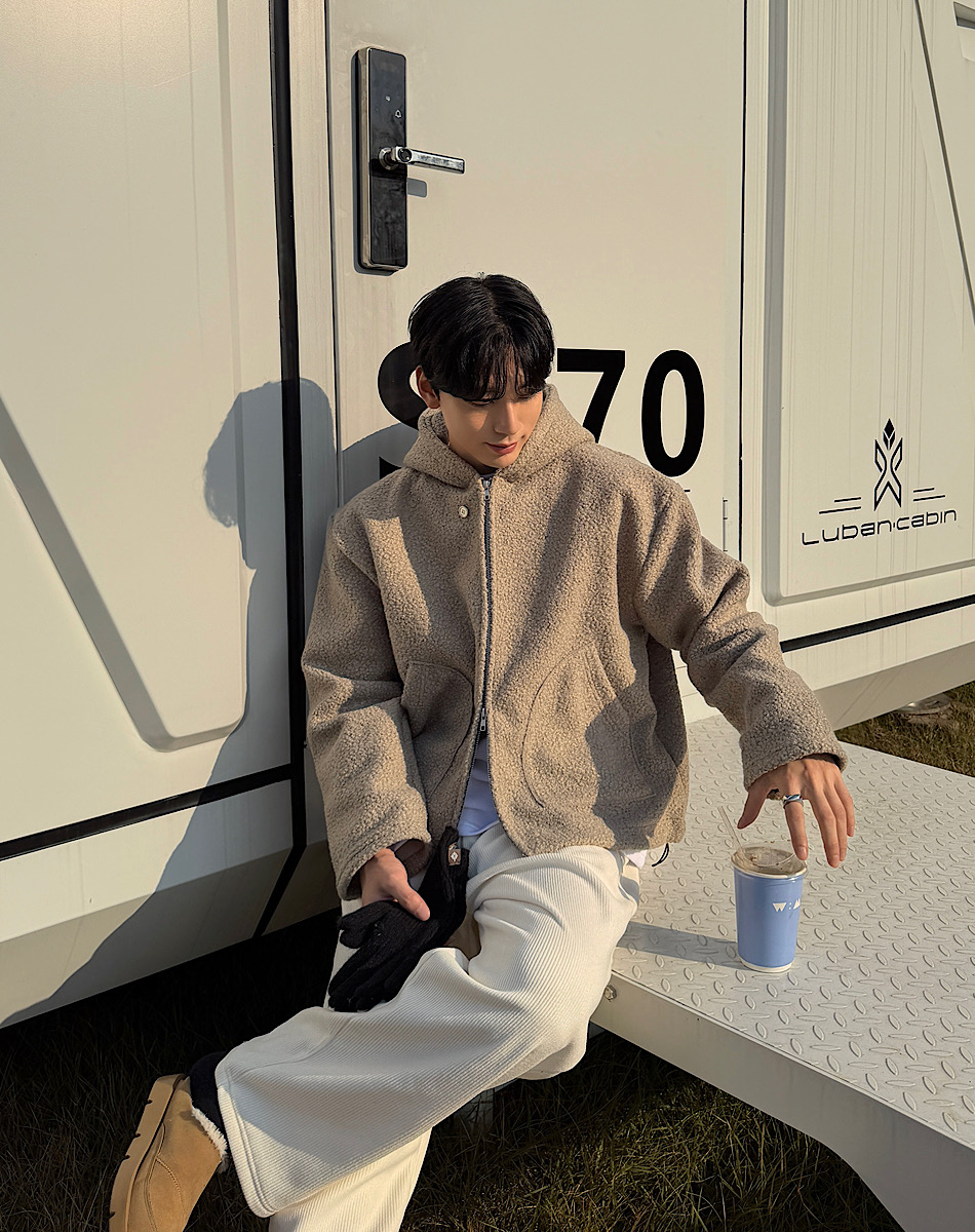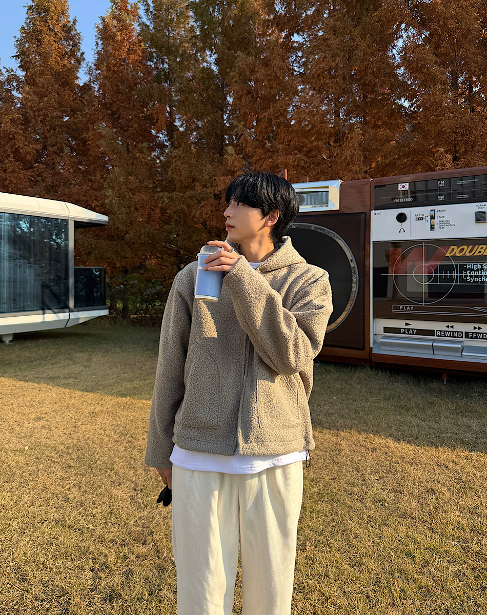 簡約羊毛圈紗口袋中短版連帽外套 3色 1215