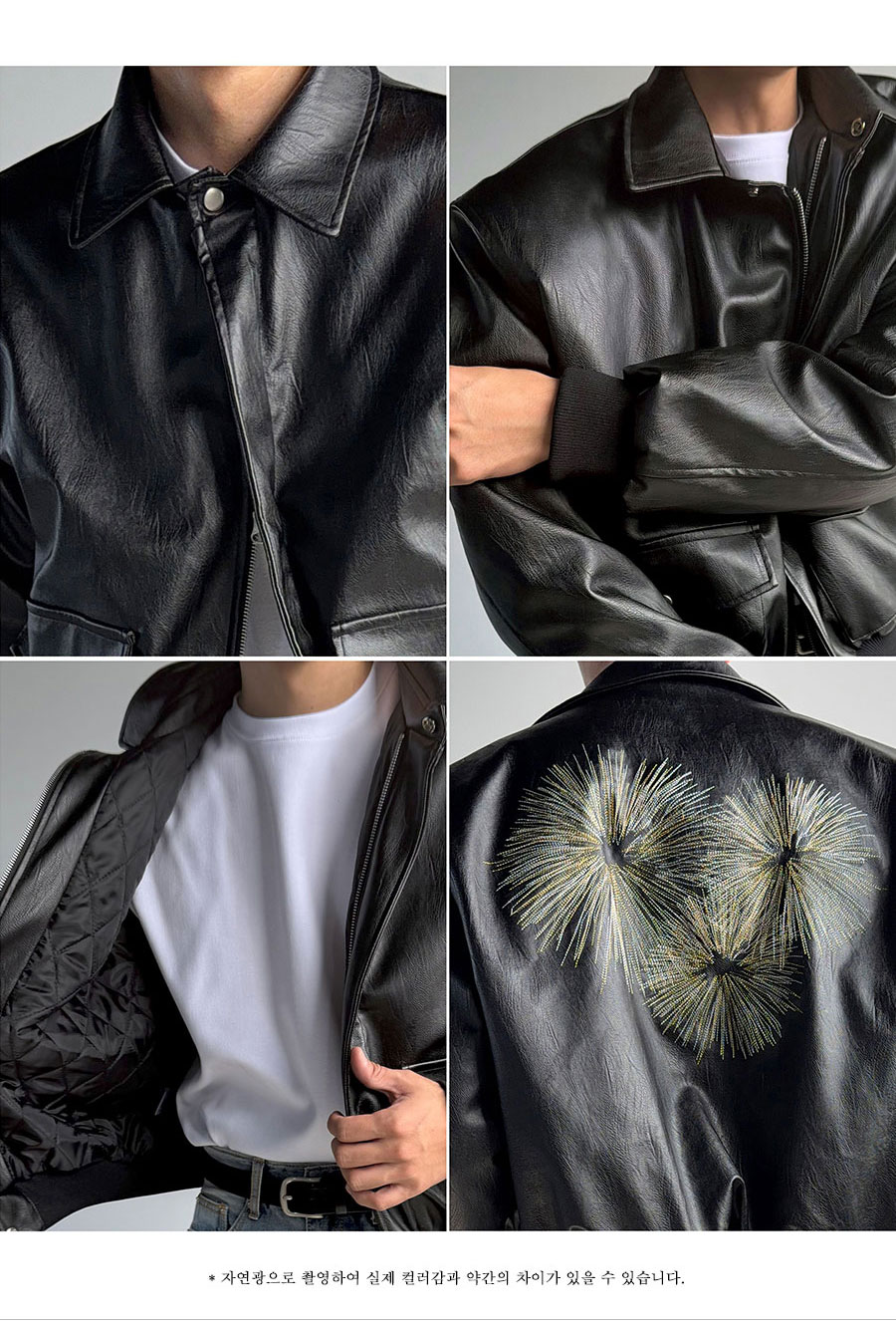 奢華光澤煙火刺繡短版皮革襯墊夾克 黑色 1215