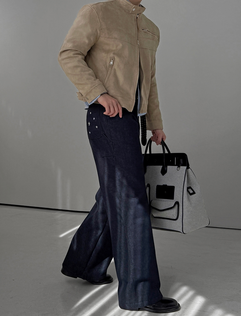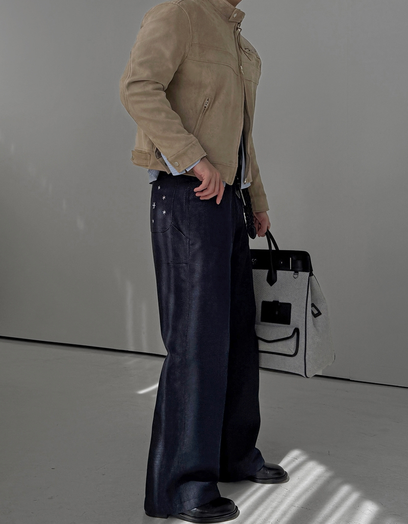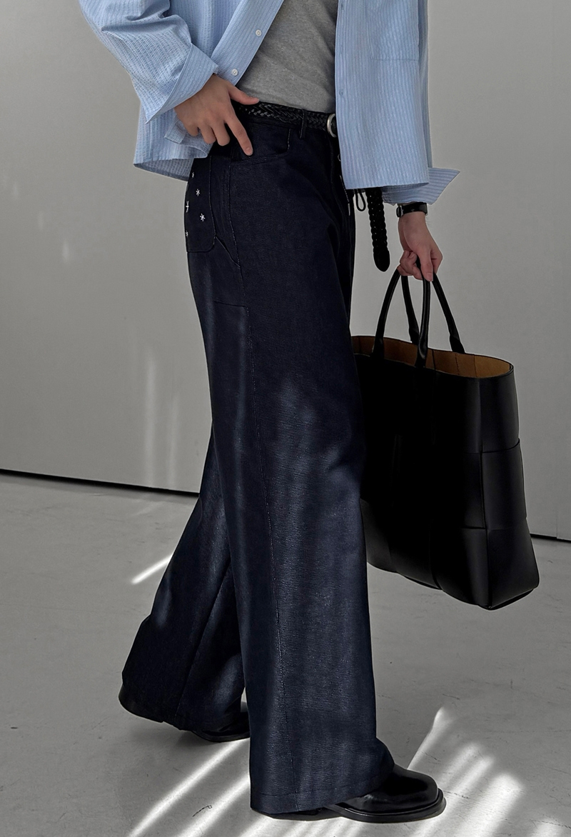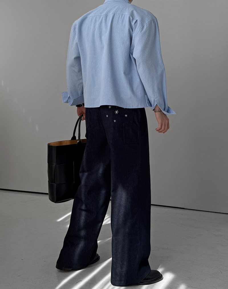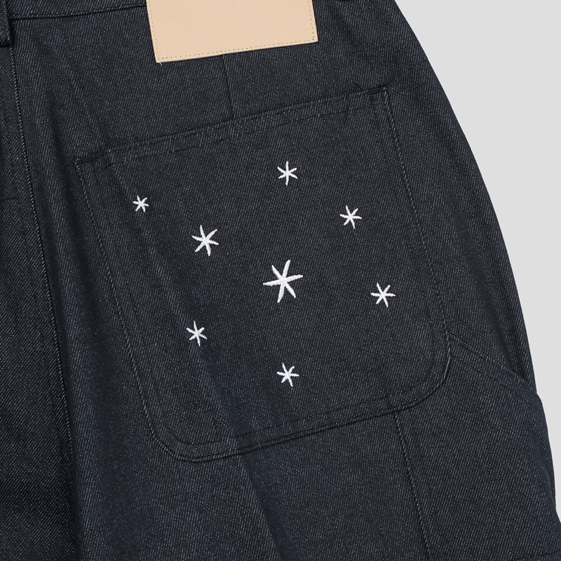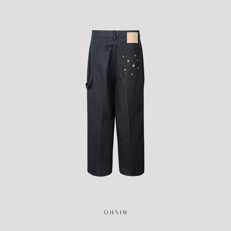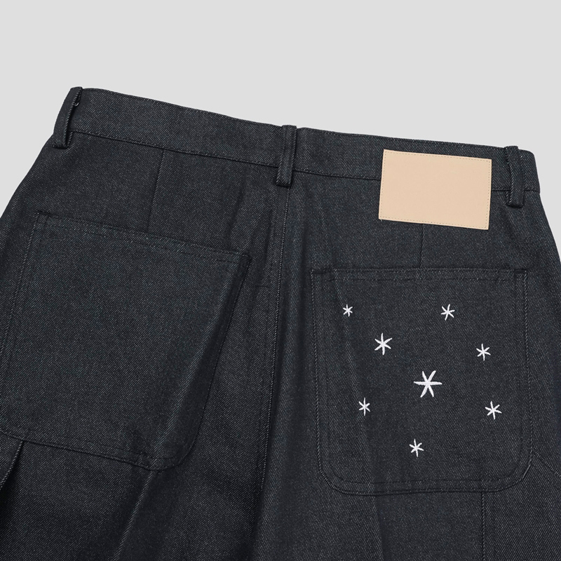 簡約星星刺繡純色牛仔直筒寬褲 2色 1229