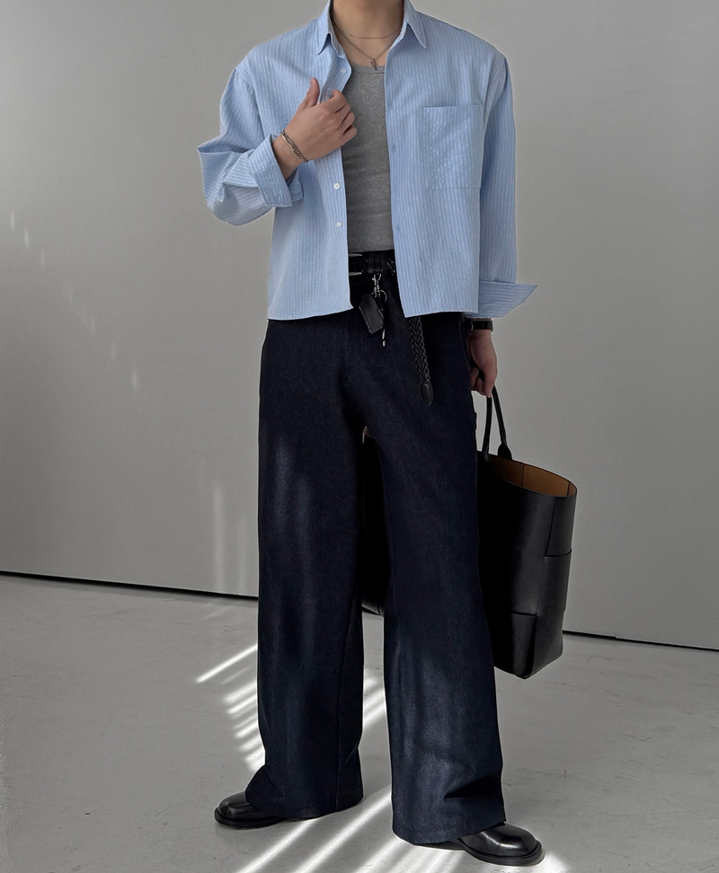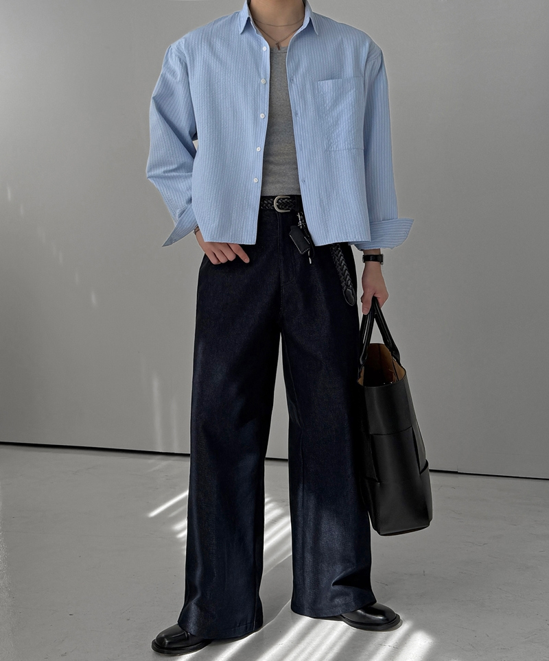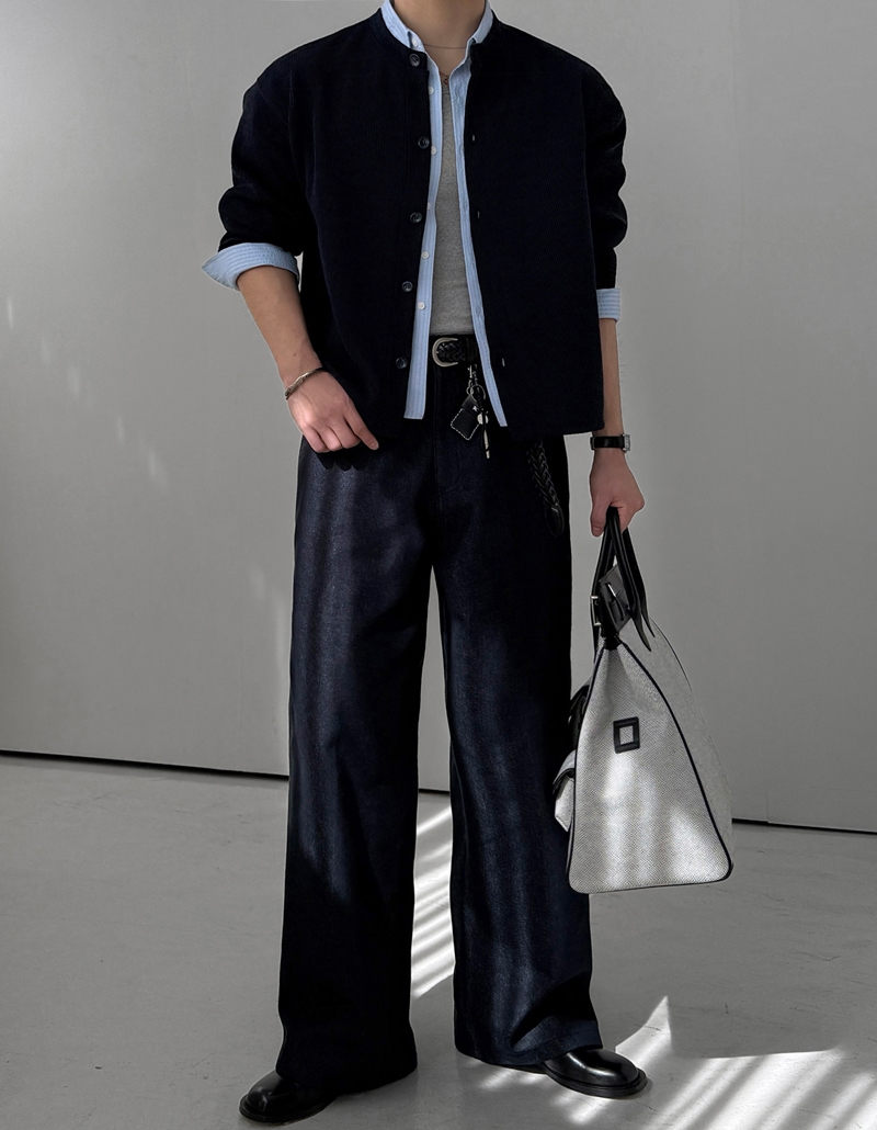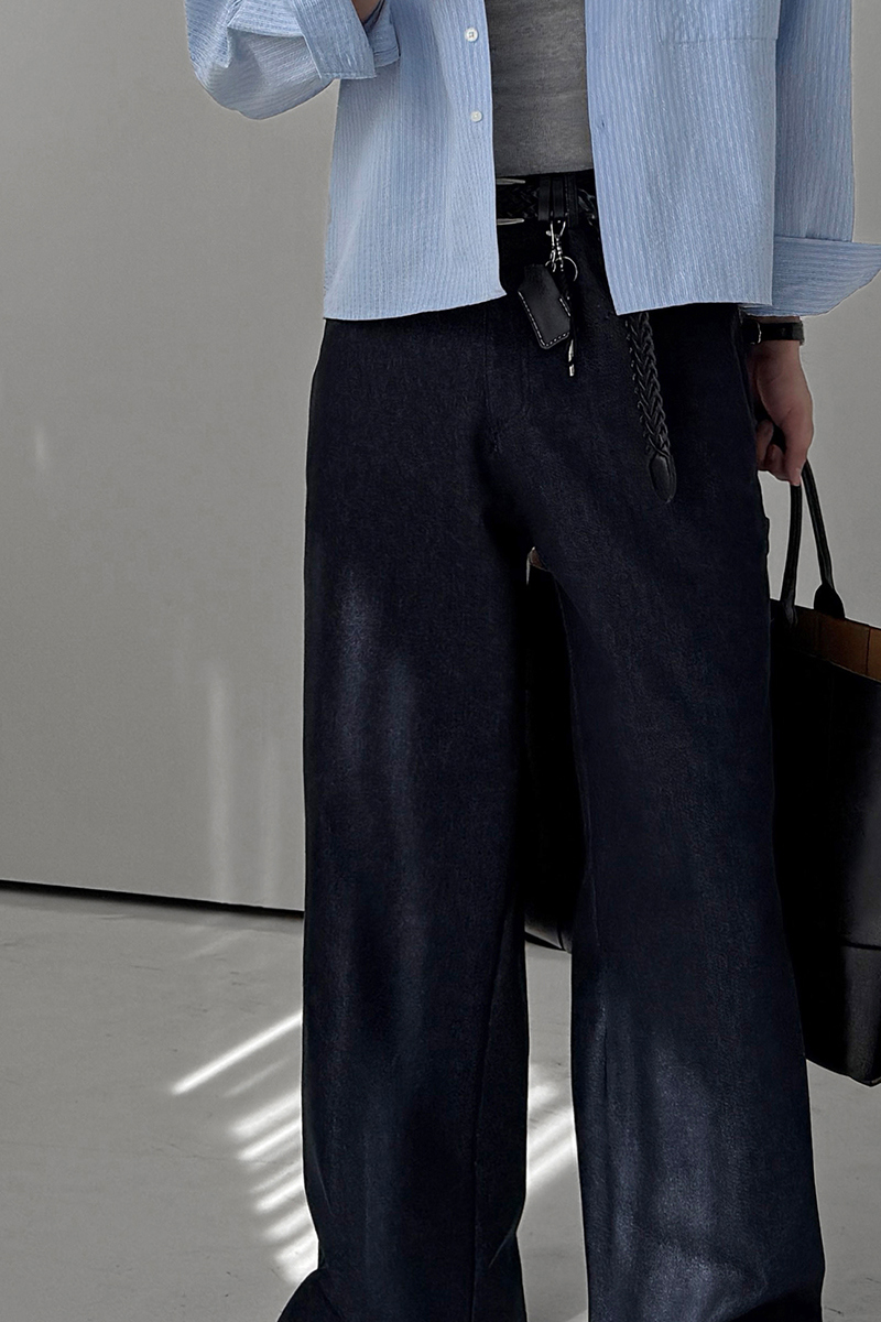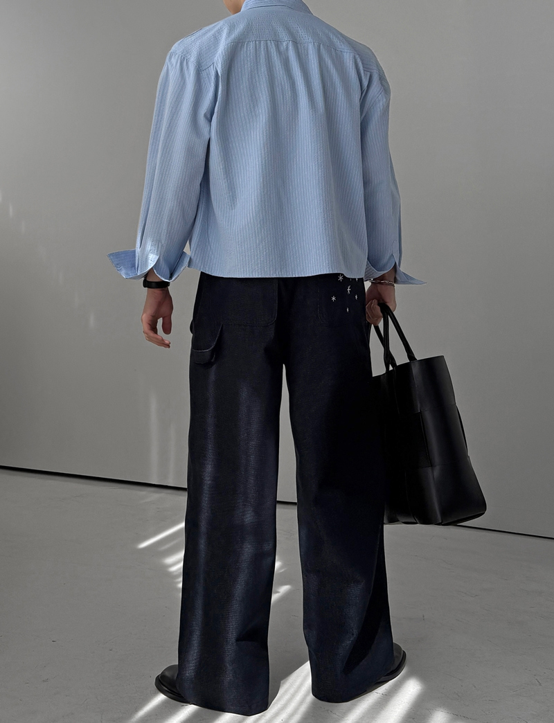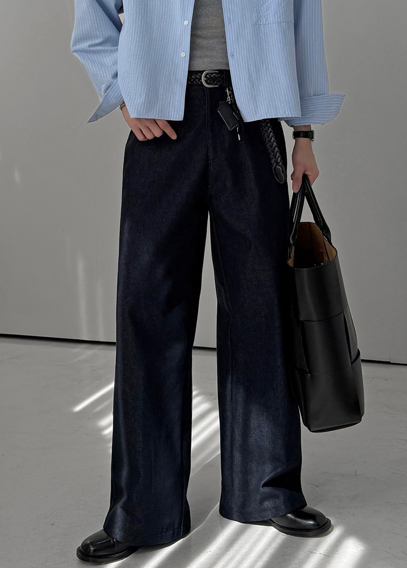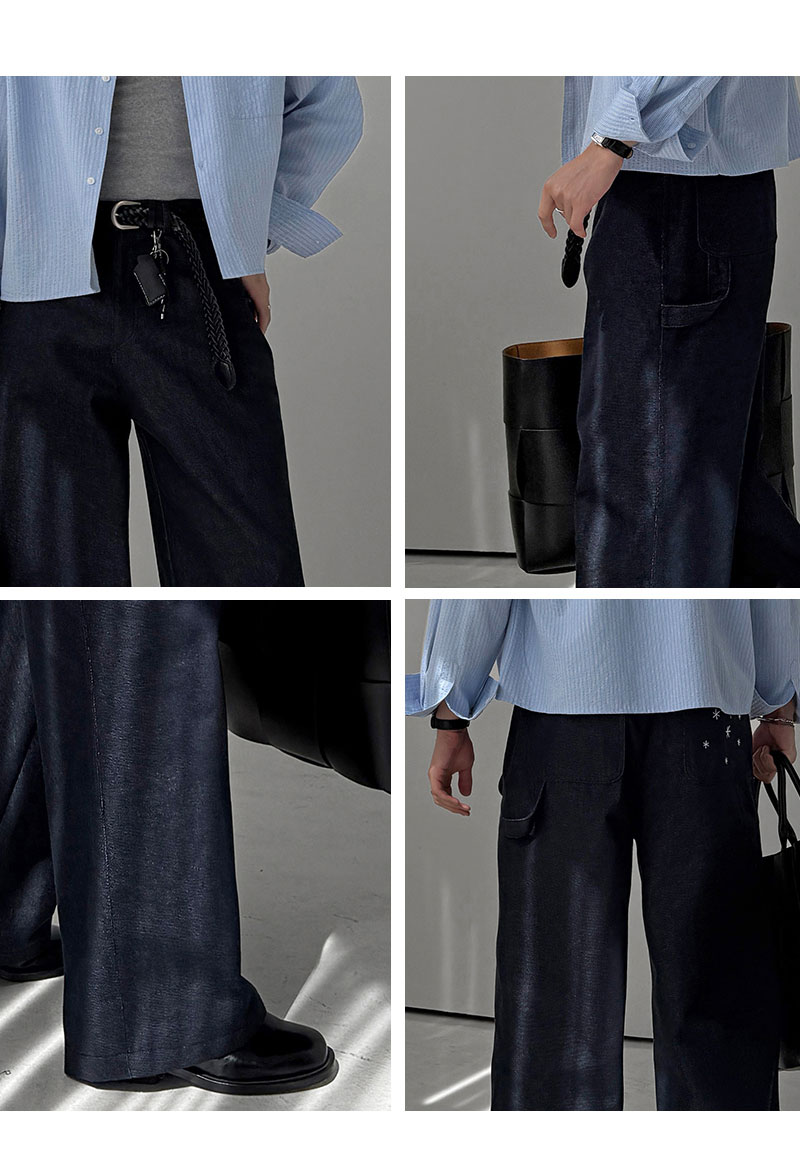 簡約星星刺繡純色牛仔直筒寬褲 2色 1229