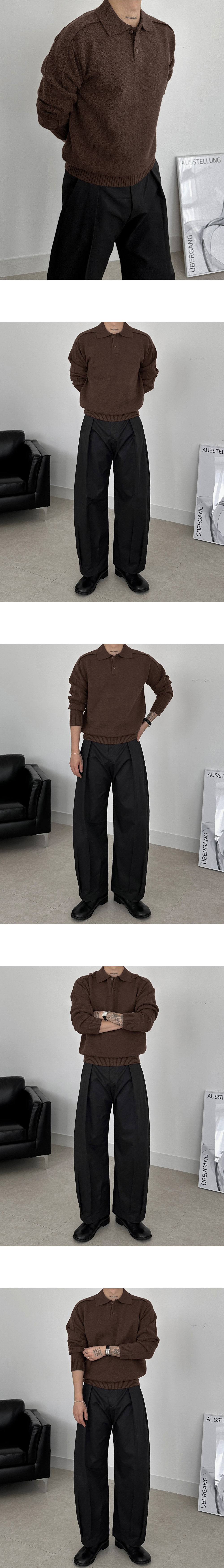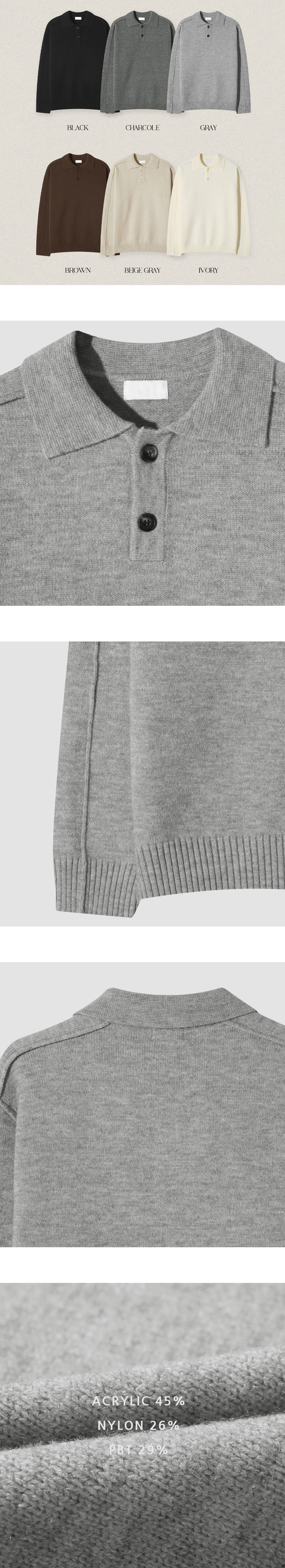 立體肩線設計鈕扣翻領針織上衣 6色 1208
