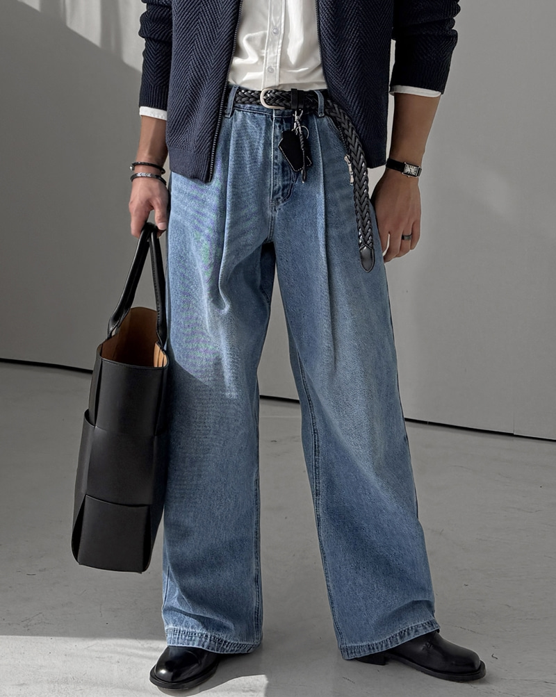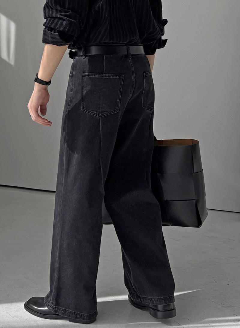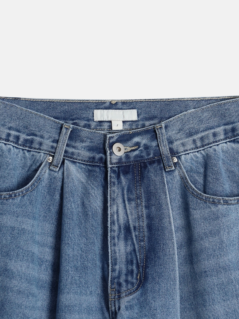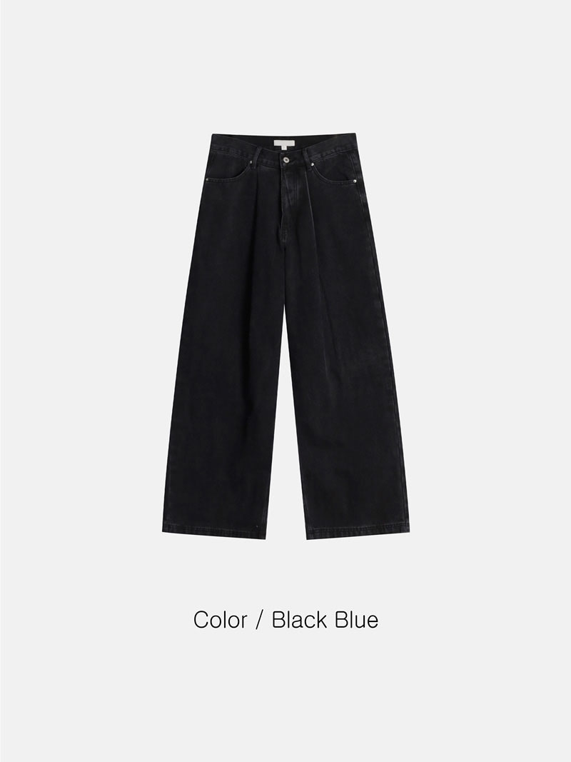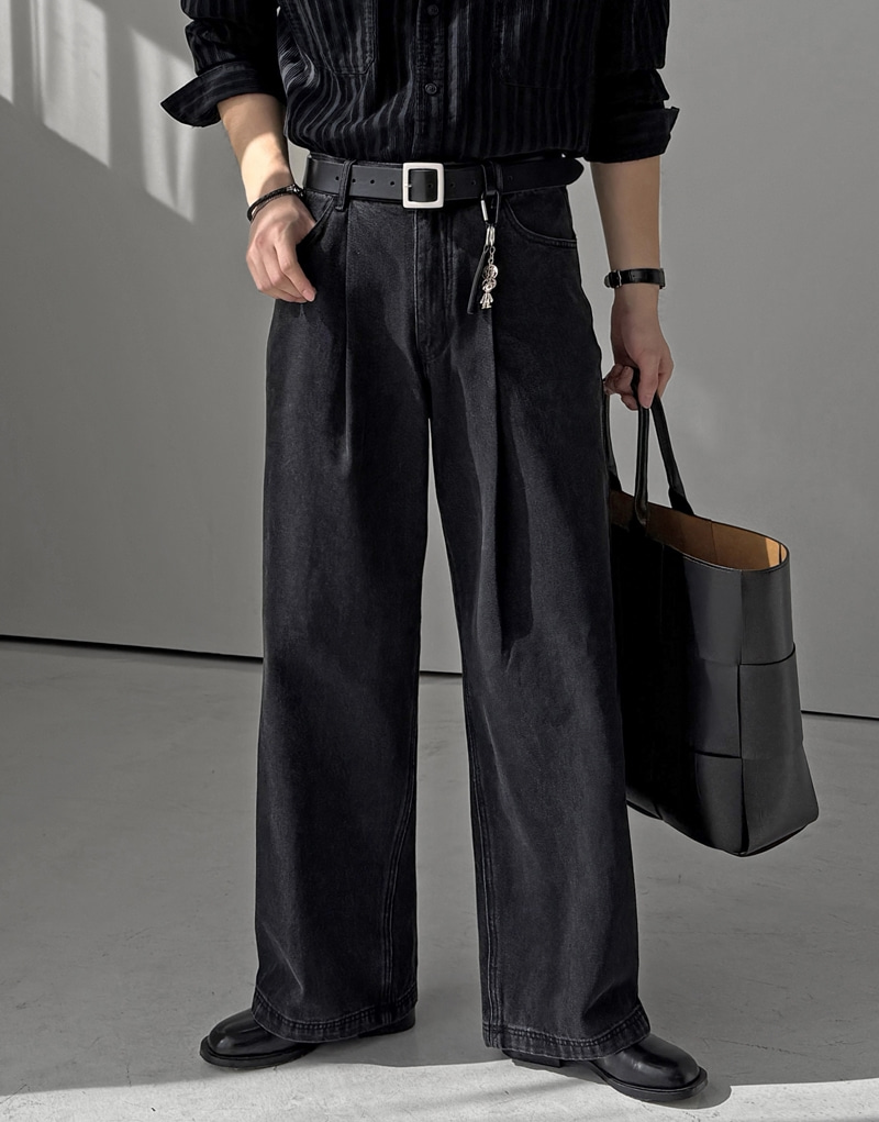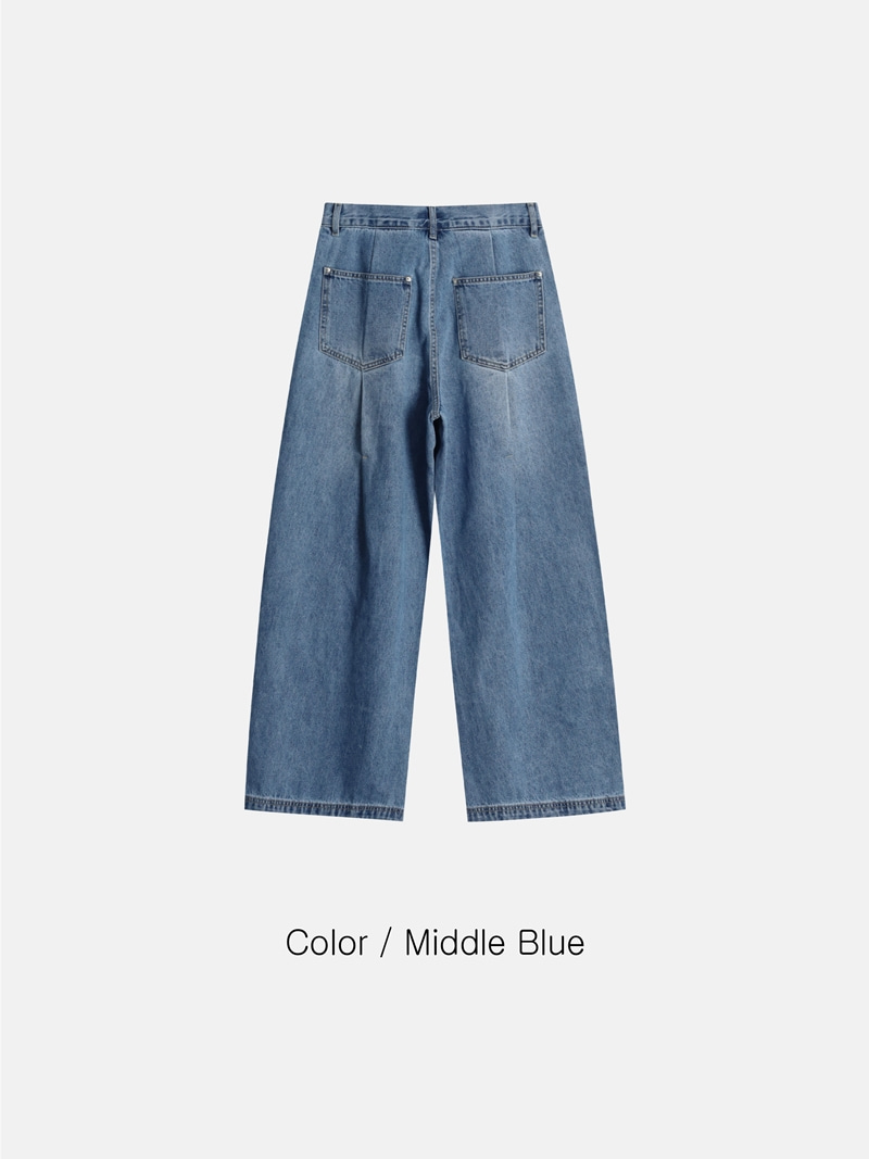 日常堅挺水洗刷色褶襉牛仔寬褲 2色 1229