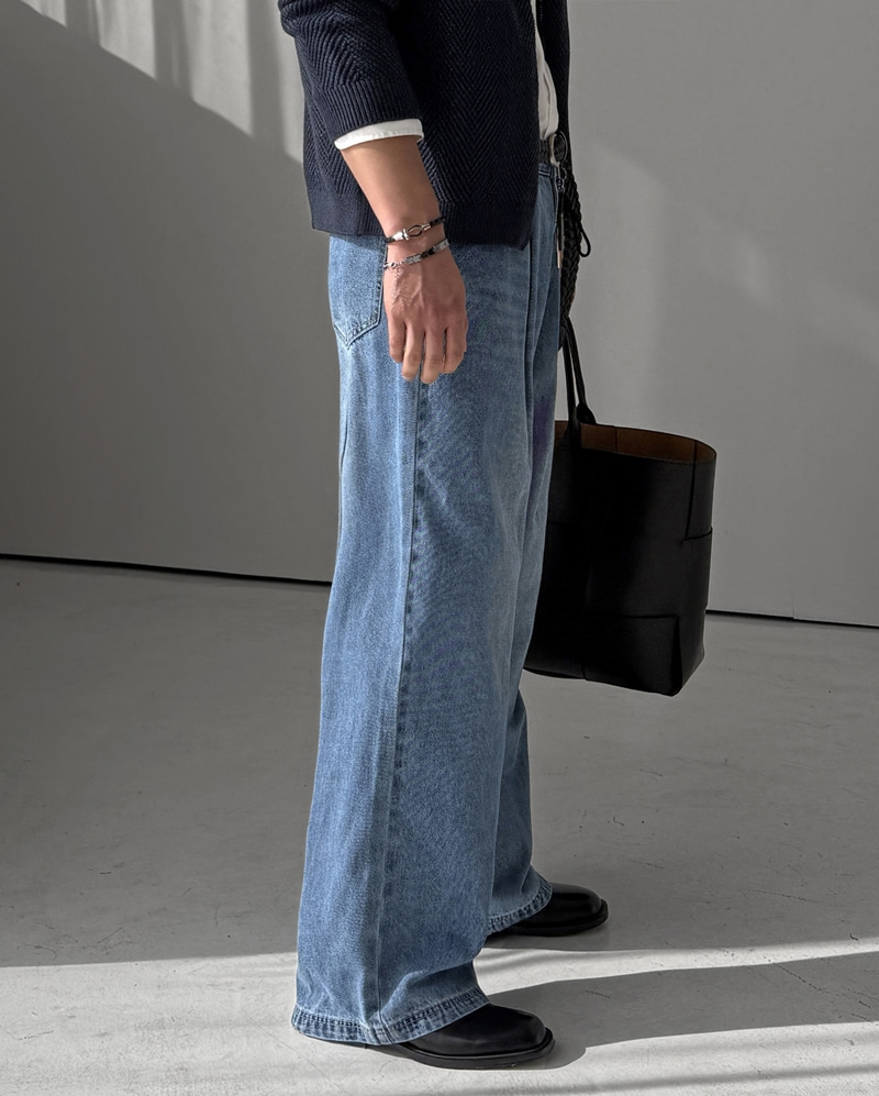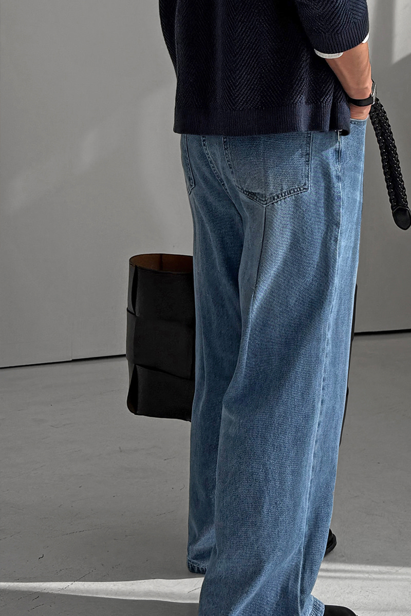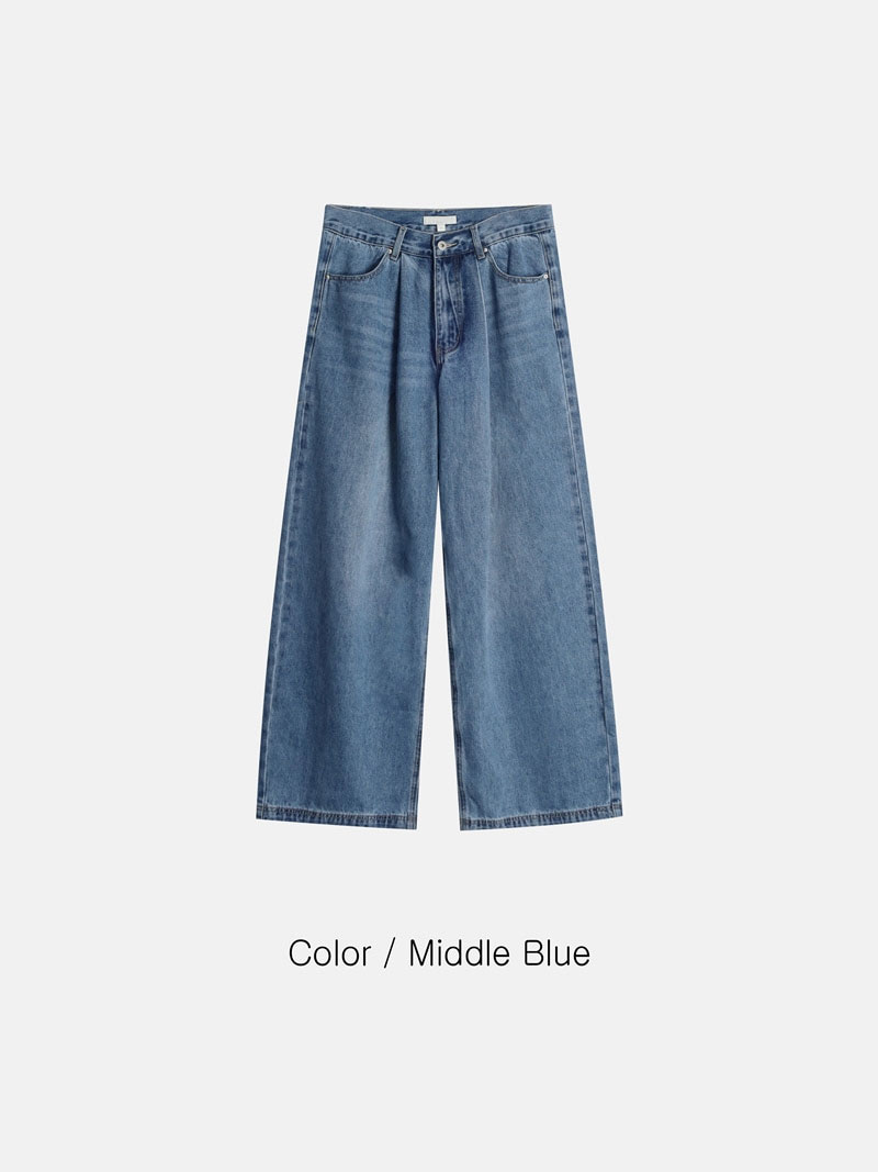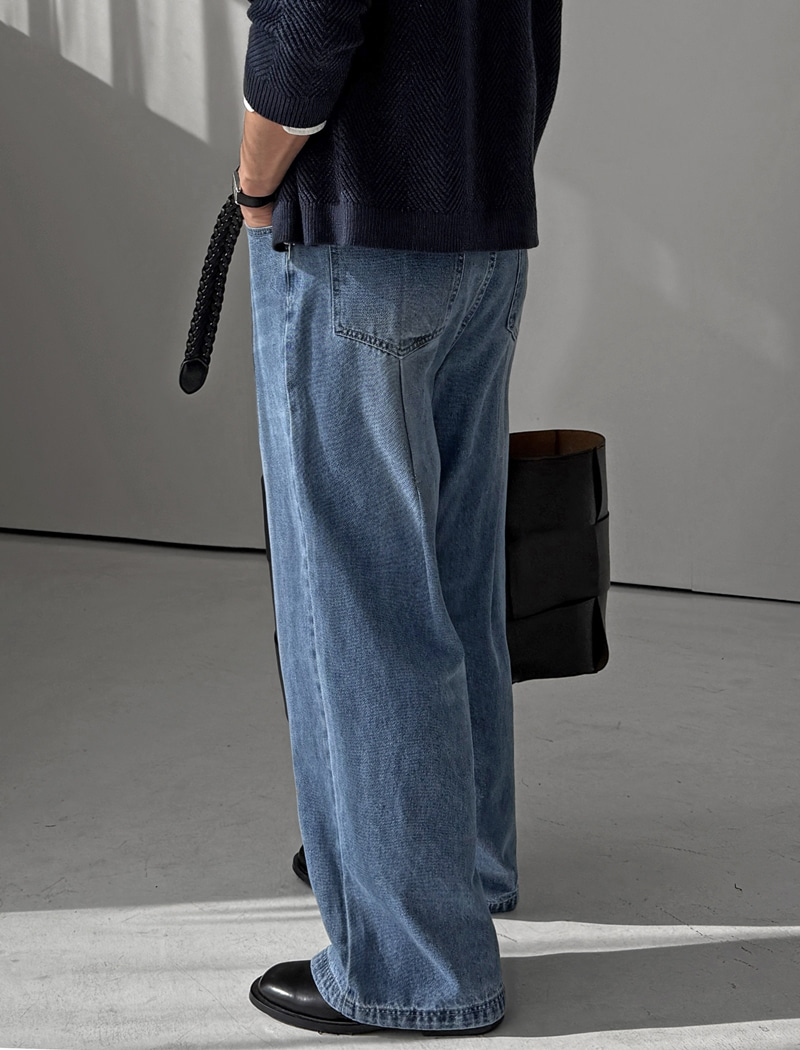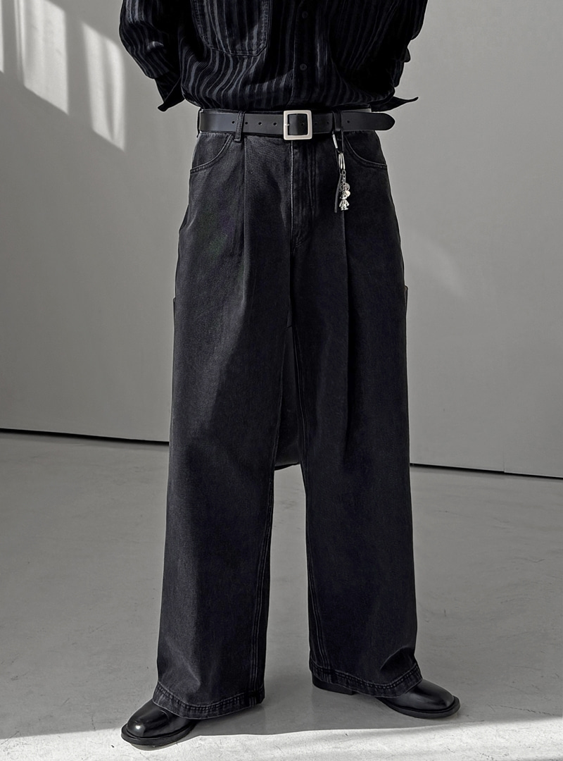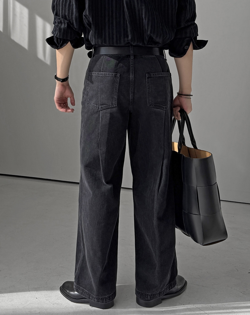 日常堅挺水洗刷色褶襉牛仔寬褲 2色 1229