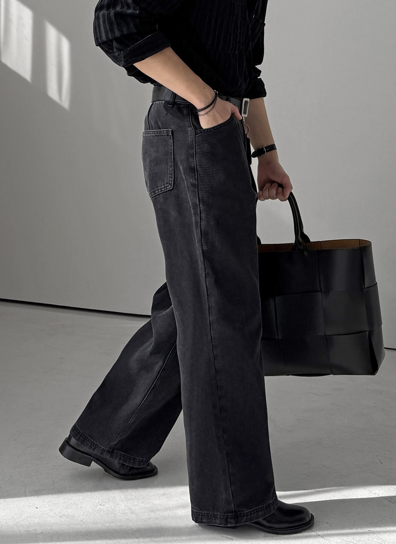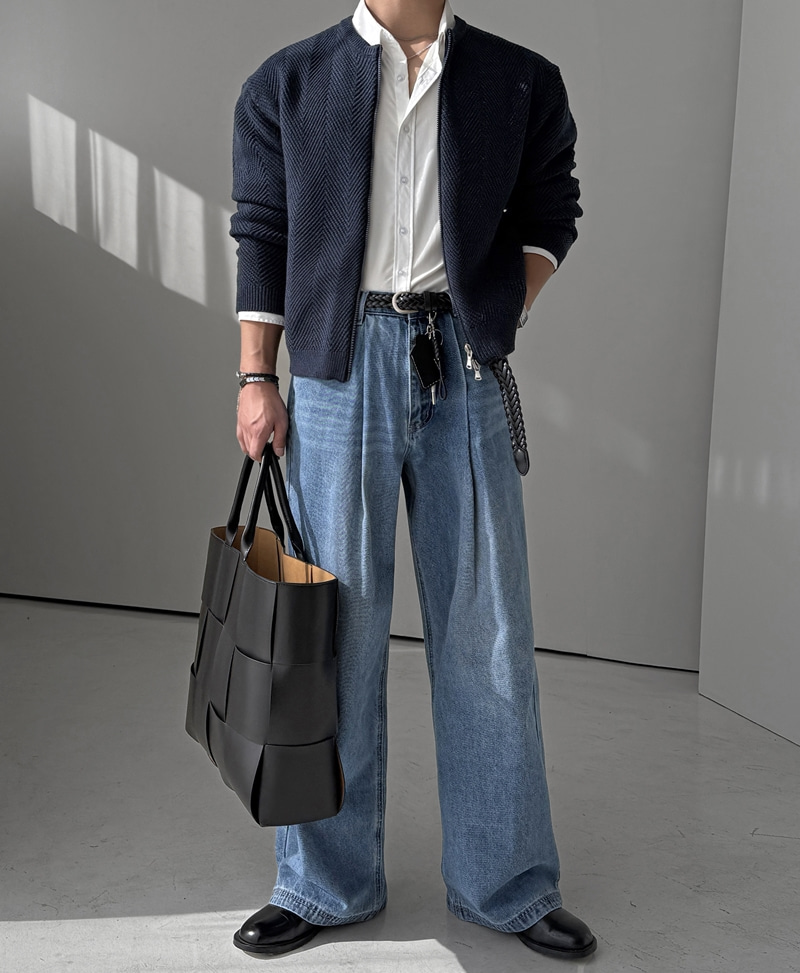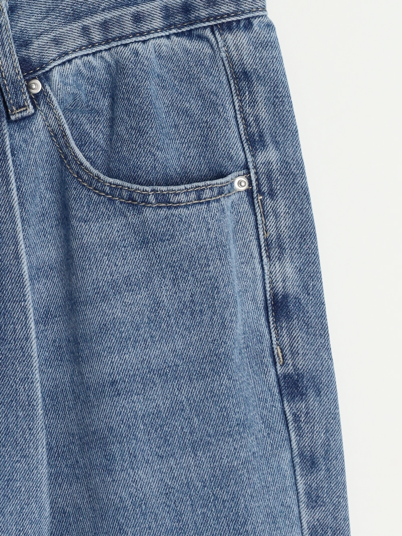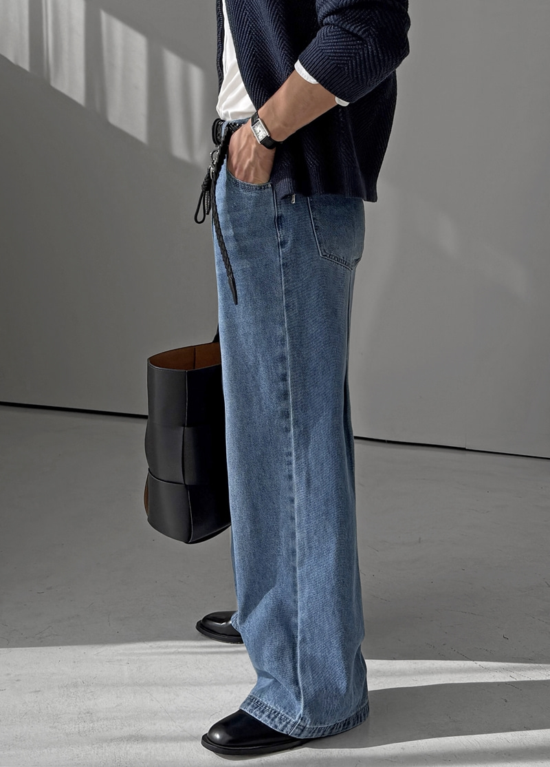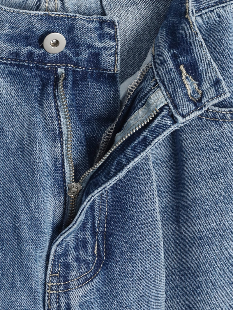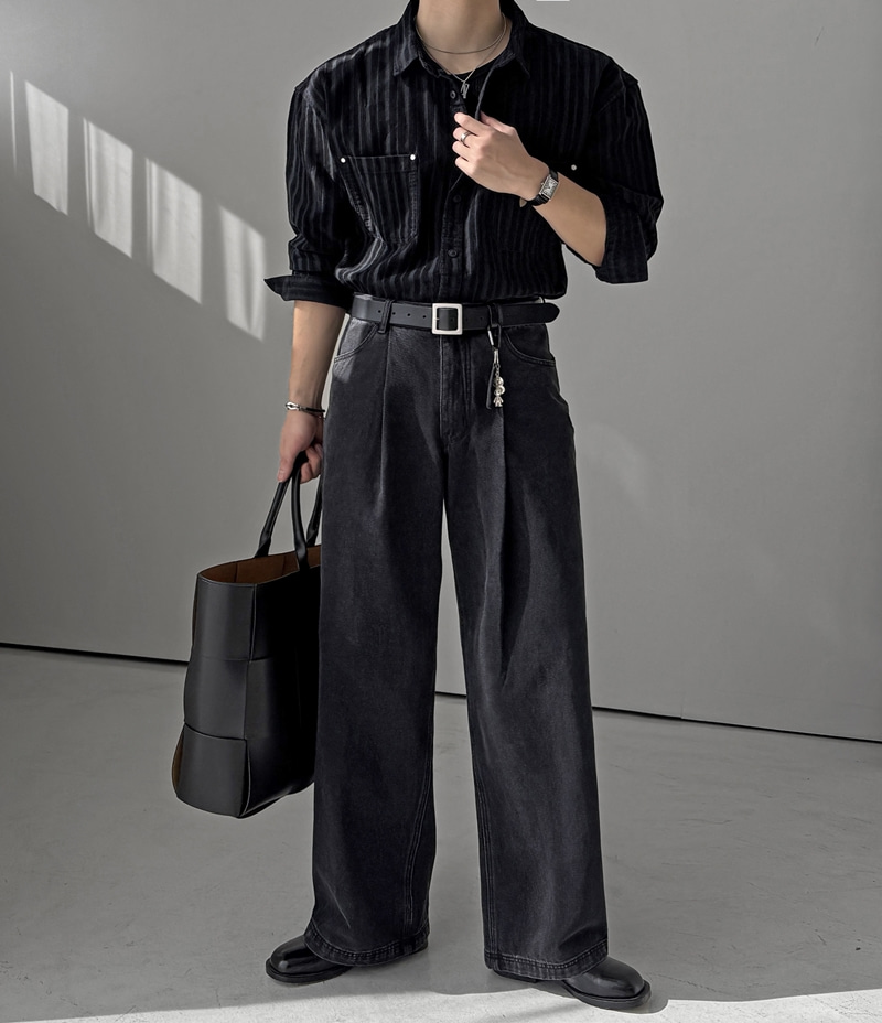 日常堅挺水洗刷色褶襉牛仔寬褲 2色 1229